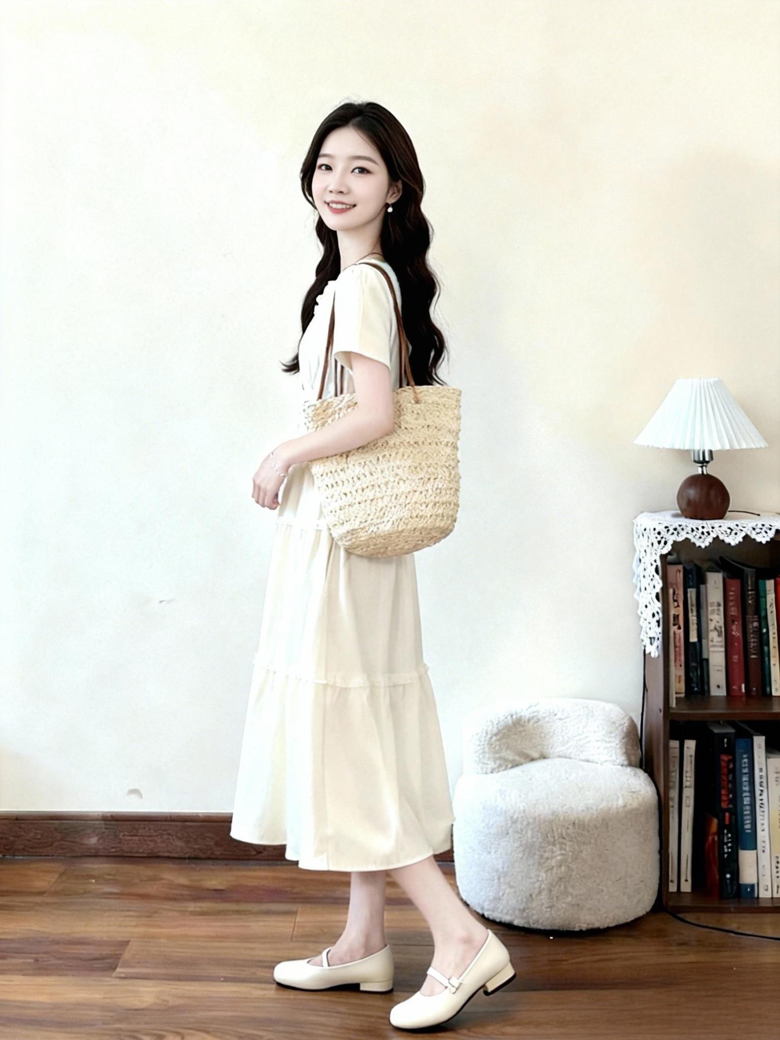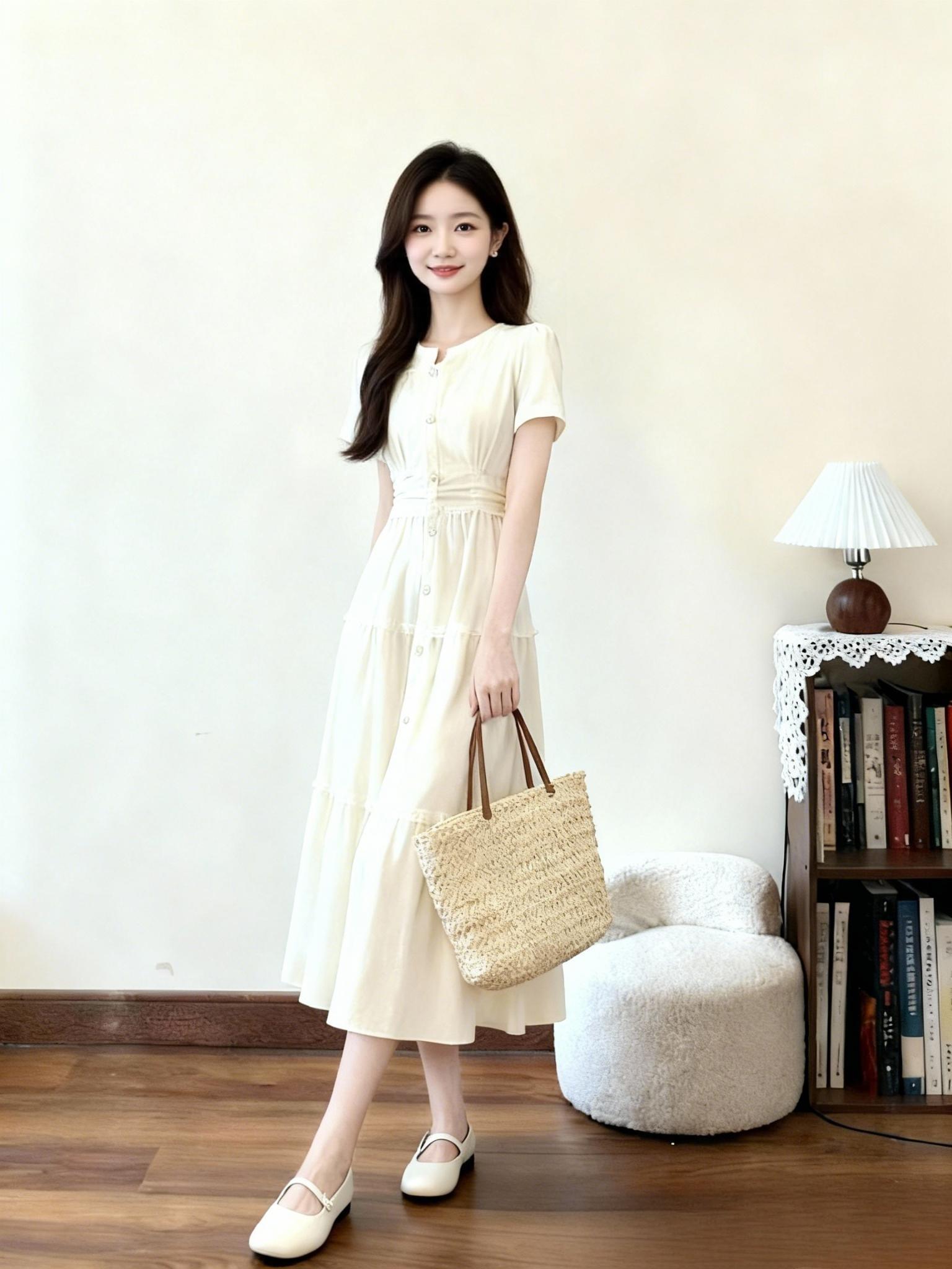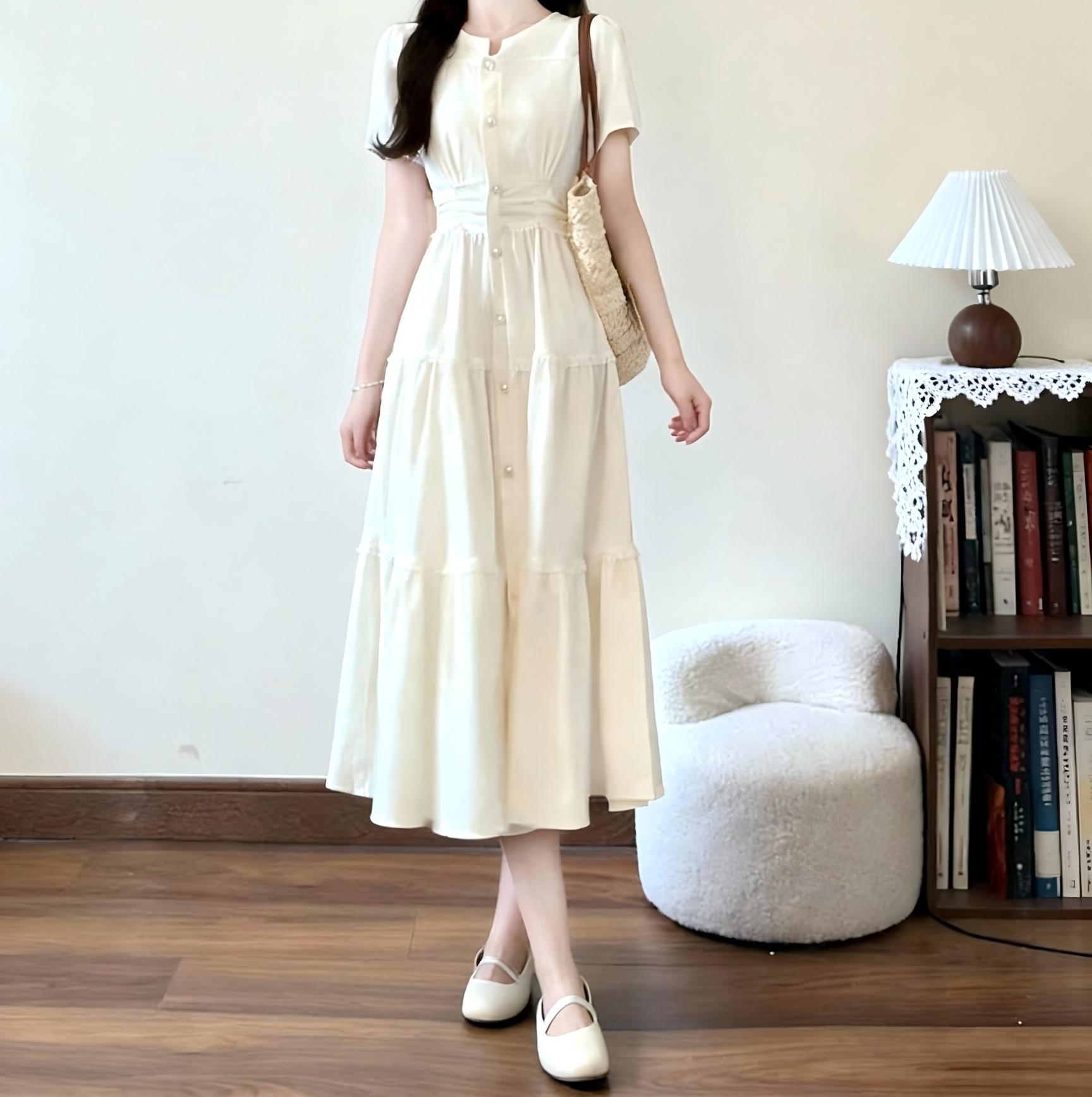 MY15433# 小矮个子法式衬衫连衣裙女夏季收腰中长款a字裙女裝貨源服裝批發