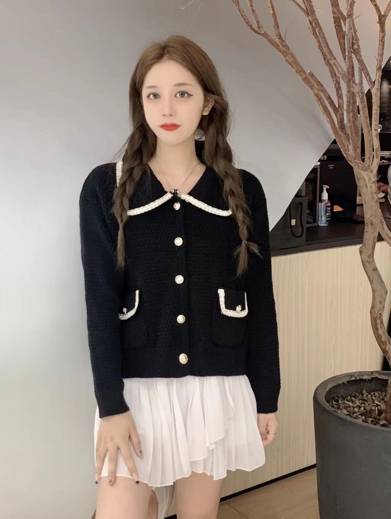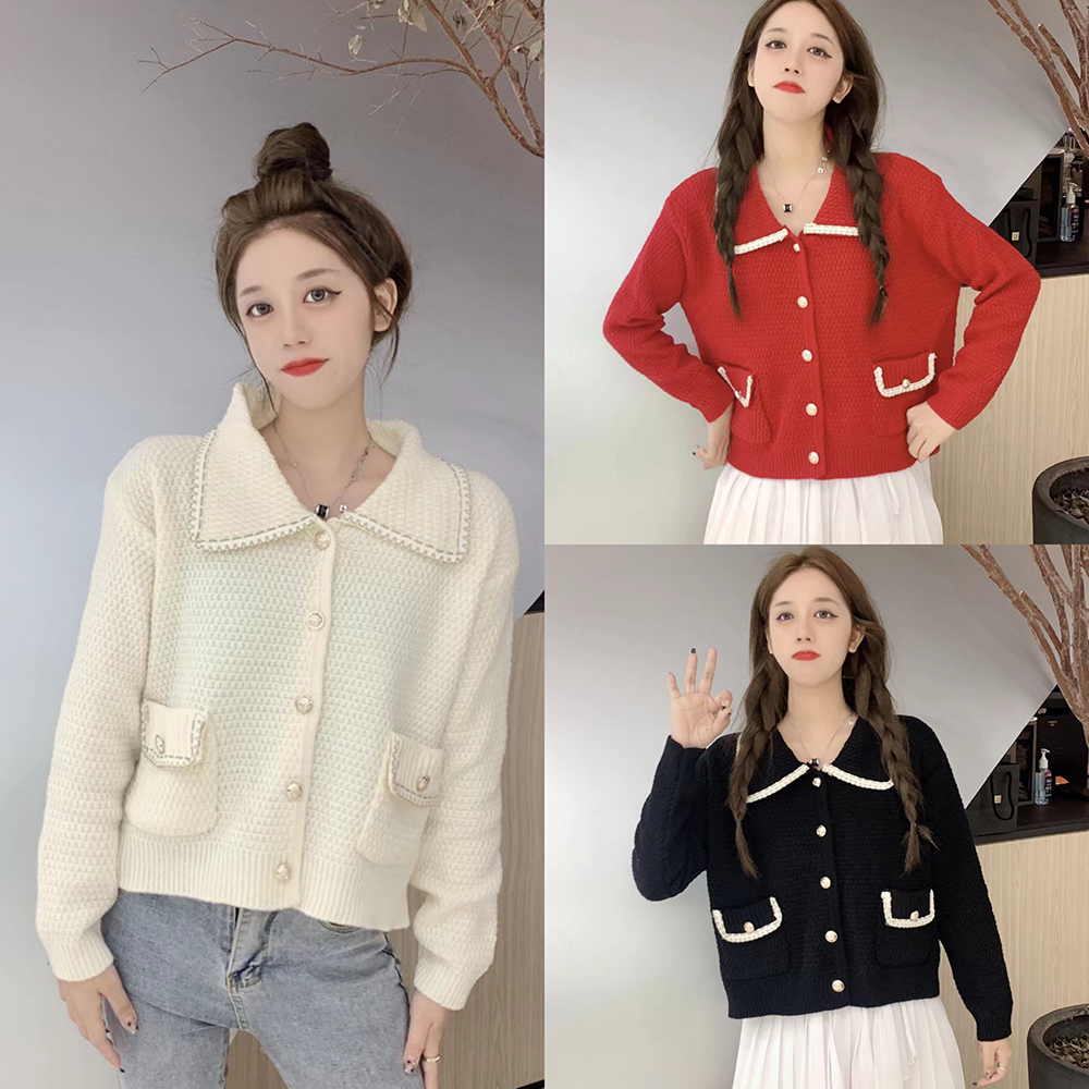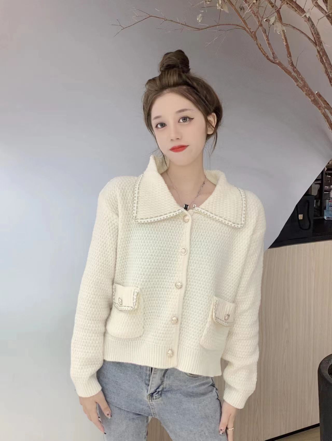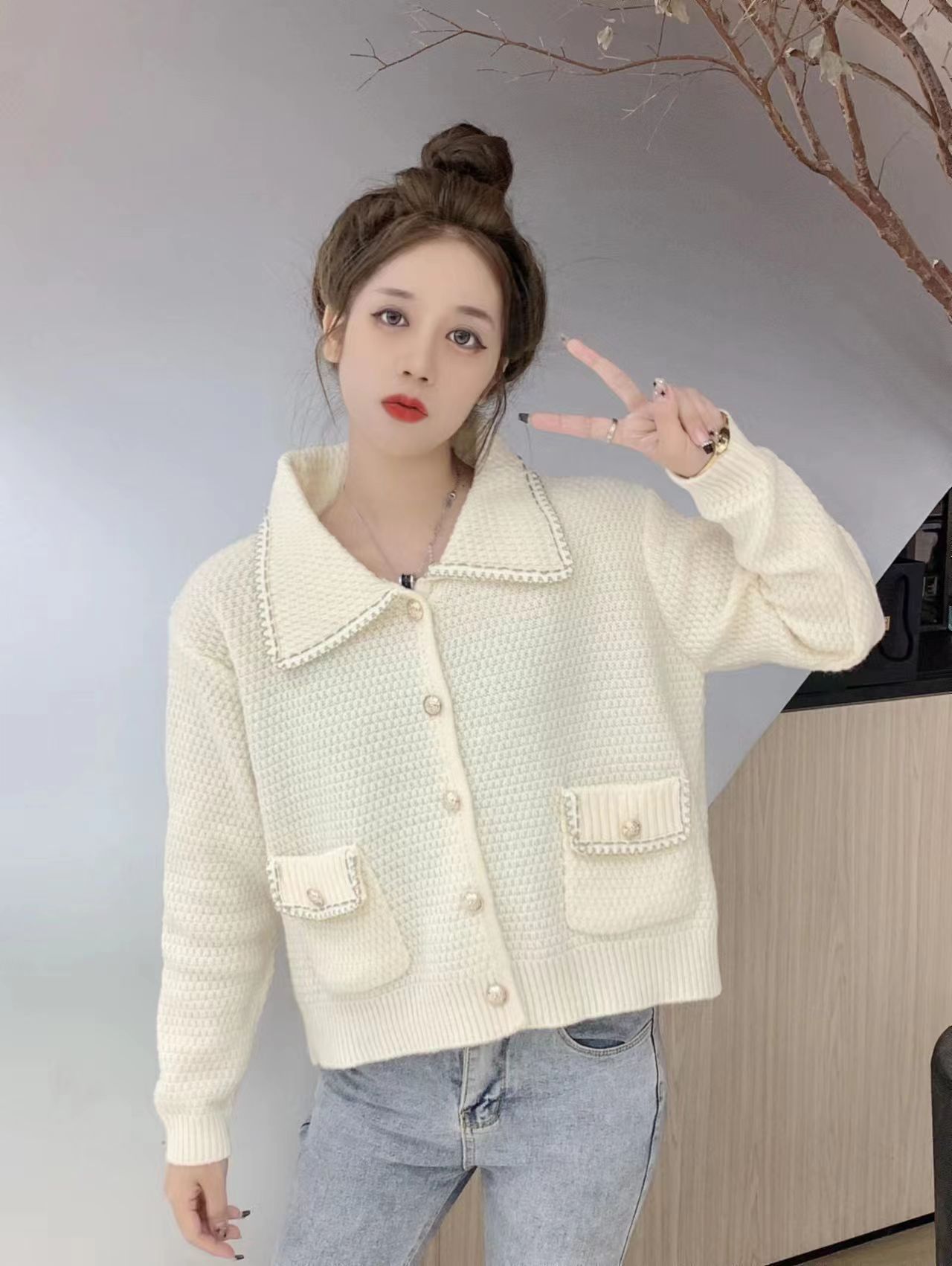 MY15435# 时尚翻领针织开衫女韩系chic设计感小众别致短款毛衣外套女裝貨源服裝批發