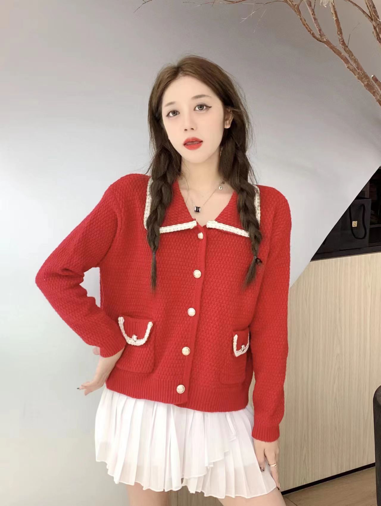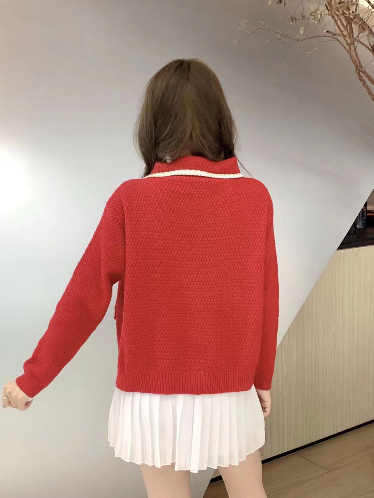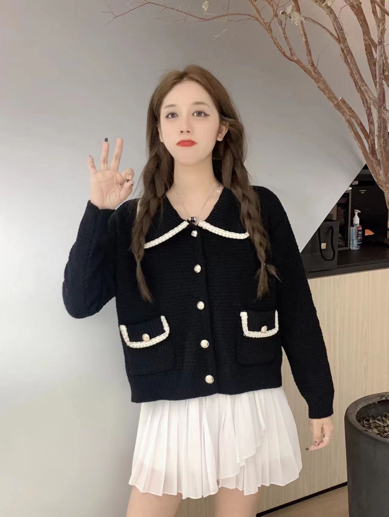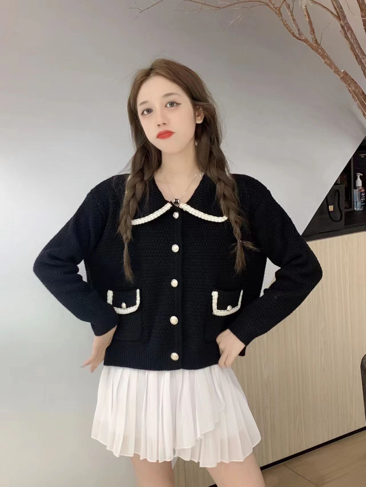 MY15435# 时尚翻领针织开衫女韩系chic设计感小众别致短款毛衣外套女裝貨源服裝批發