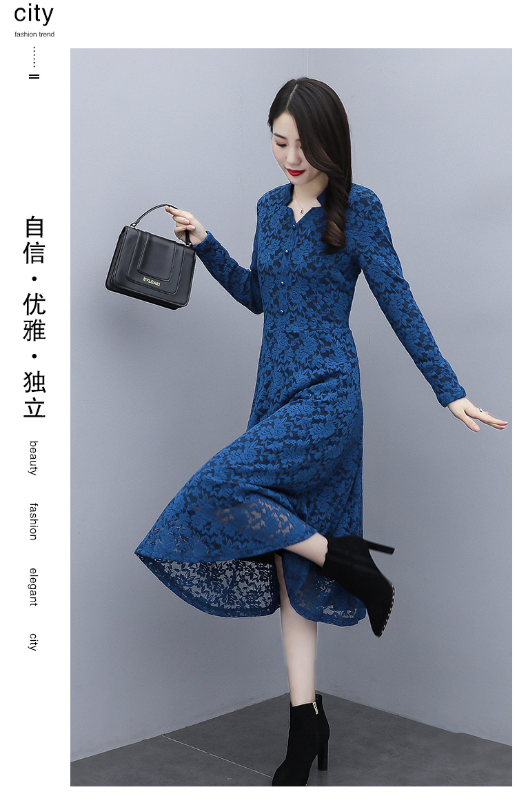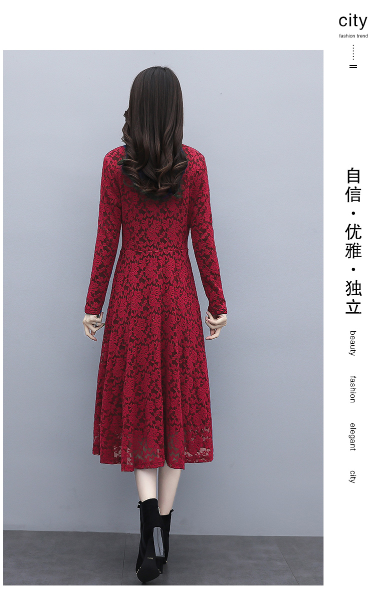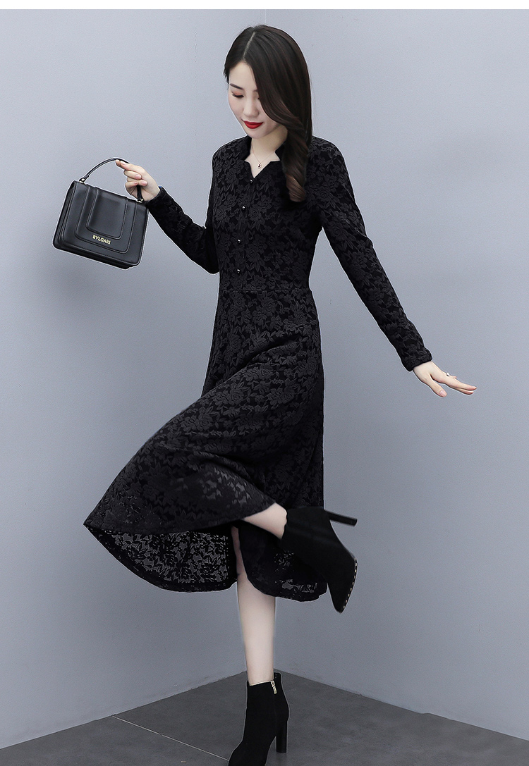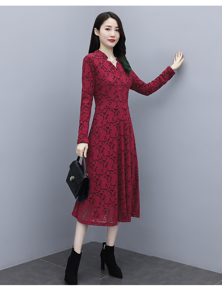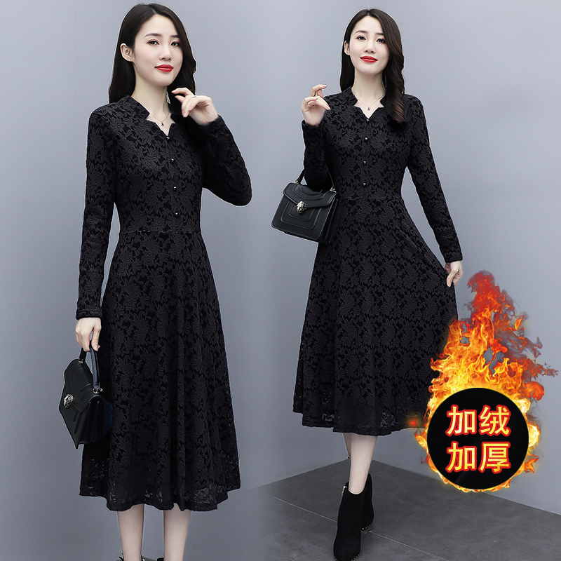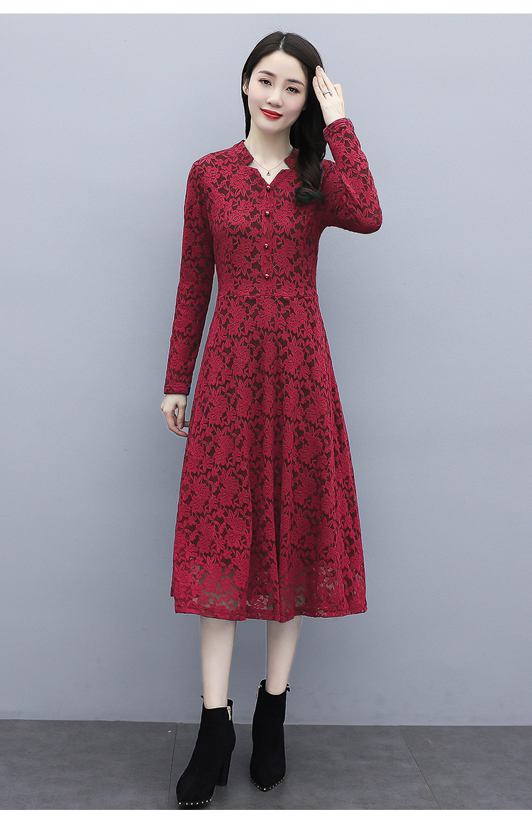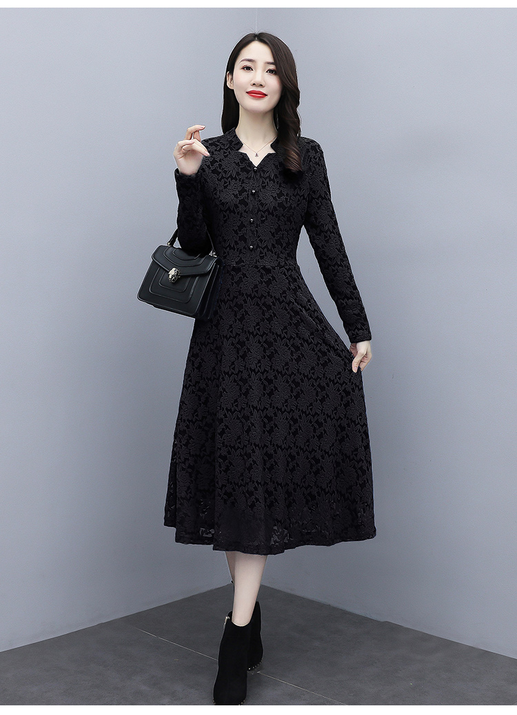 MY15446# 蕾丝连衣裙新款洋气v领显瘦过膝阔太太长裙子潮女裝貨源服裝批發