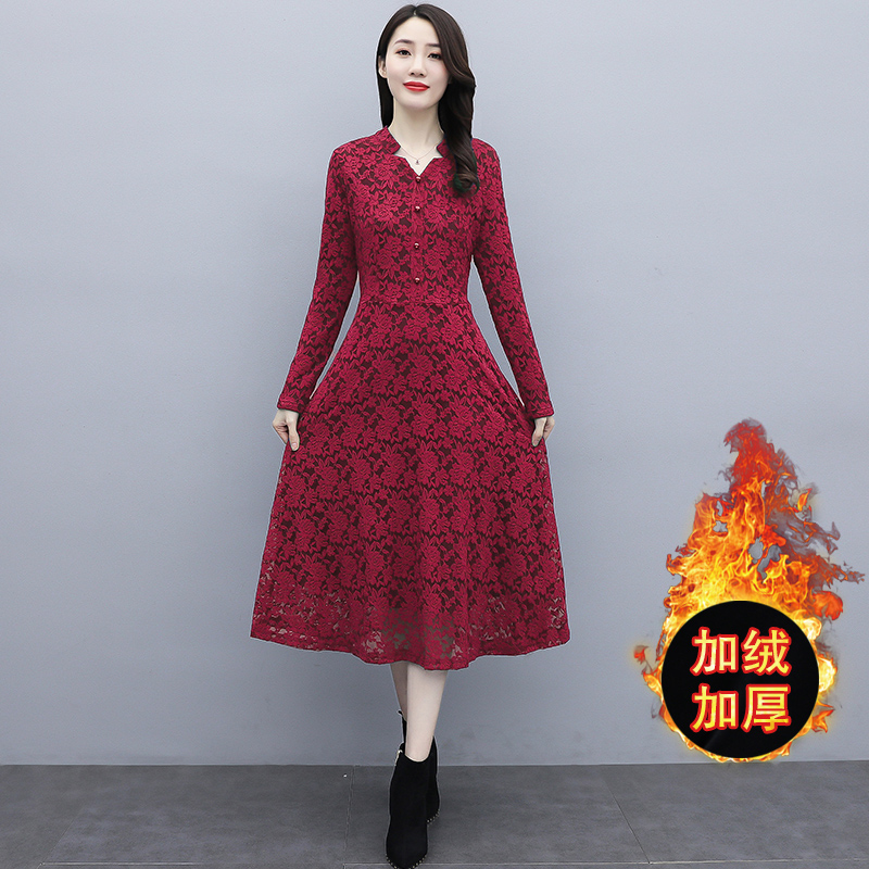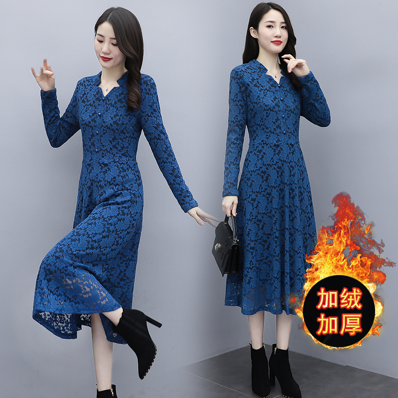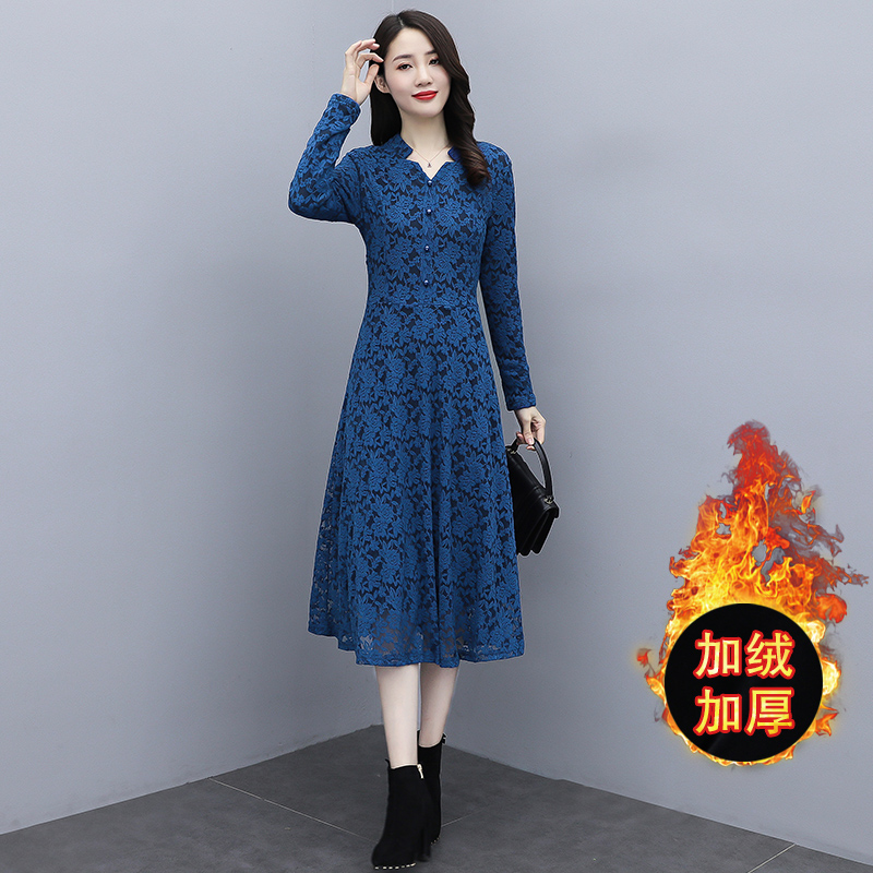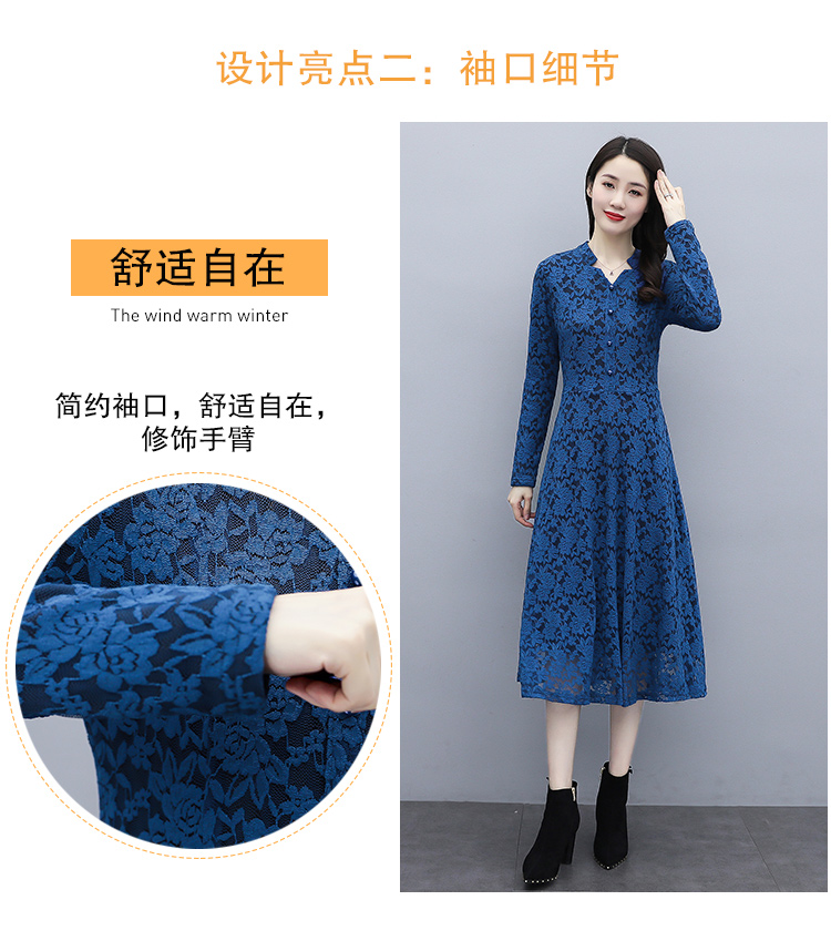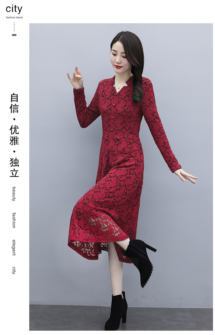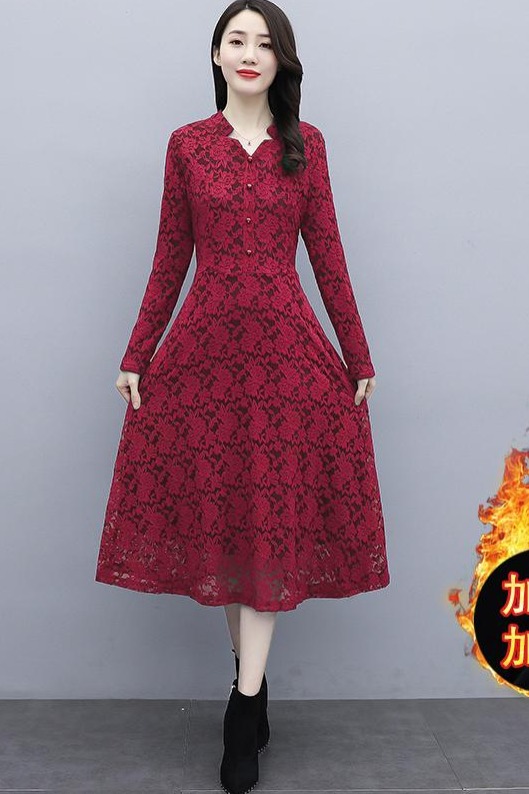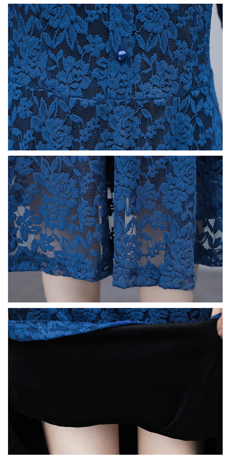 MY15446# 蕾丝连衣裙新款洋气v领显瘦过膝阔太太长裙子潮女裝貨源服裝批發