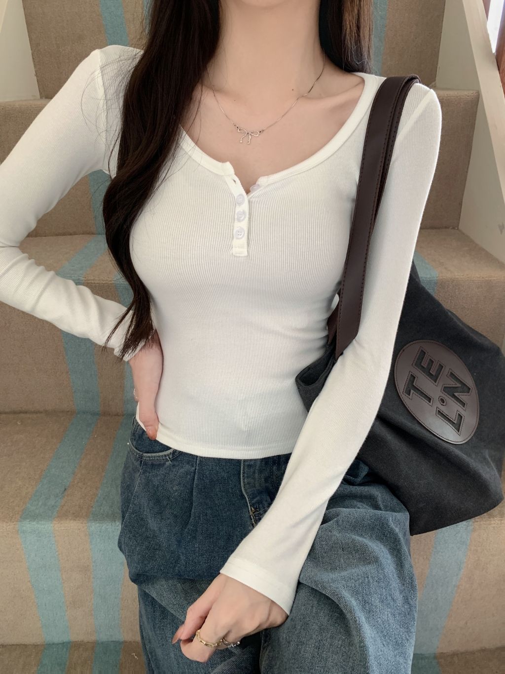 MY15447# 长袖t恤女瘦辣妹内搭打底衫女裝貨源服裝批發