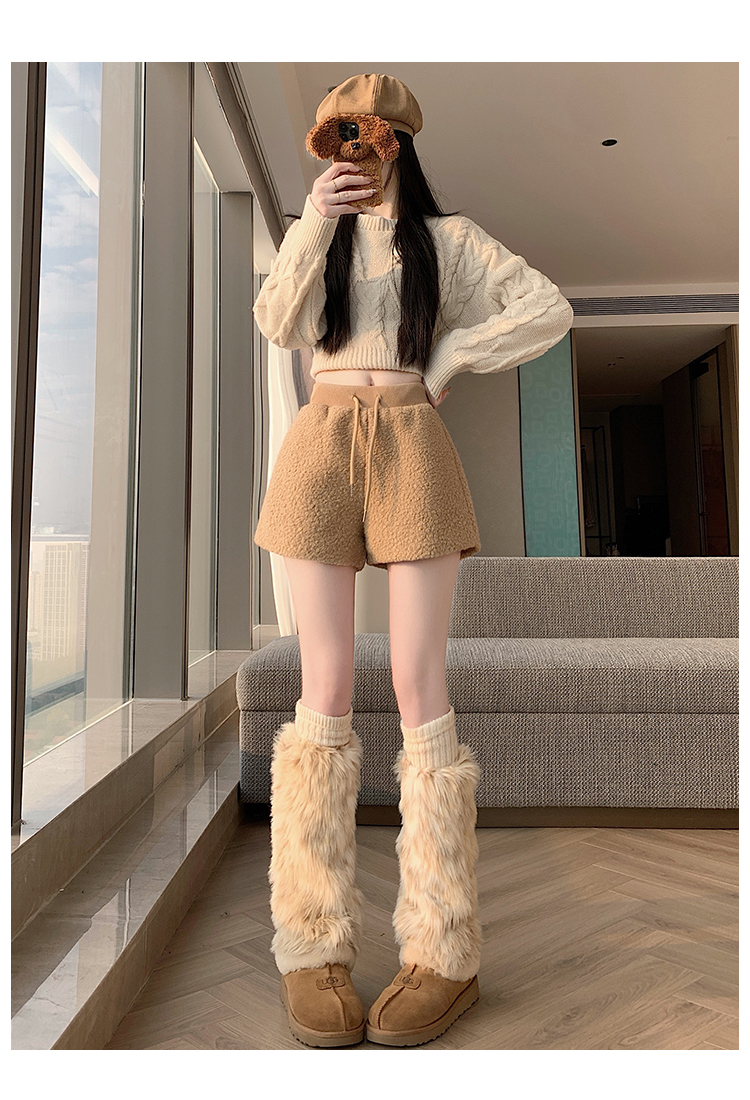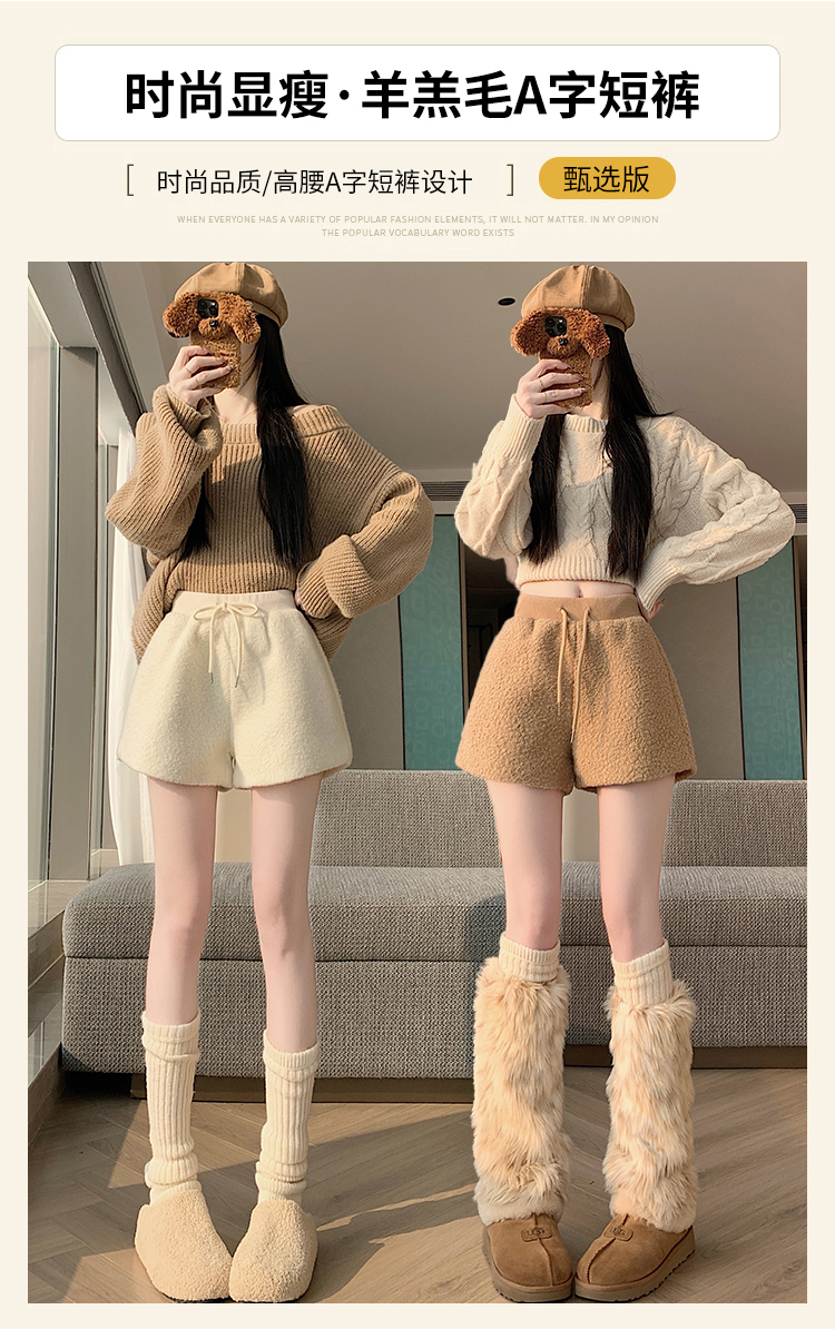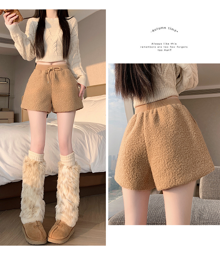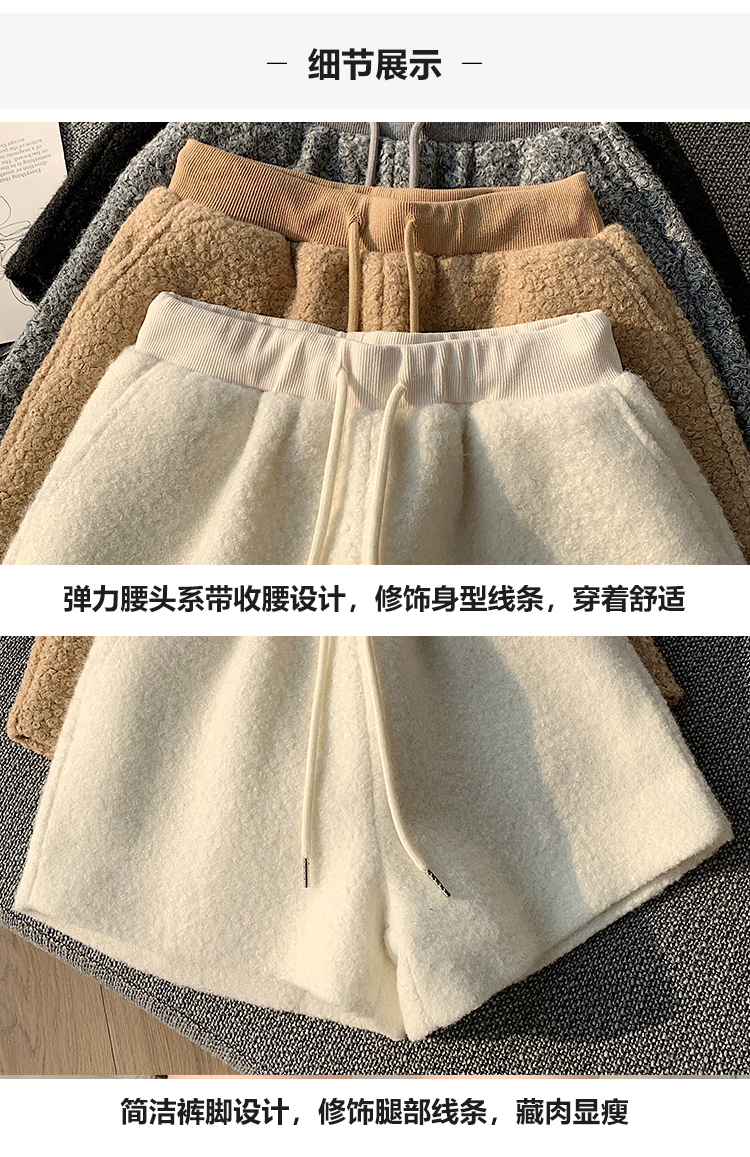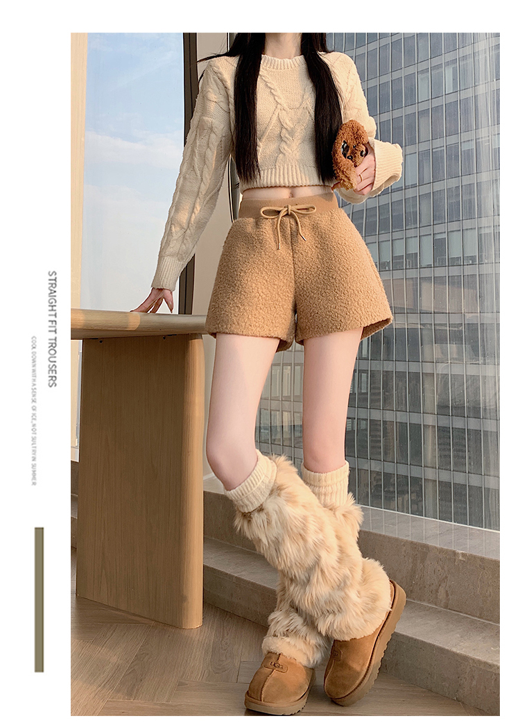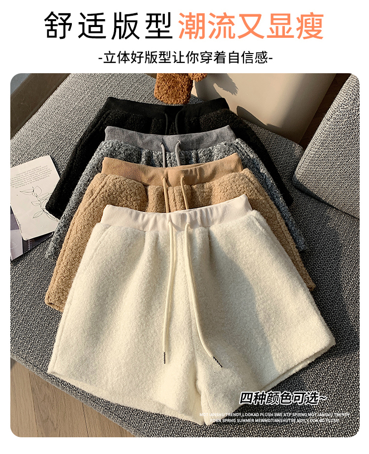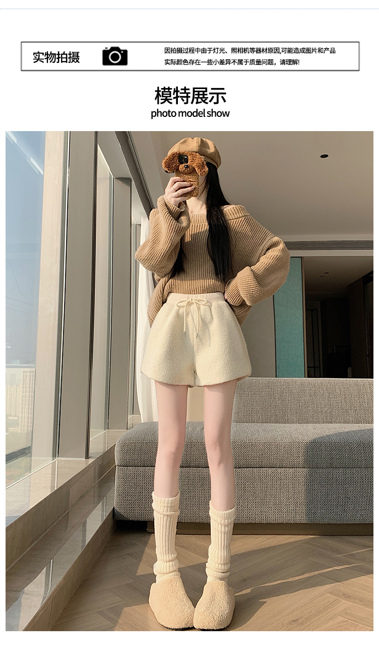 MY15448# 简约气质纯色毛呢抽绳高腰休闲裤小众加厚包臀短裤女裝貨源服裝批發
