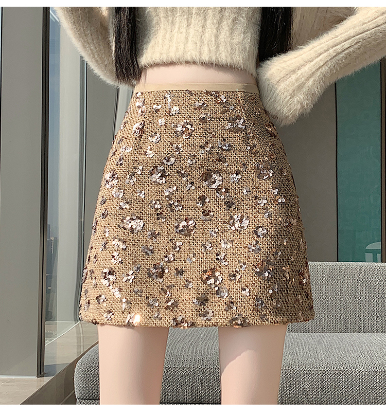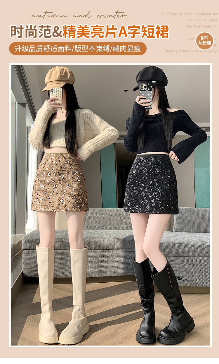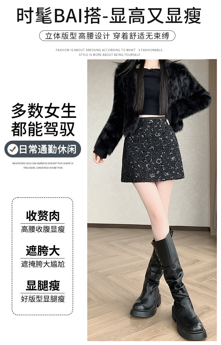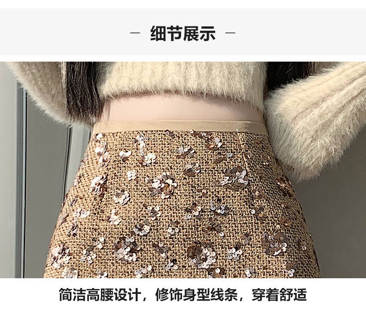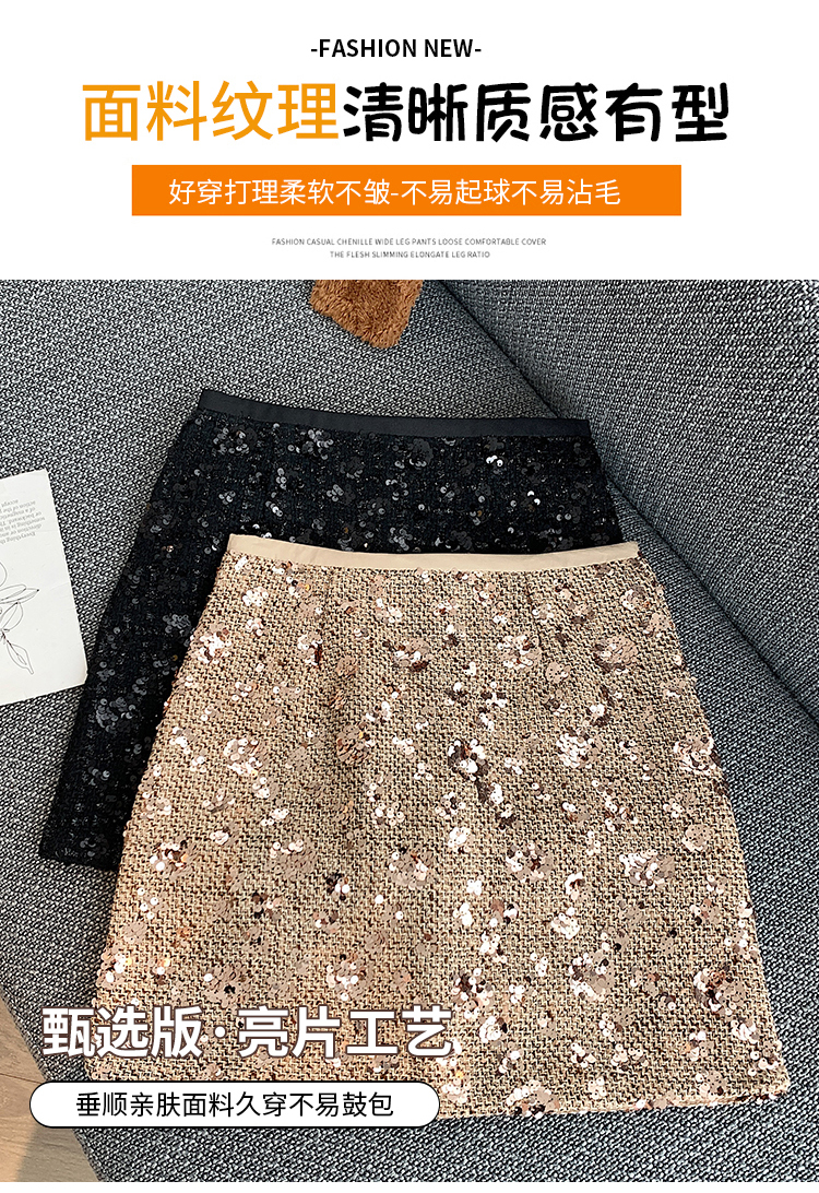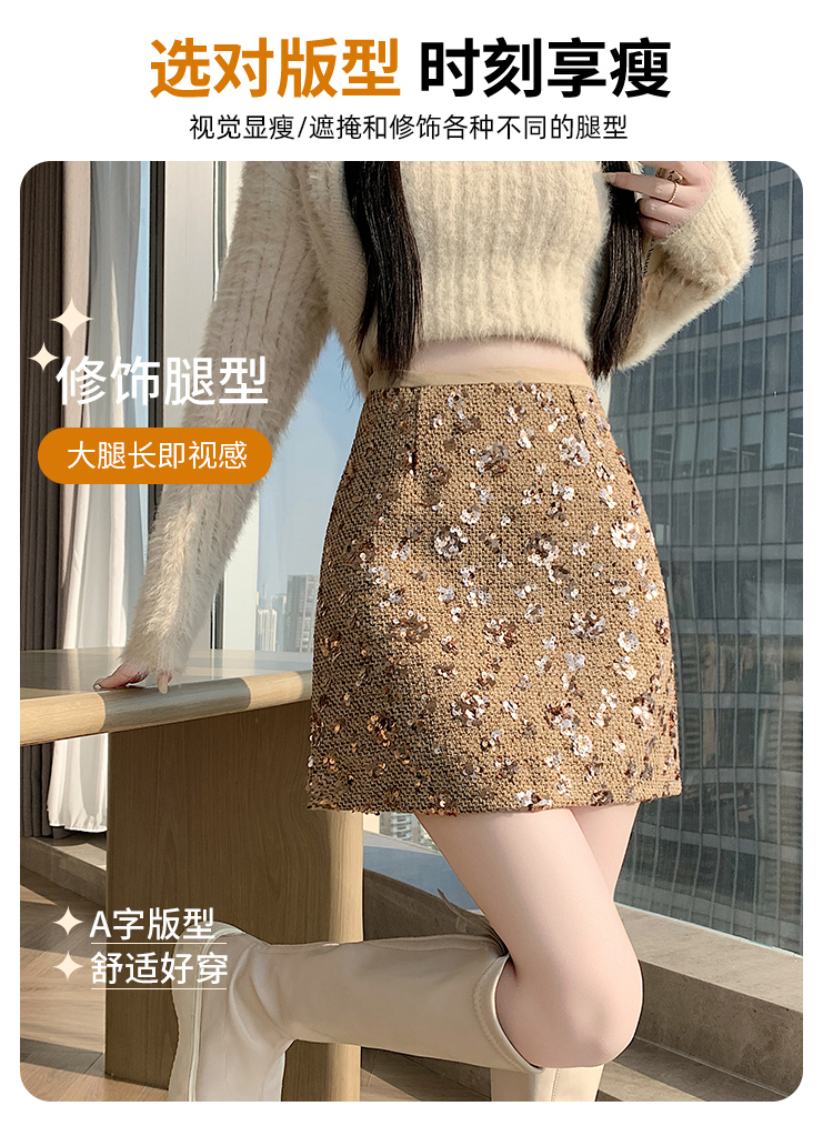 MY15456# 加厚高级感复古重工亮片半身裙高腰气质显瘦包臀A字裙女裝貨源服裝批發