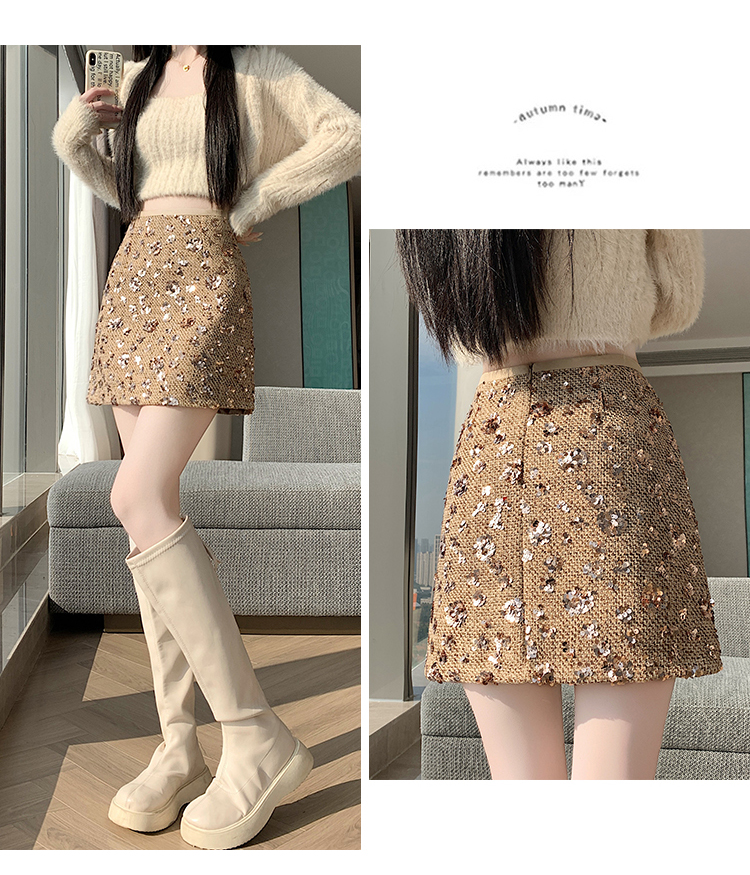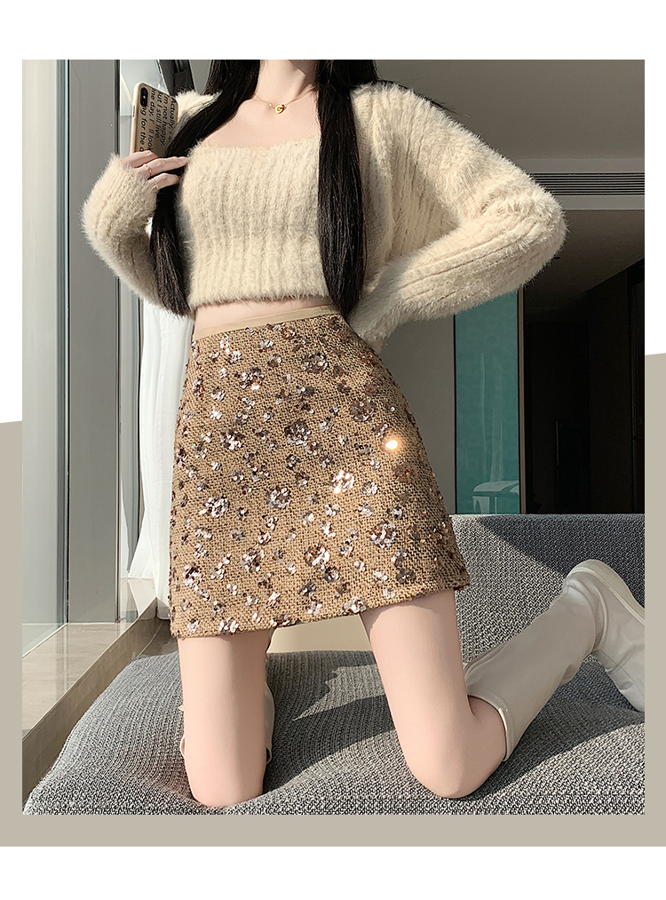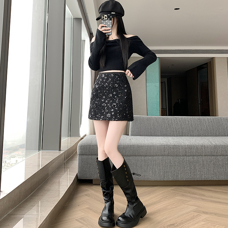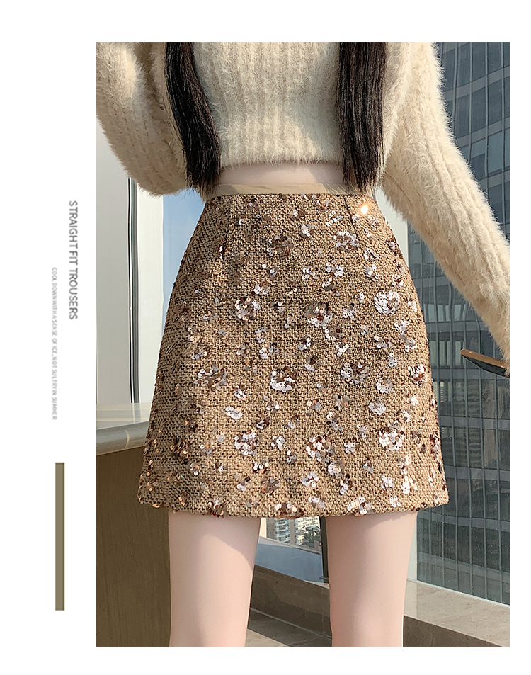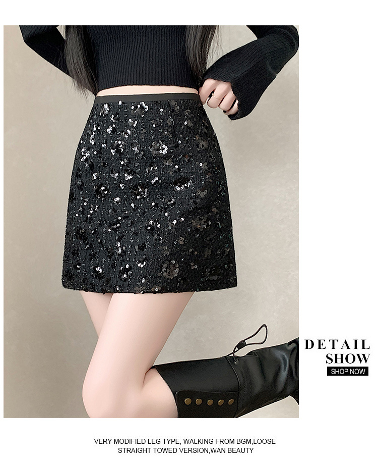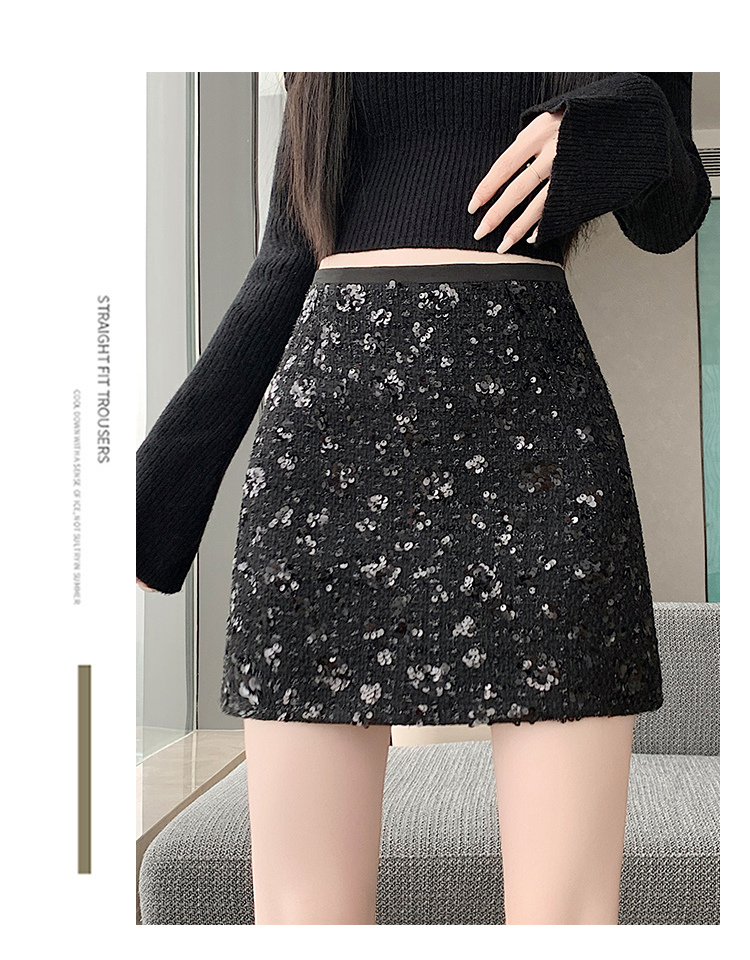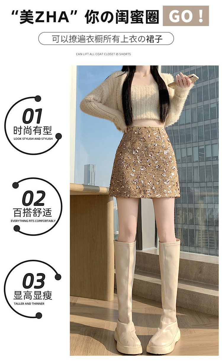 MY15456# 加厚高级感复古重工亮片半身裙高腰气质显瘦包臀A字裙女裝貨源服裝批發