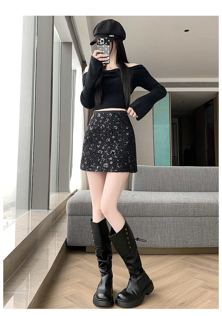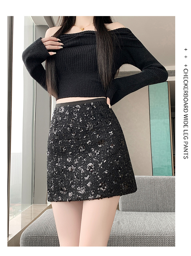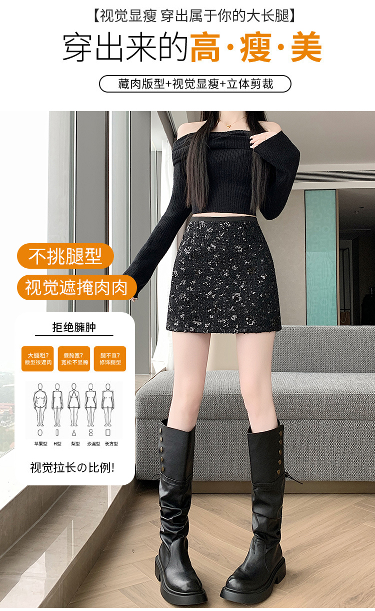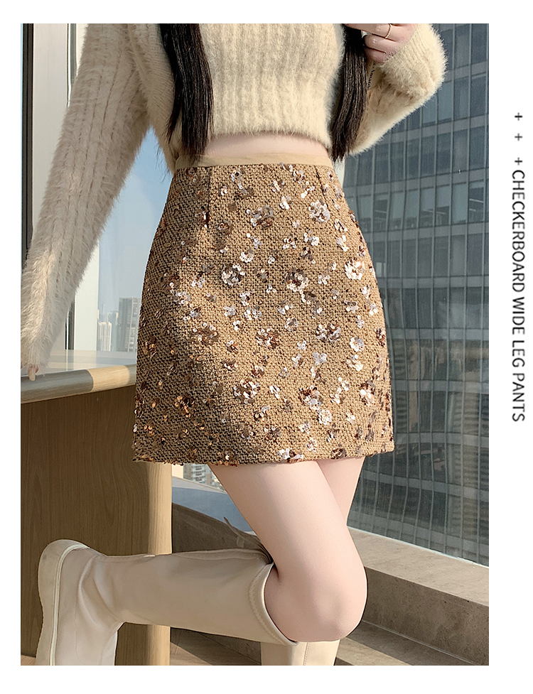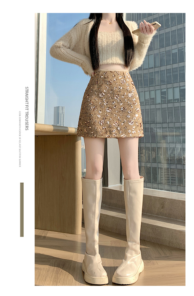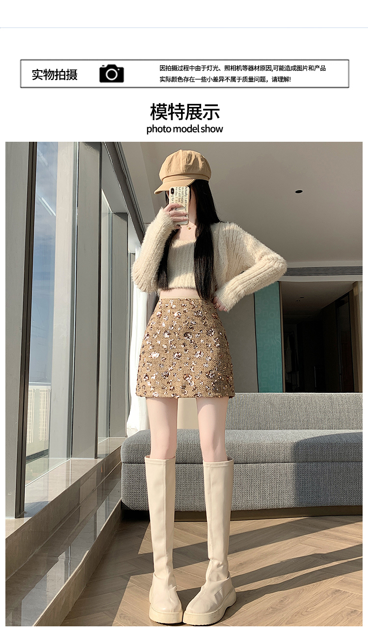 MY15456# 加厚高级感复古重工亮片半身裙高腰气质显瘦包臀A字裙女裝貨源服裝批發