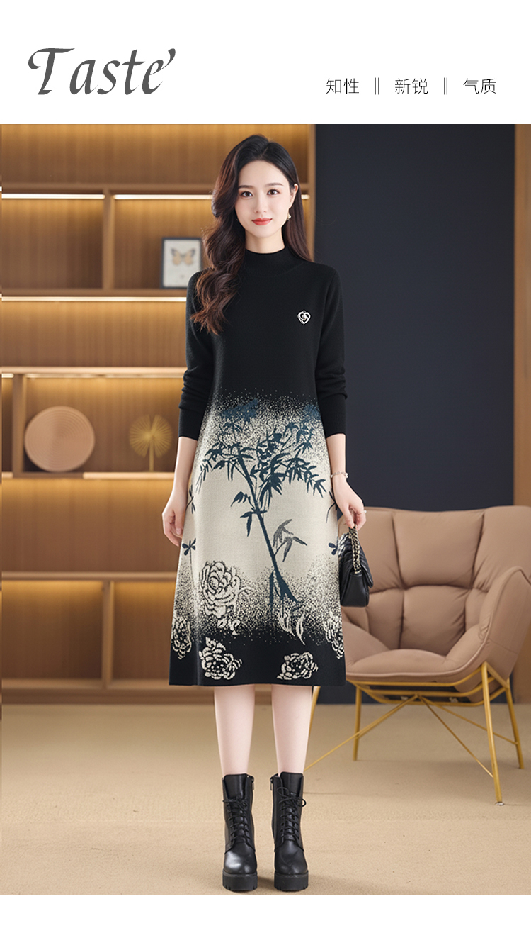 MY15457# 针织毛衣女宽松外穿秋冬装2025新款加厚中长款打底连衣裙女裝貨源服裝批發