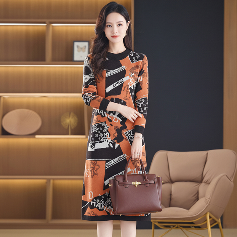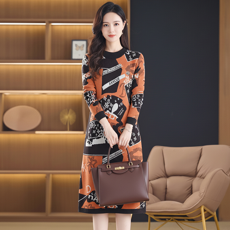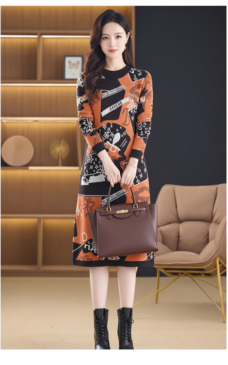 MY15457# 针织毛衣女宽松外穿秋冬装2025新款加厚中长款打底连衣裙...
