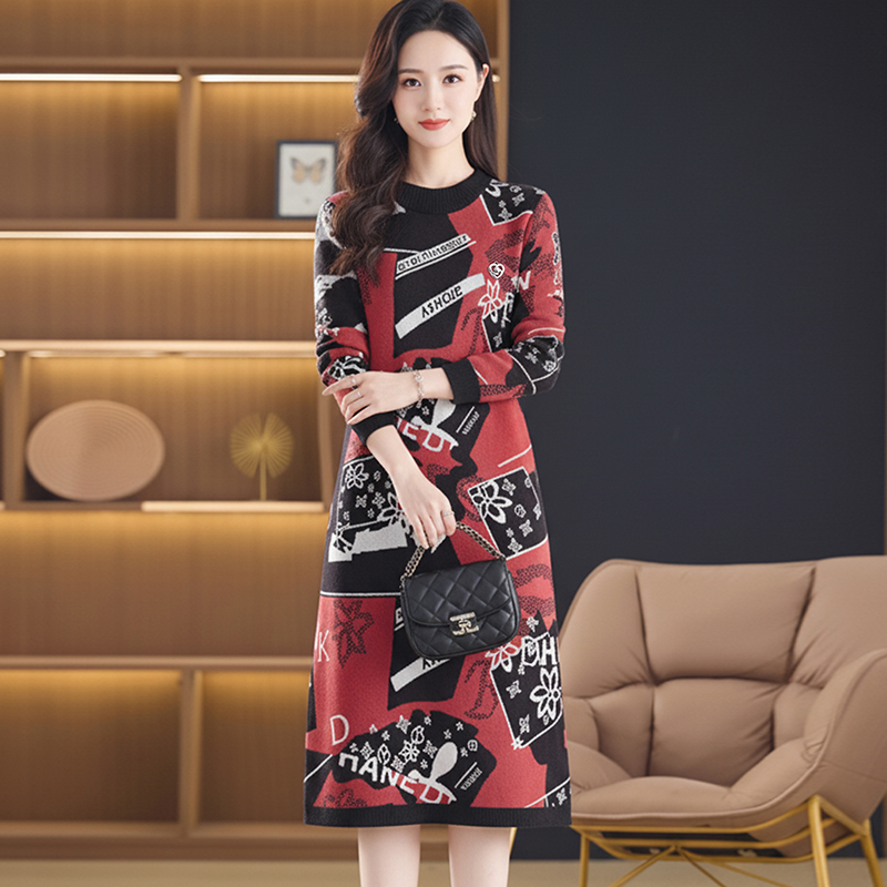 MY15460# 针织毛衣女宽松外穿新款加厚中长款打底连衣裙女裝貨源服裝批發