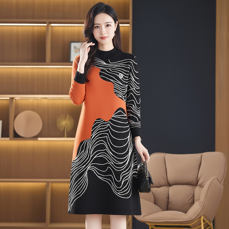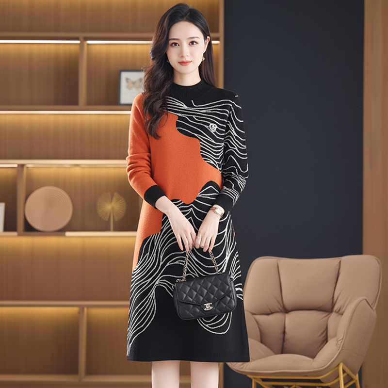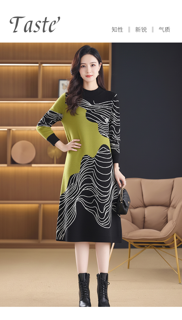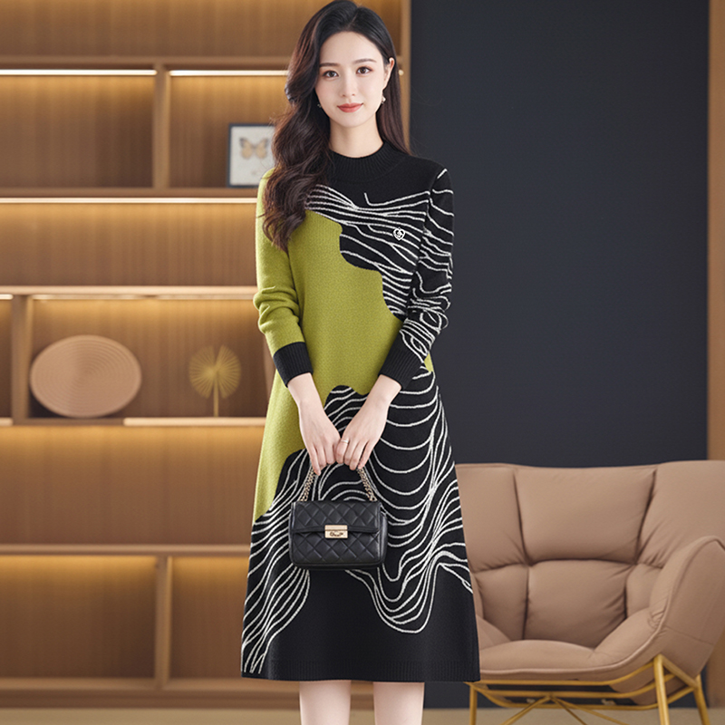 MY15457# 针织毛衣女宽松外穿秋冬装2025新款加厚中长款打底连衣裙...