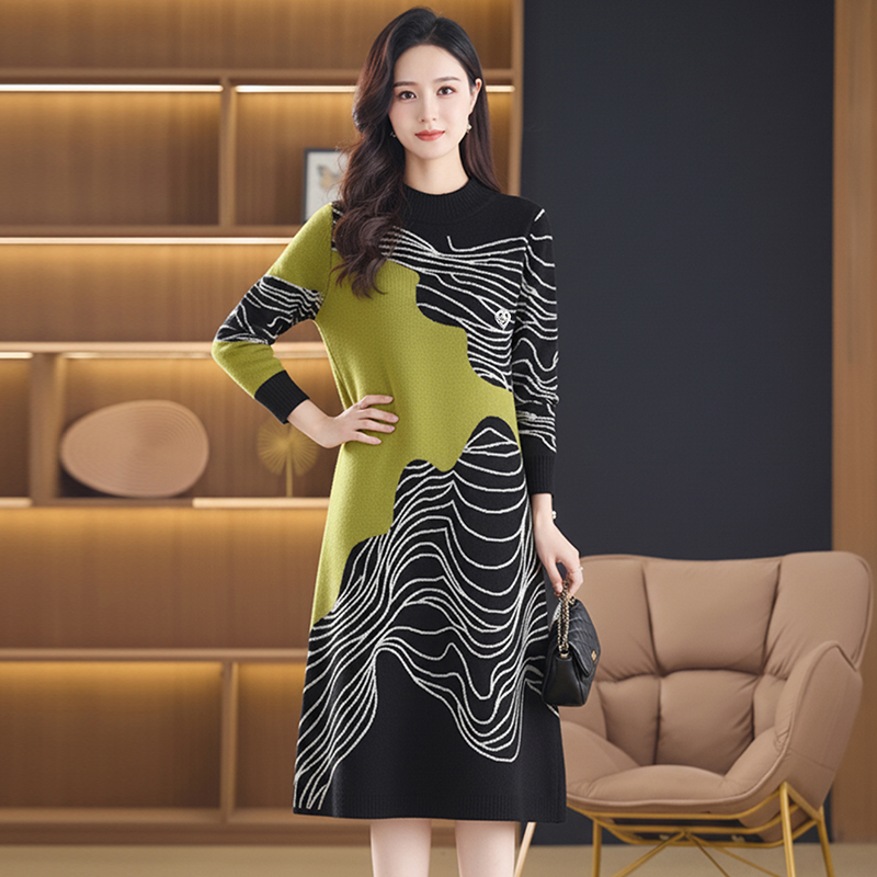 MY15463# 针织毛衣女宽松外穿新款加厚中长款打底连衣裙女裝貨源服裝批...