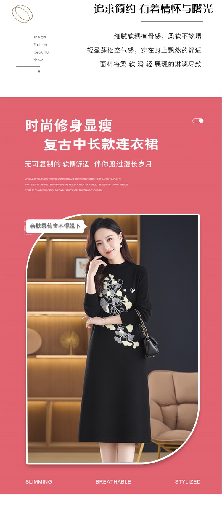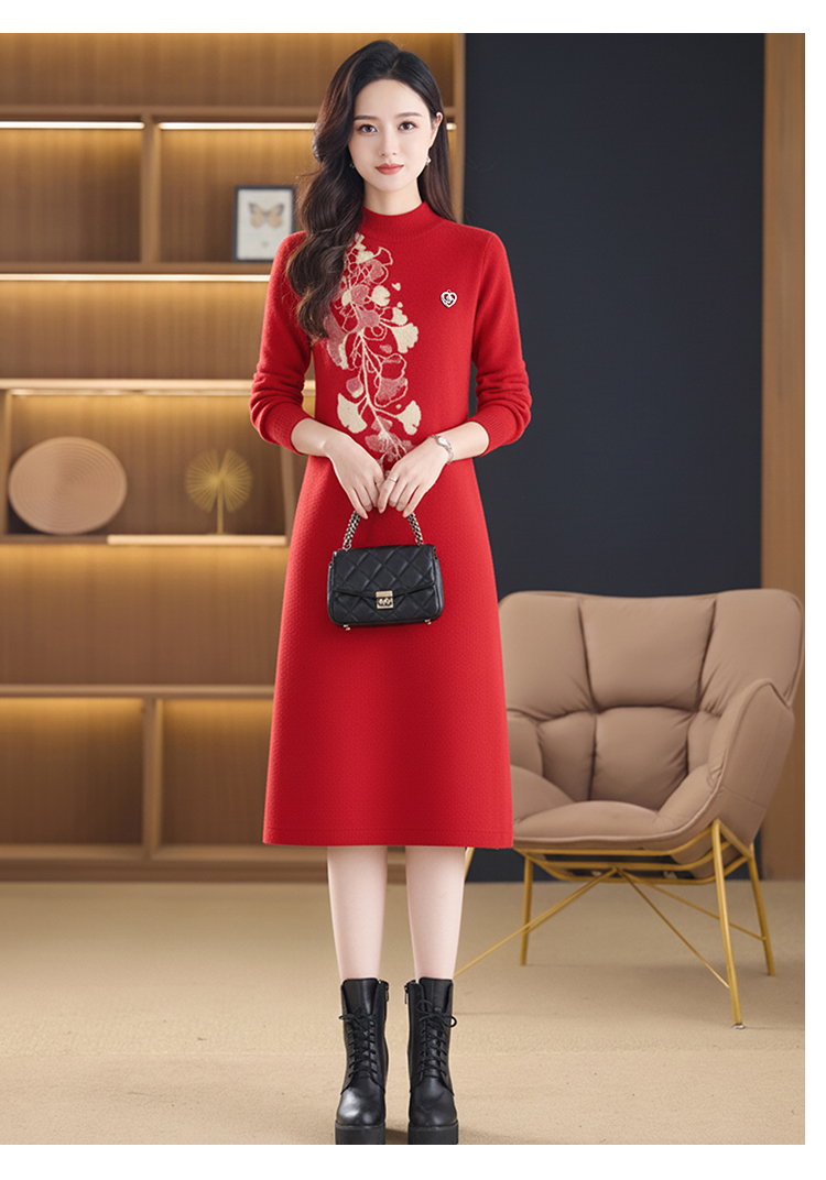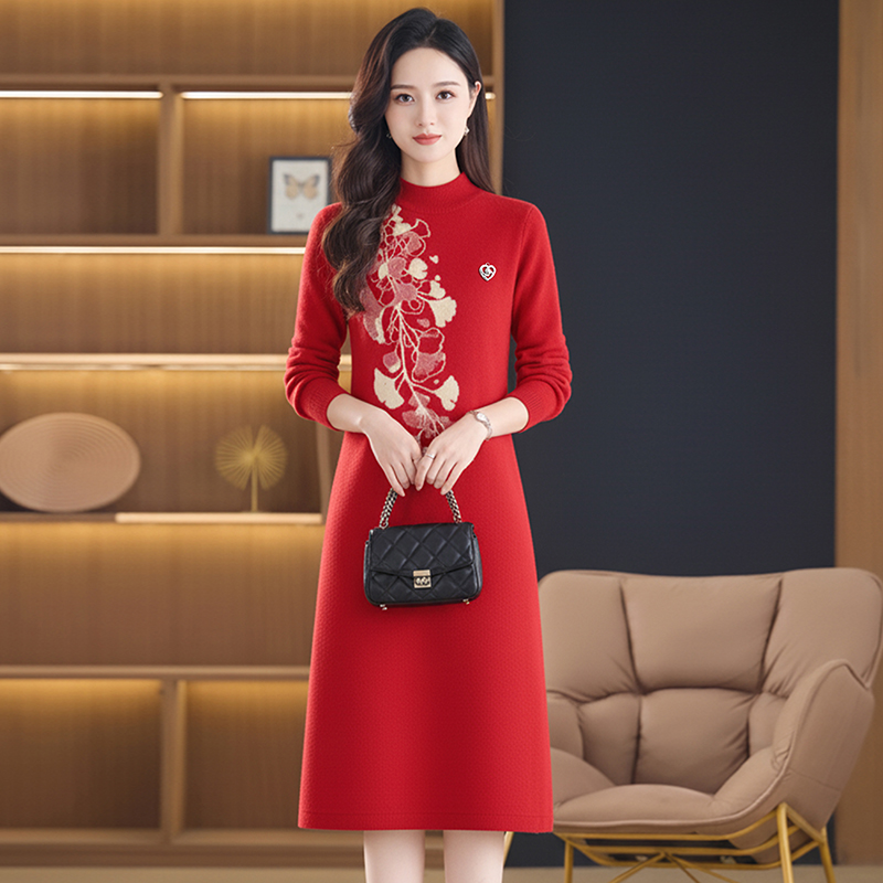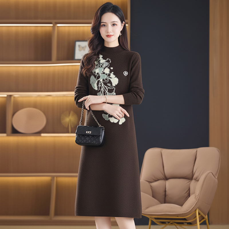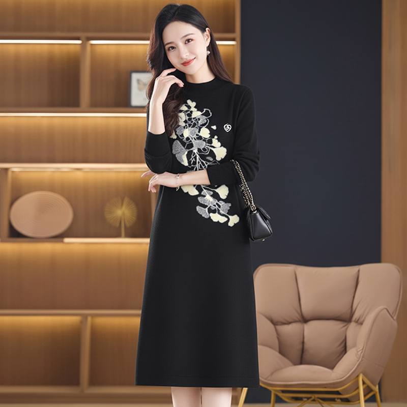 MY15457# 针织毛衣女宽松外穿秋冬装2025新款加厚中长款打底连衣裙...