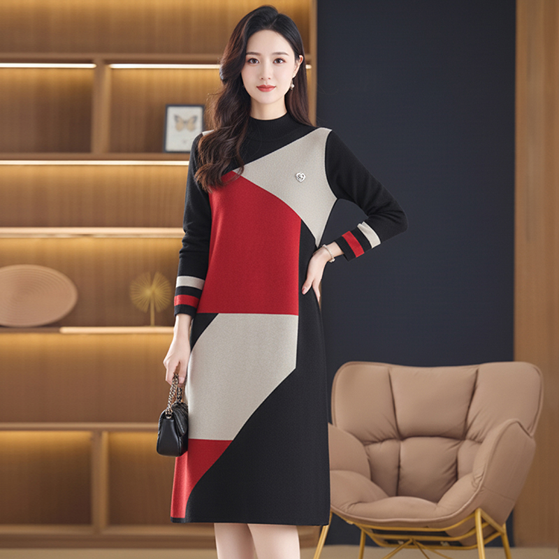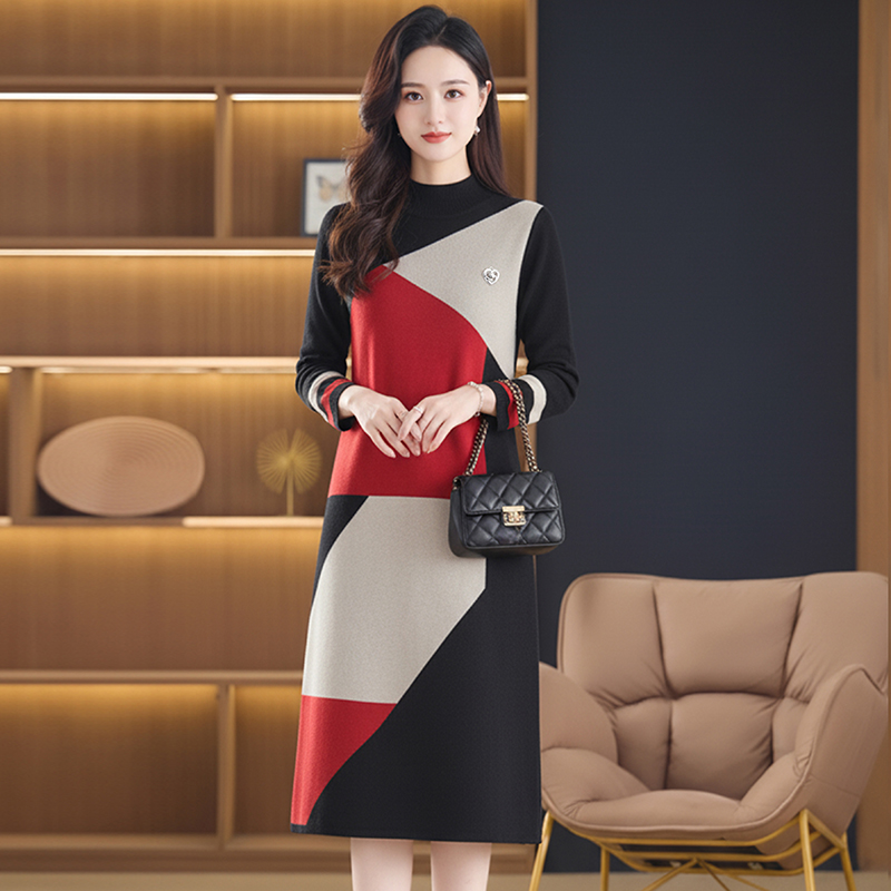 MY15463# 针织毛衣女宽松外穿新款加厚中长款打底连衣裙女裝貨源服裝批...