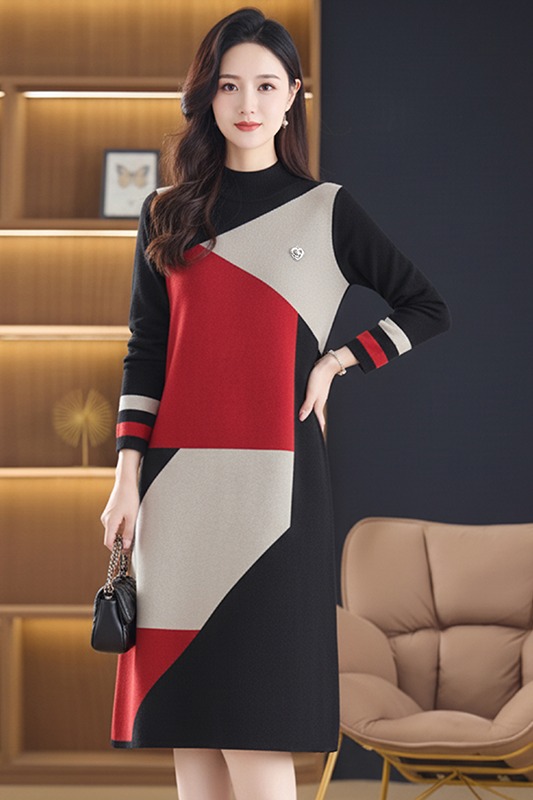 MY15464# 针织毛衣女宽松外穿新款加厚中长款打底连衣裙女裝貨源服裝批發