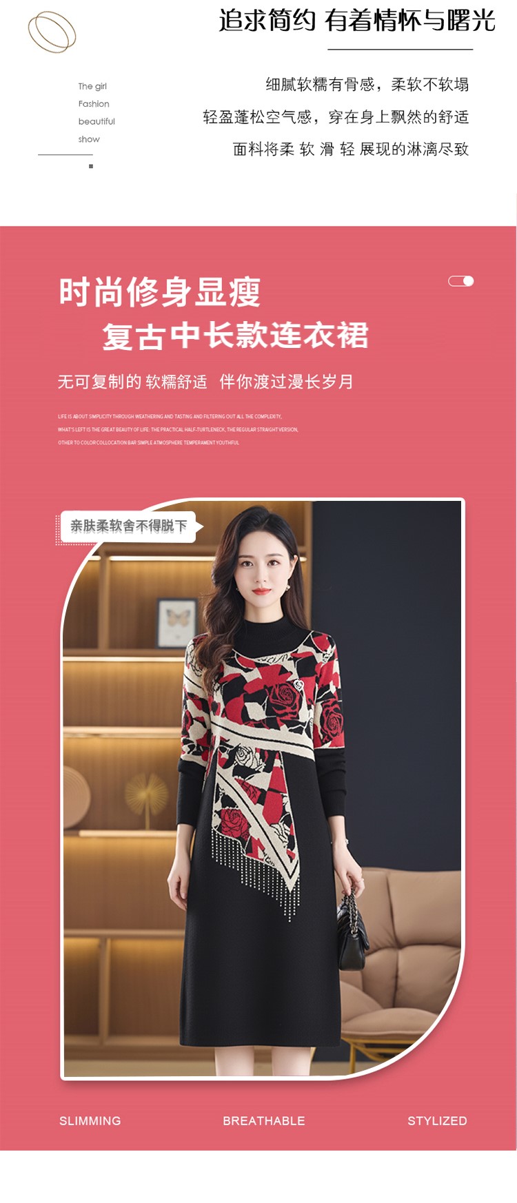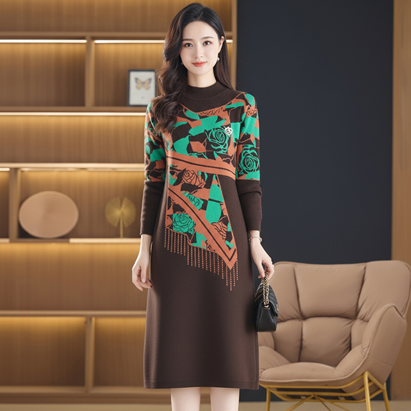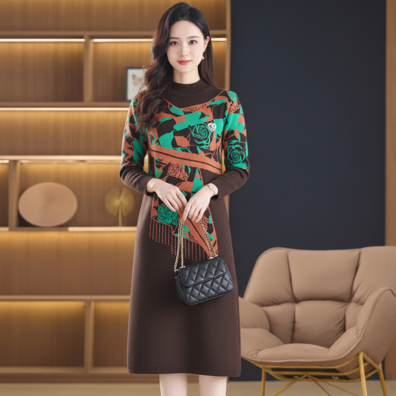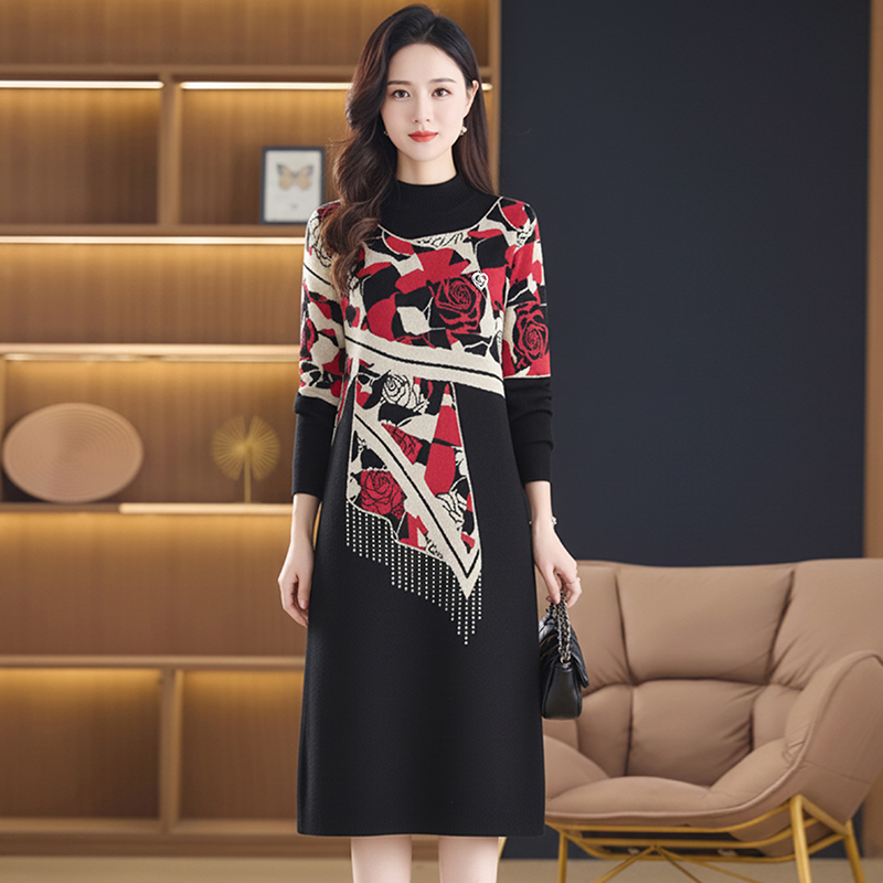 MY15465# 针织毛衣女宽松外穿新款加厚中长款打底连衣裙女裝貨源服裝批發