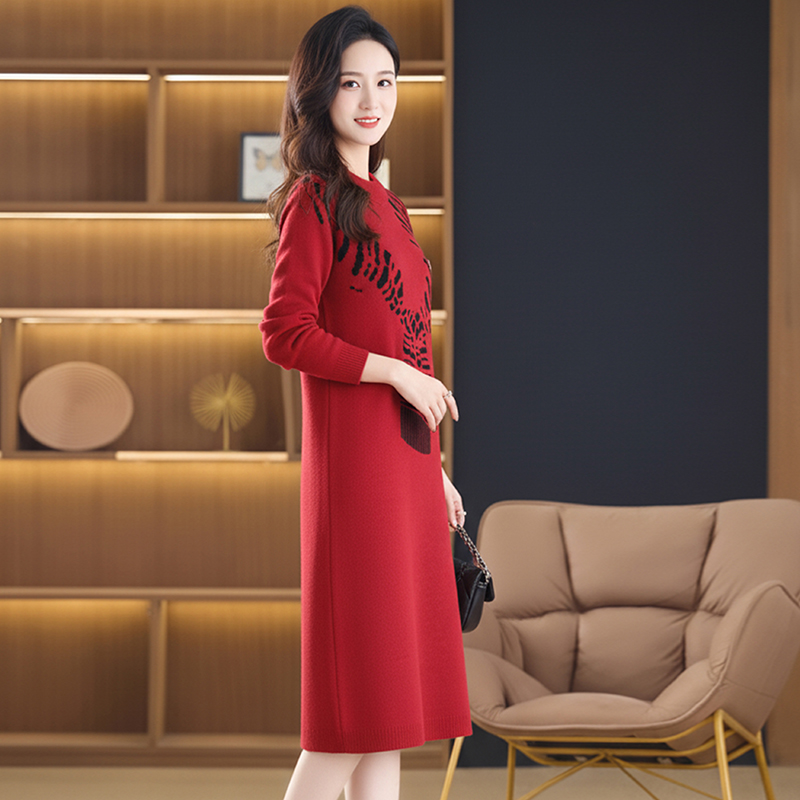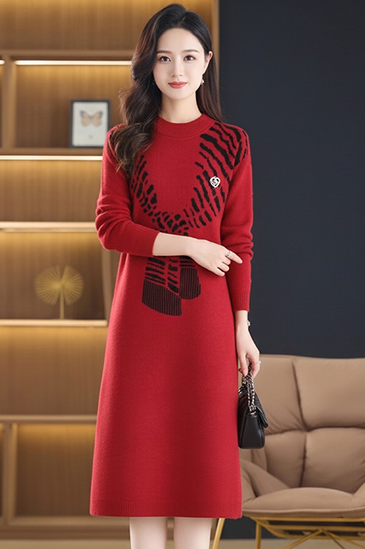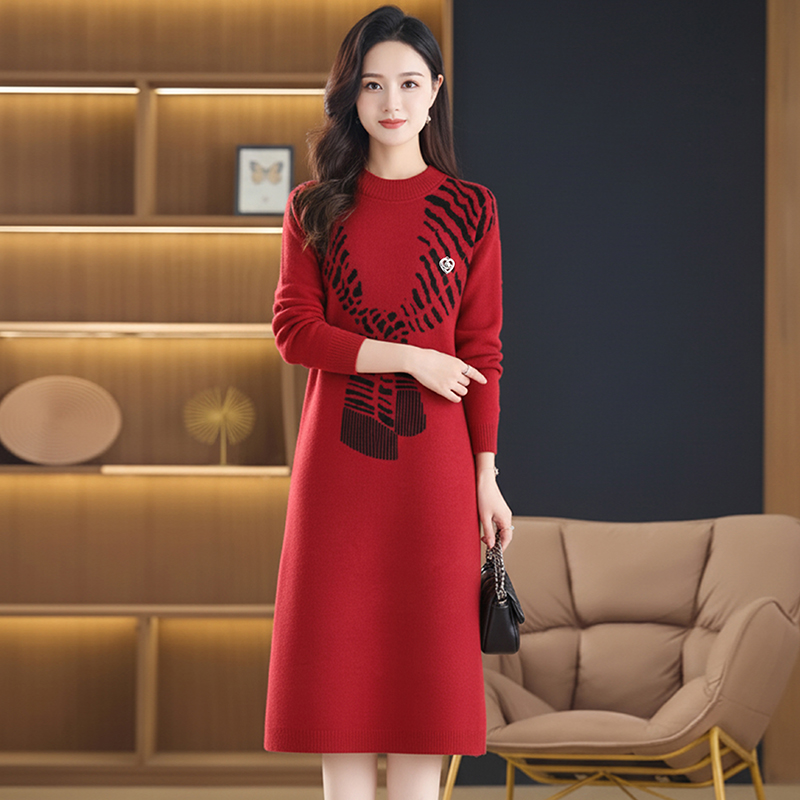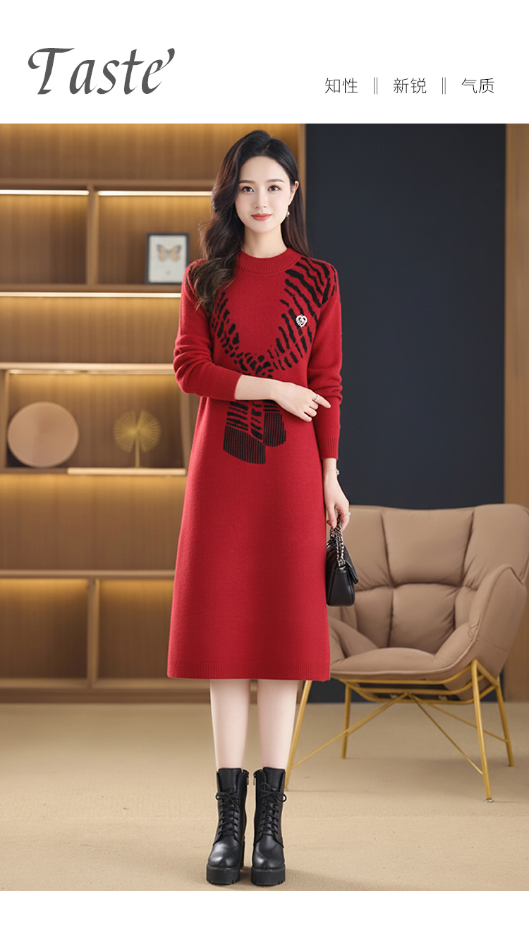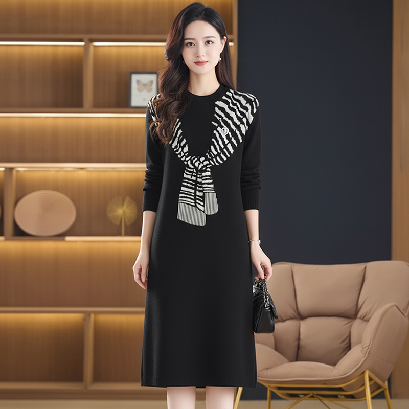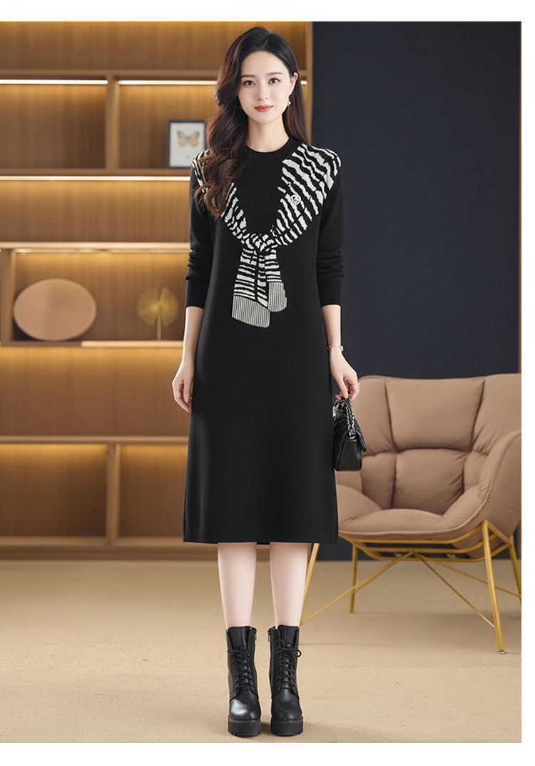 MY15467# 针织毛衣女宽松外穿新款加厚中长款打底连衣裙女裝貨源服裝批發