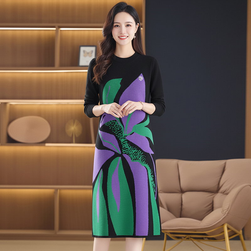MY15457# 针织毛衣女宽松外穿秋冬装2025新款加厚中长款打底连衣裙...