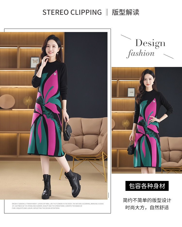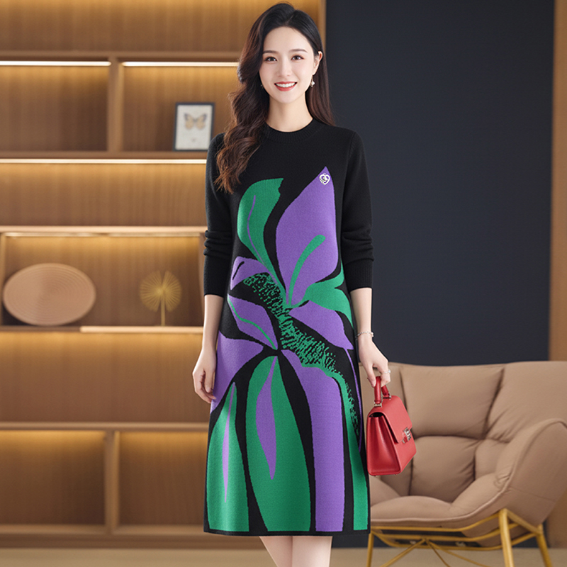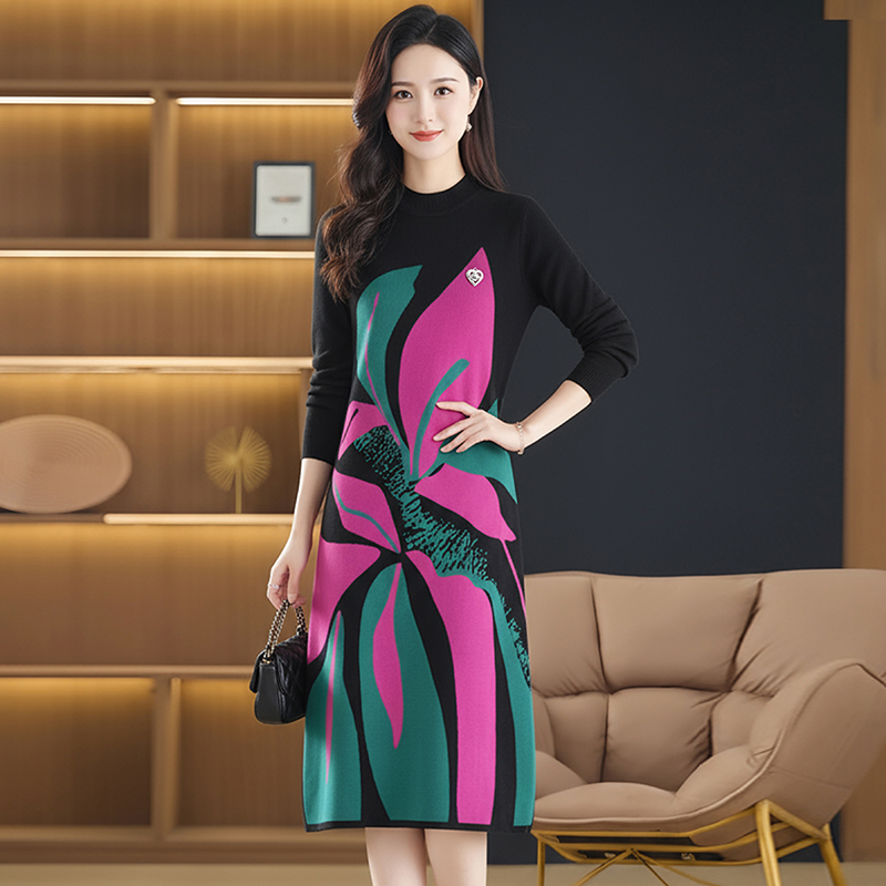 MY15463# 针织毛衣女宽松外穿新款加厚中长款打底连衣裙女裝貨源服裝批...