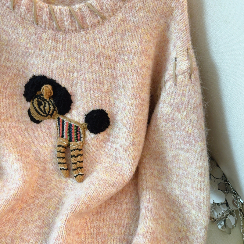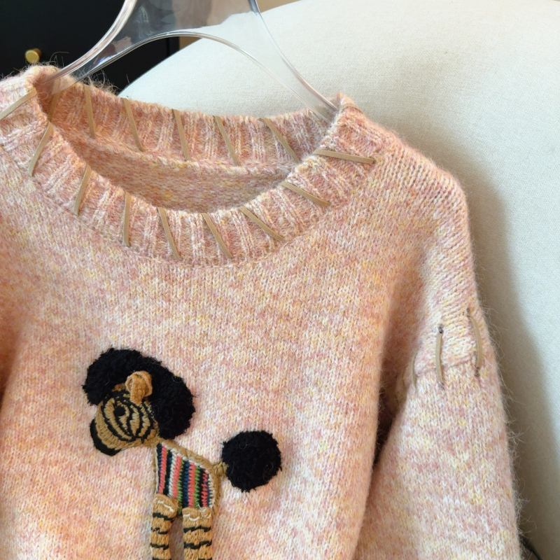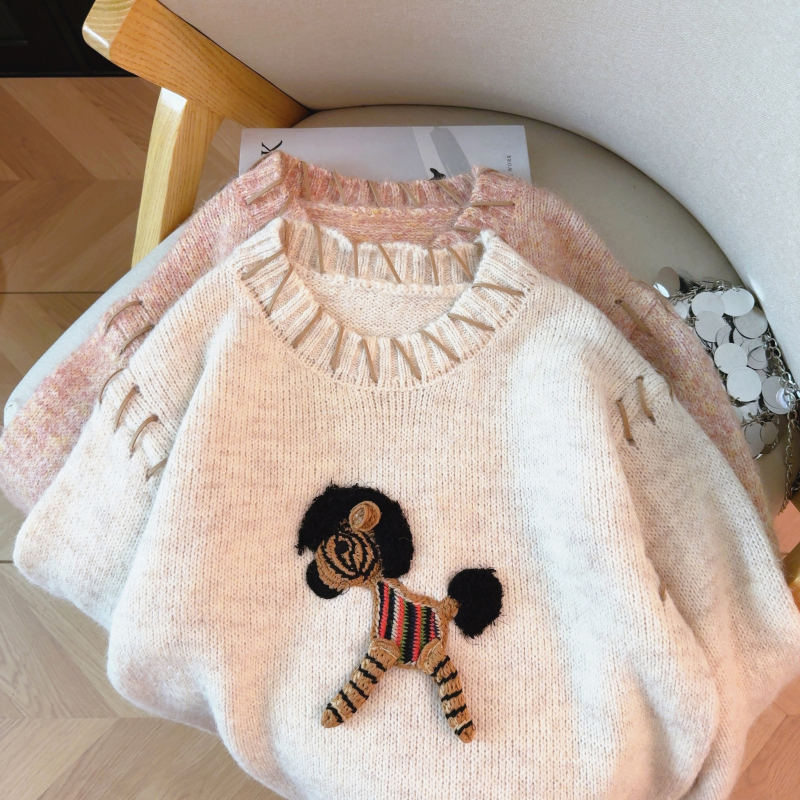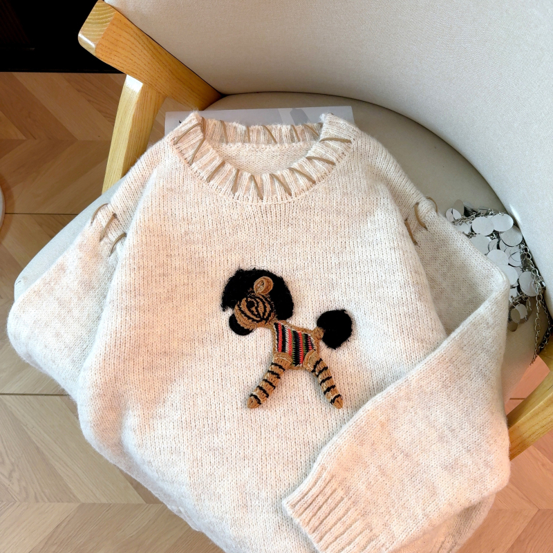 MY15472# 马年卡通小马软糯毛衣新款慵懒高级感复古上衣针织衫女裝貨源服裝批發