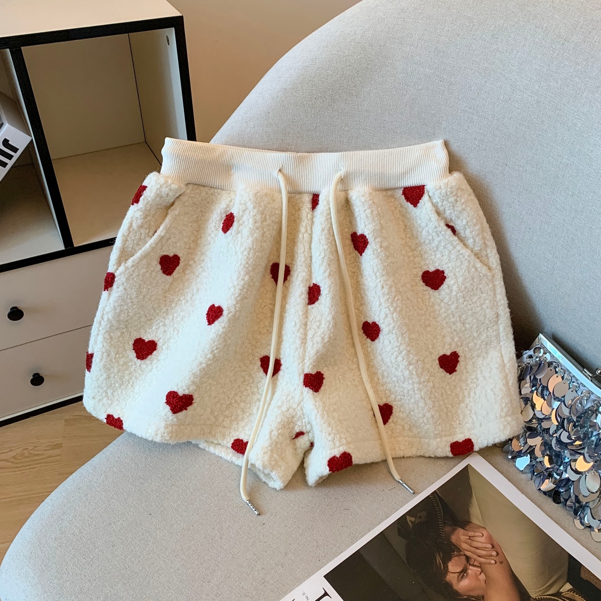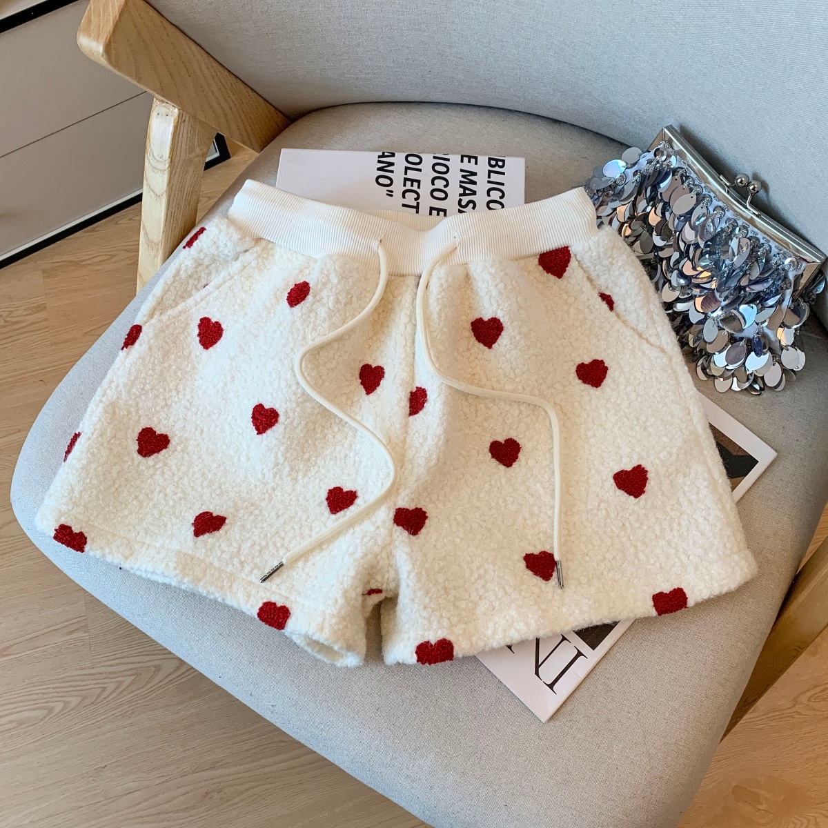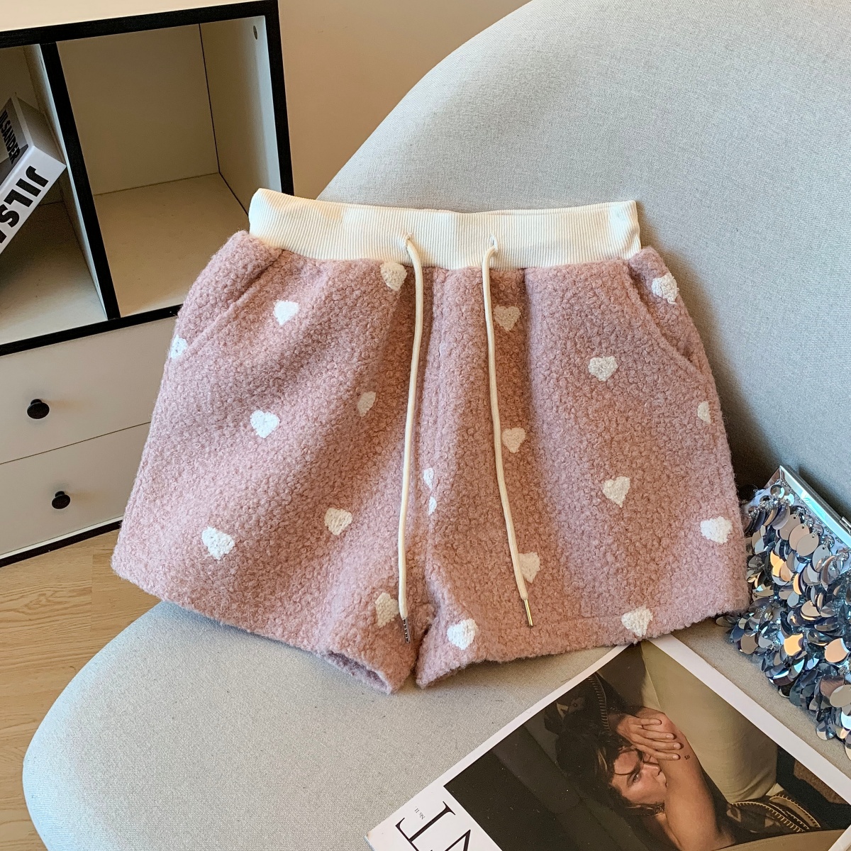 MY15479# 羊羔绒短裤女新款高腰a字显瘦慵懒保暖毛绒靴裤女裝貨源服裝批發