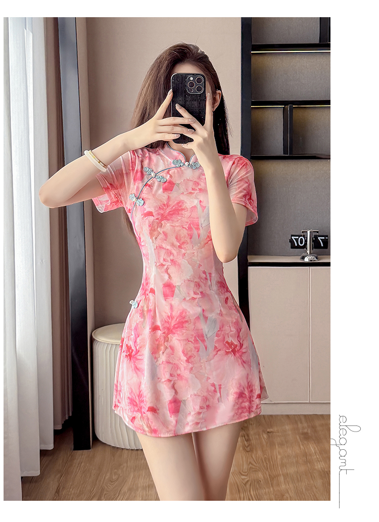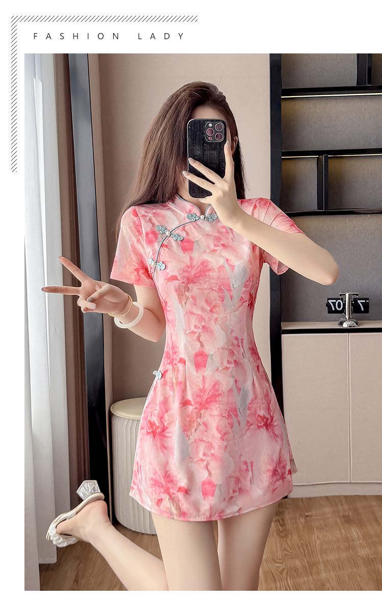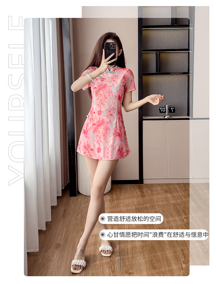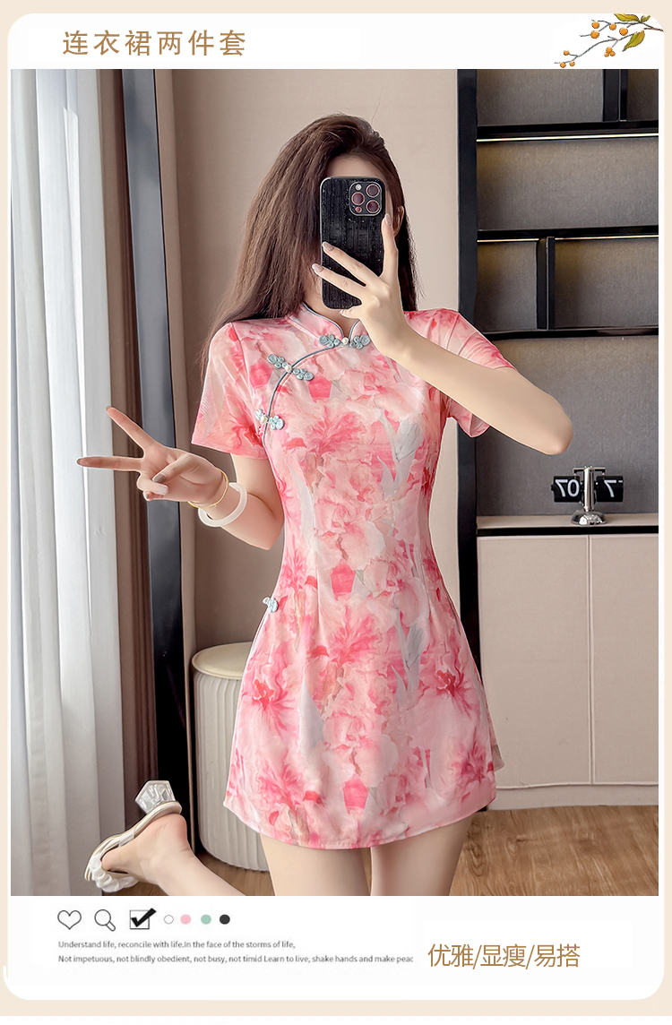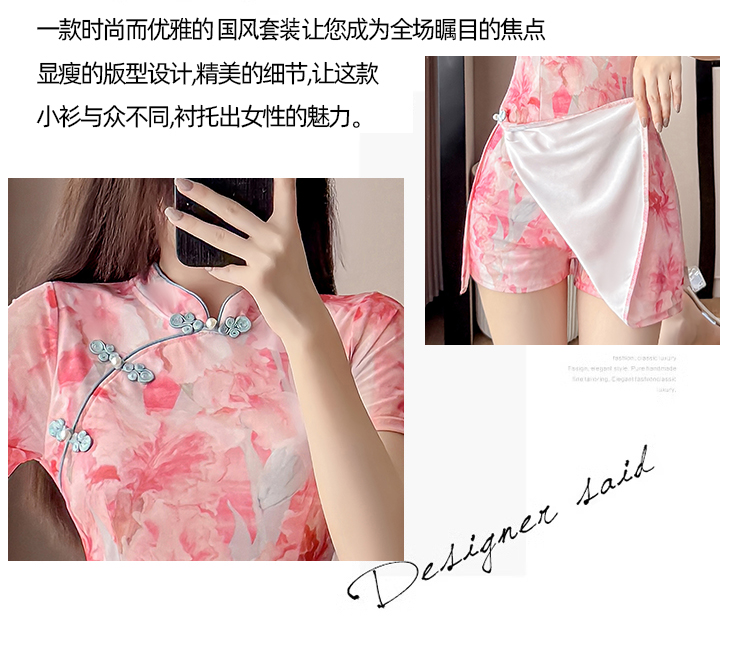 MY15482# 改良旗袍新中式套装国风气质甜美连衣裙短裤两件套女裝貨源服裝批發