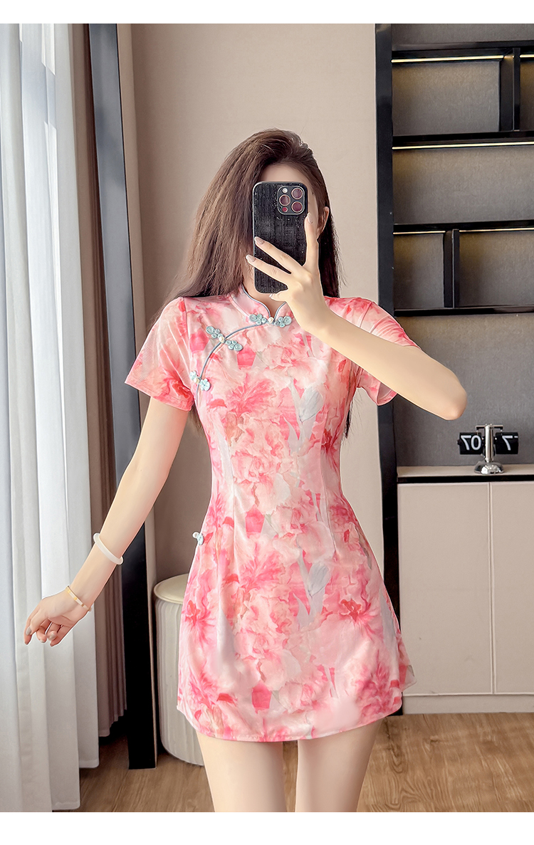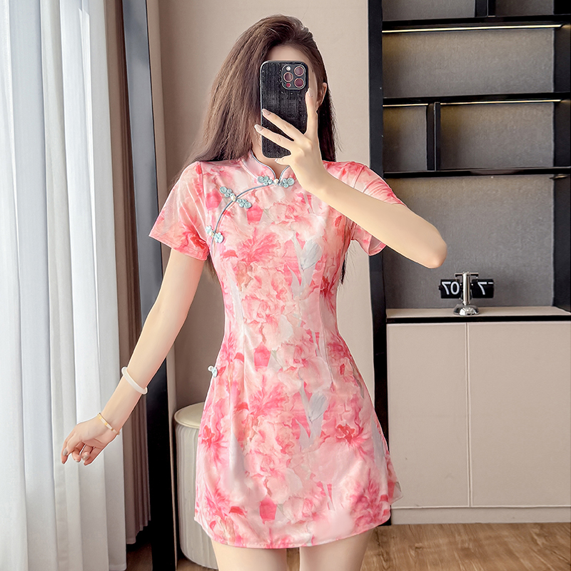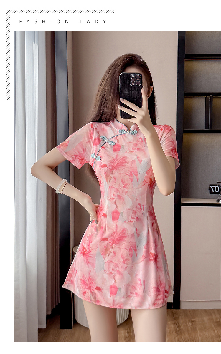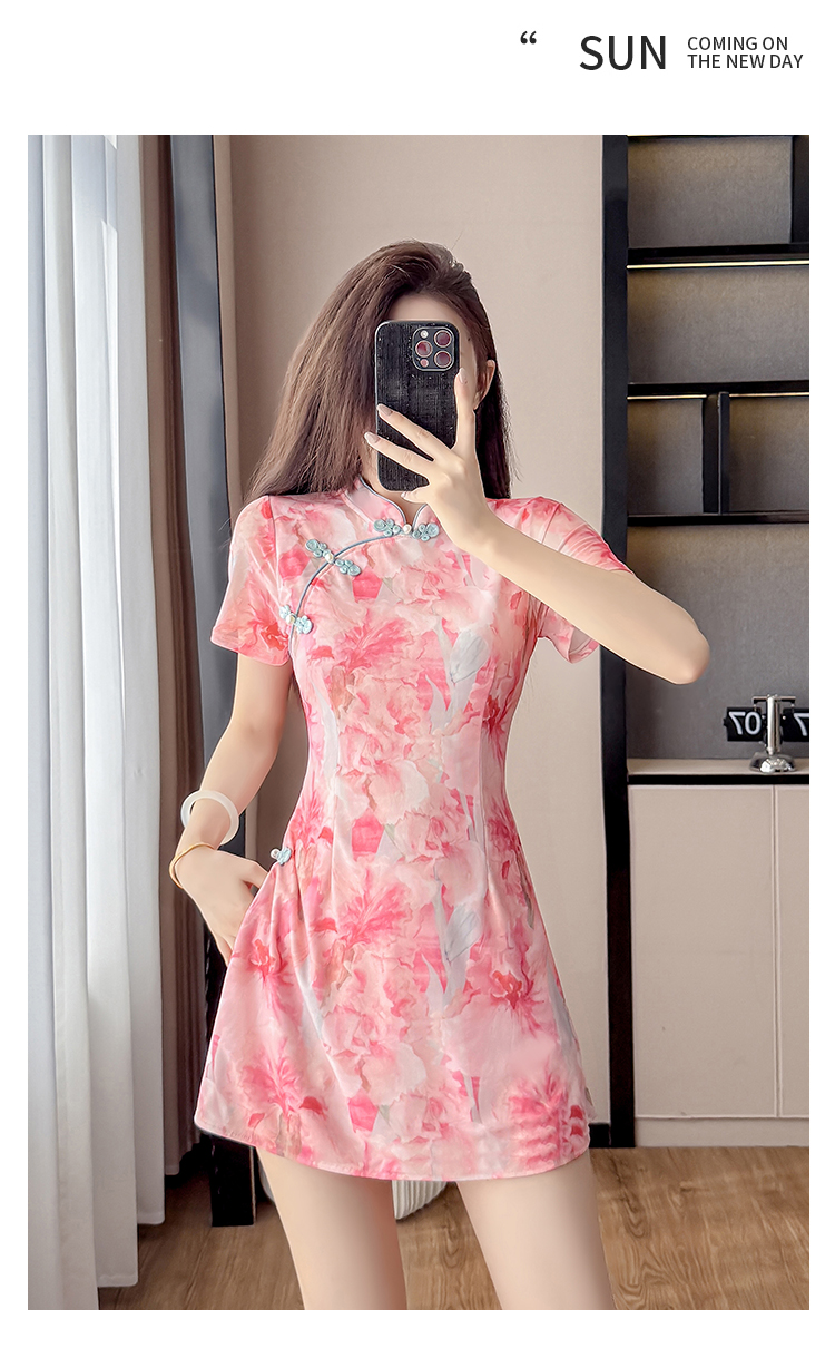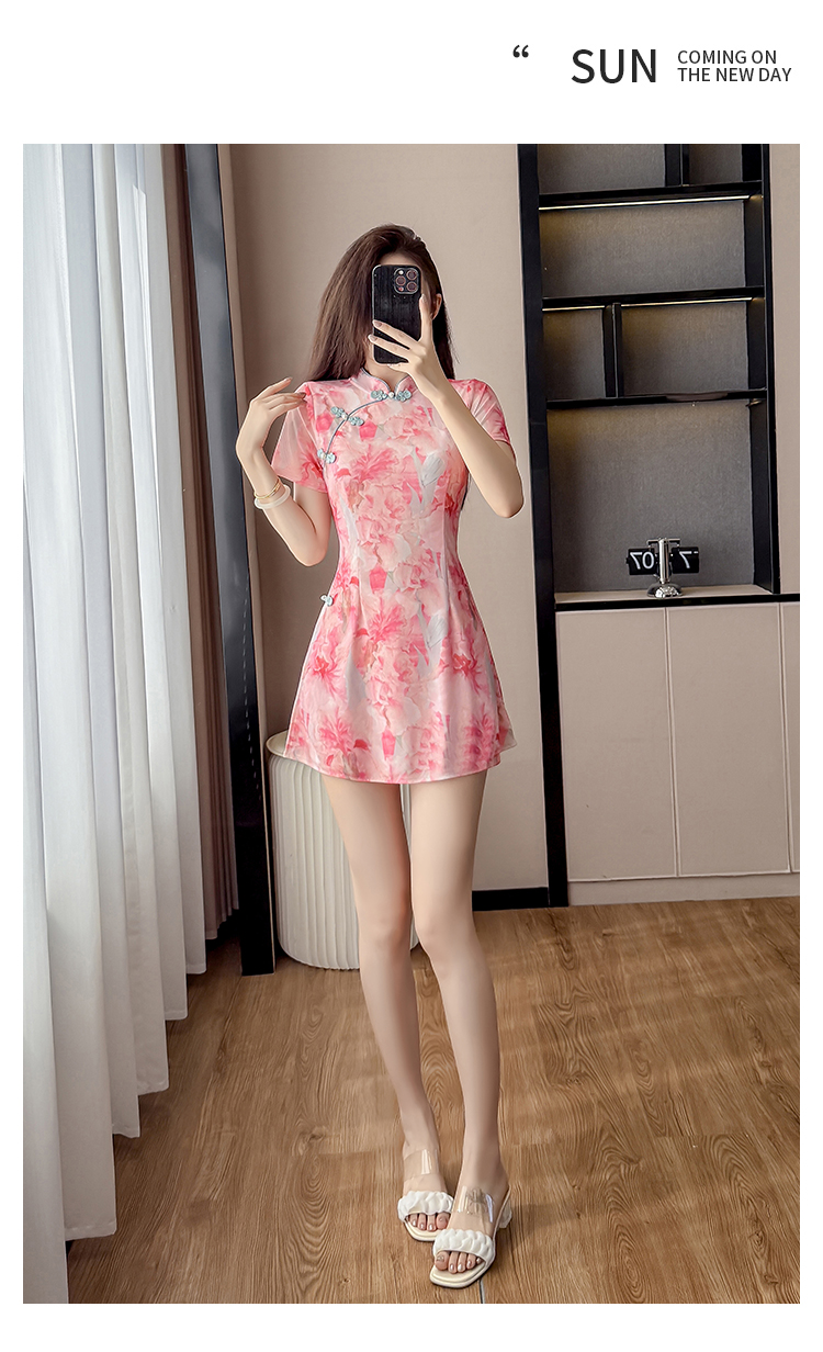 MY15482# 改良旗袍新中式套装国风气质甜美连衣裙短裤两件套女裝貨源服裝批發