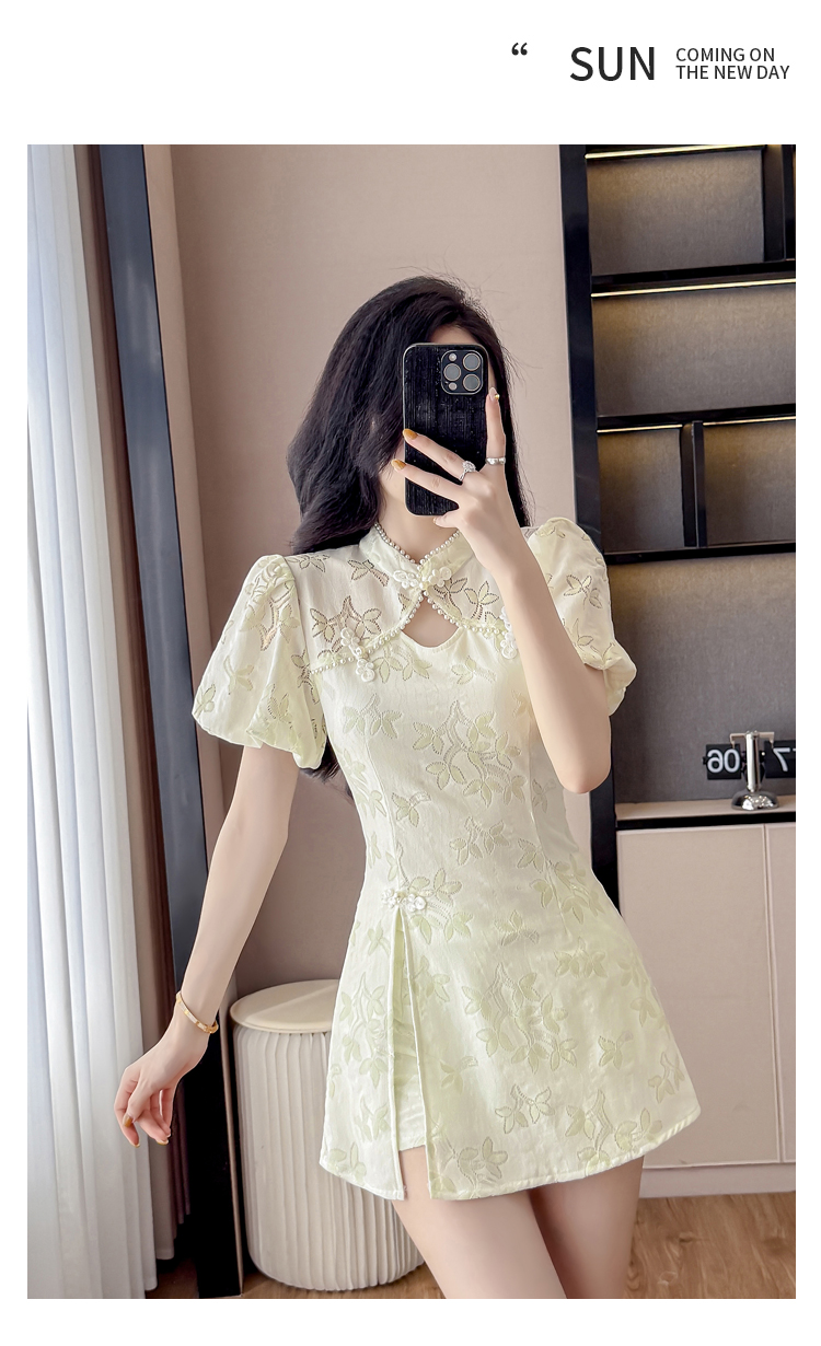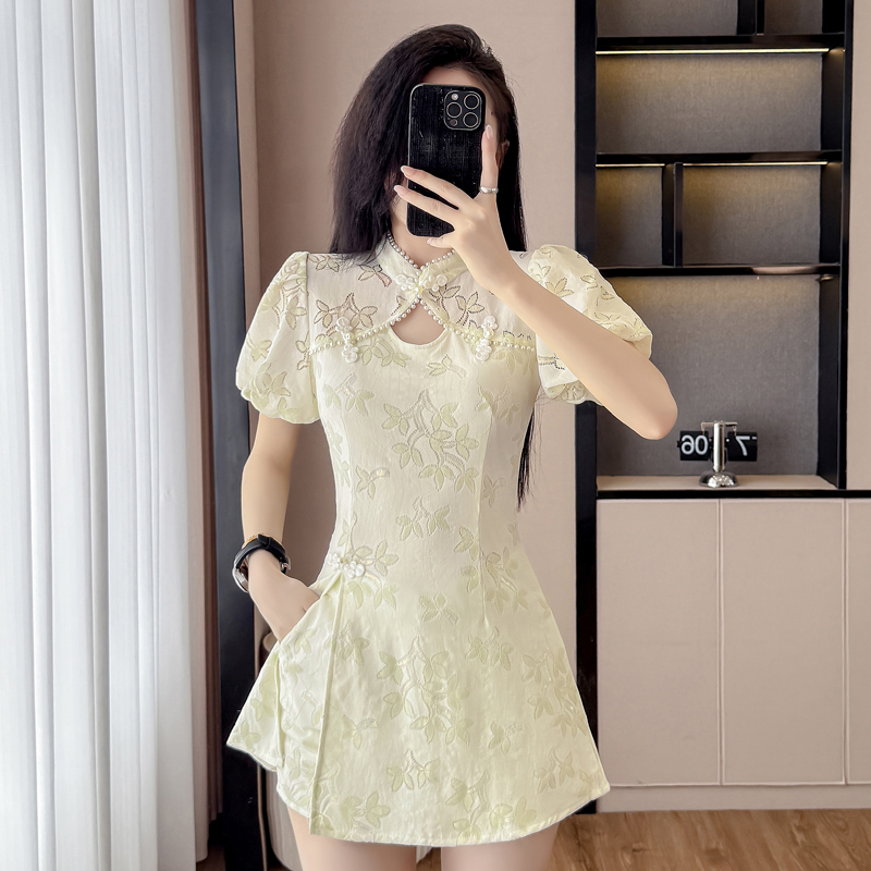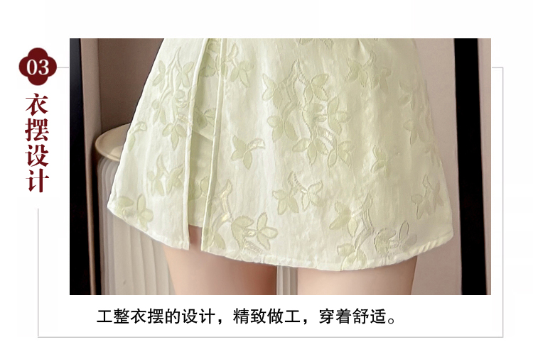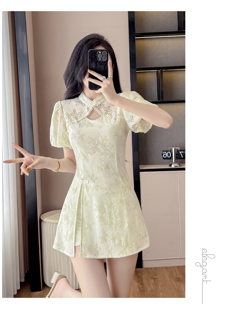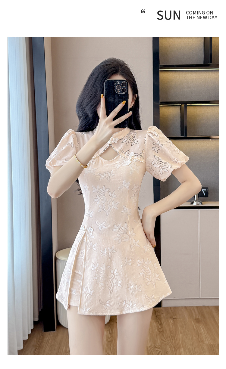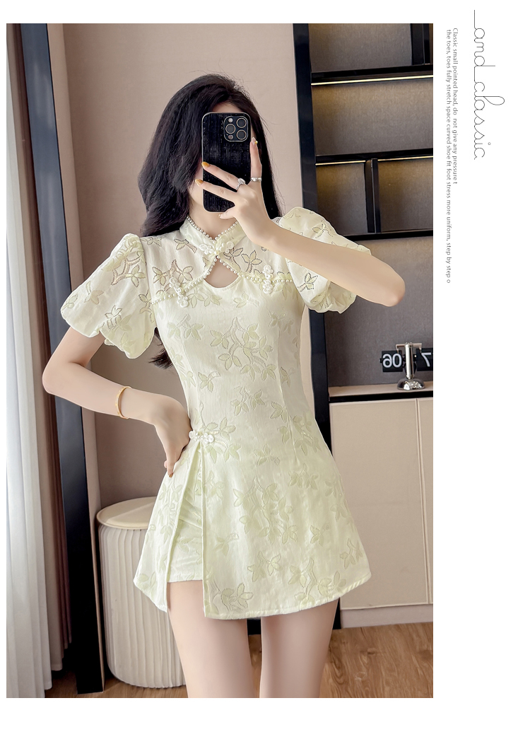 MY15485# 新中式复古改良旗袍裙盘扣蕾丝国风连衣裙短裤两件套女裝貨源服裝批發