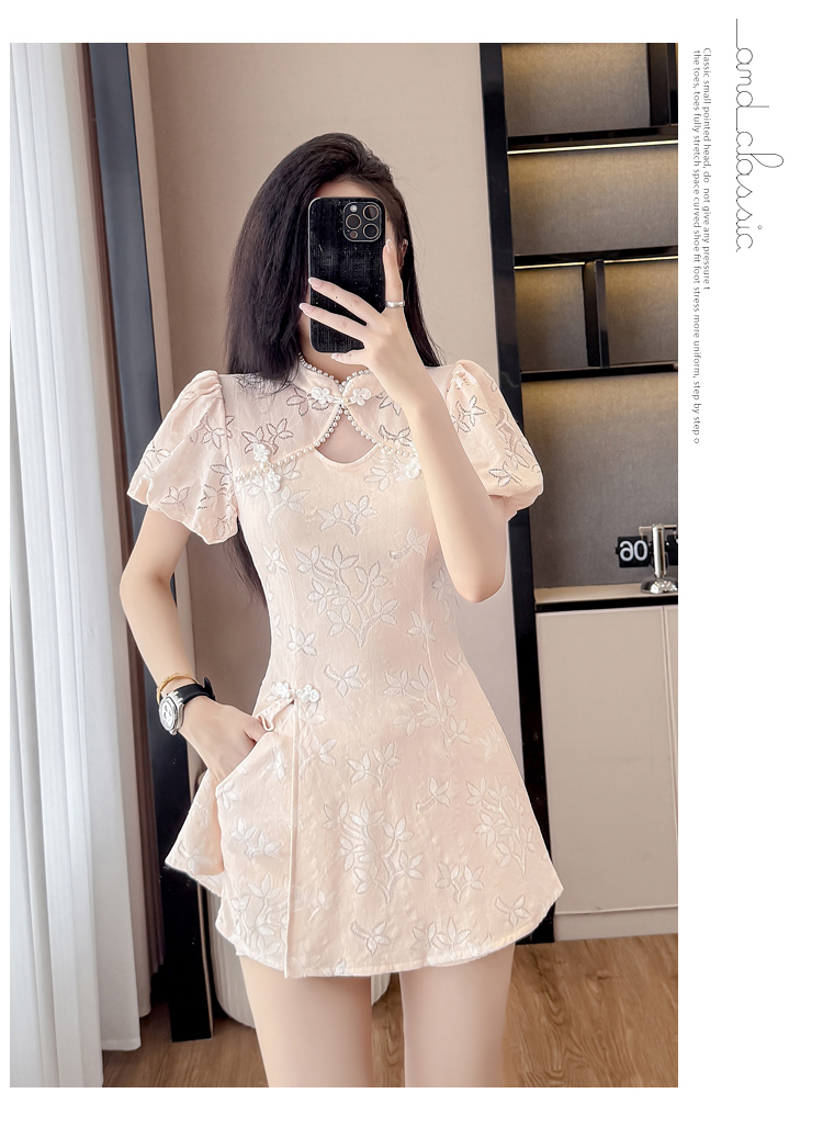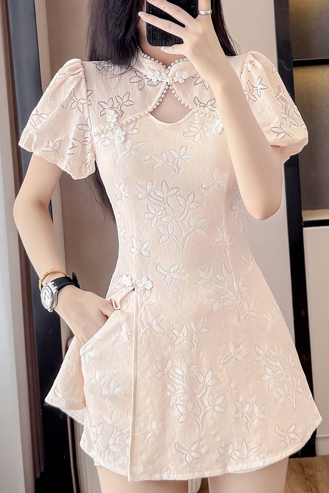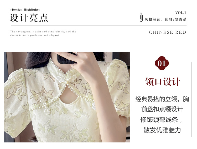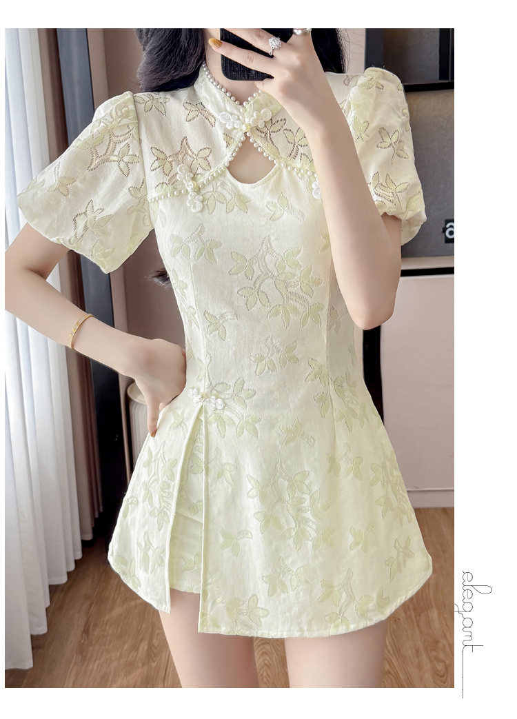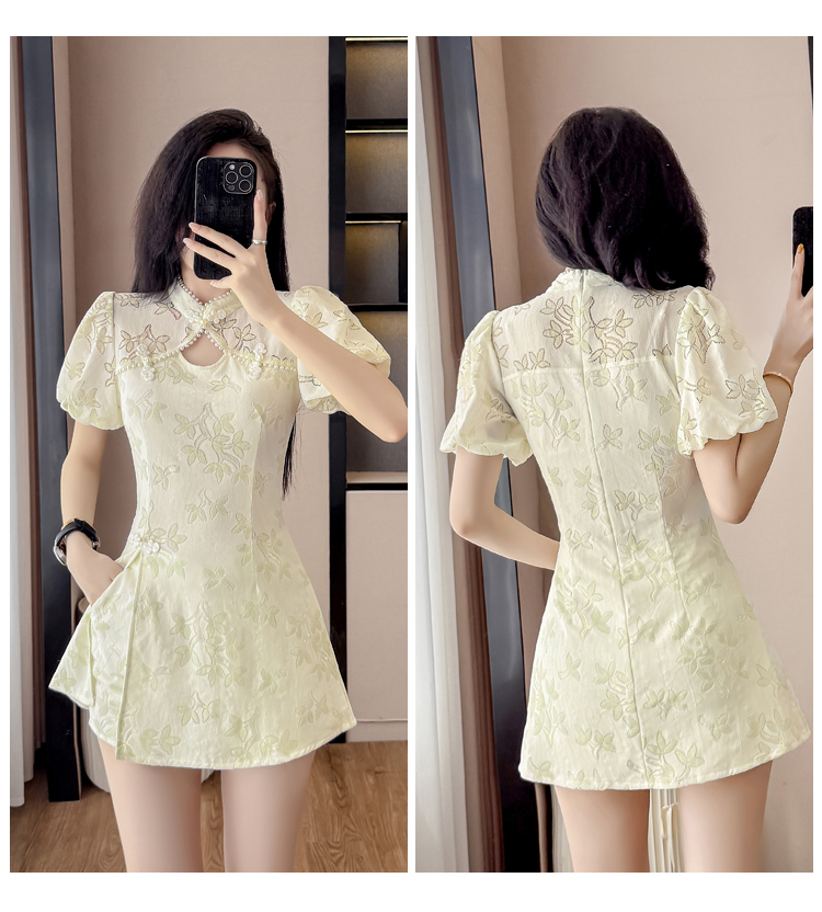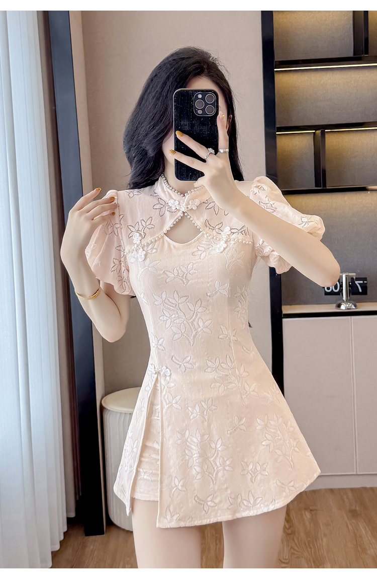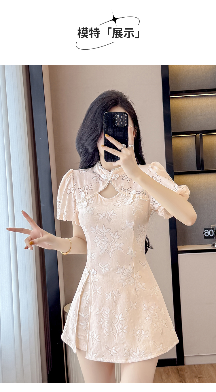 MY15485# 新中式复古改良旗袍裙盘扣蕾丝国风连衣裙短裤两件套女裝貨源服裝批發