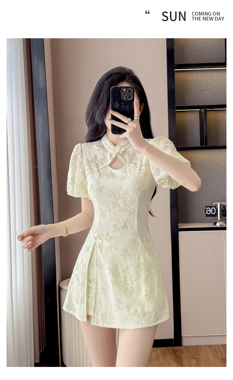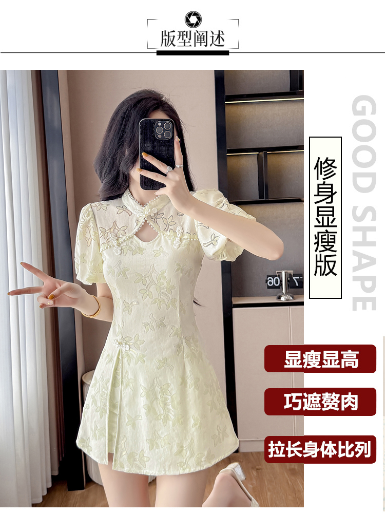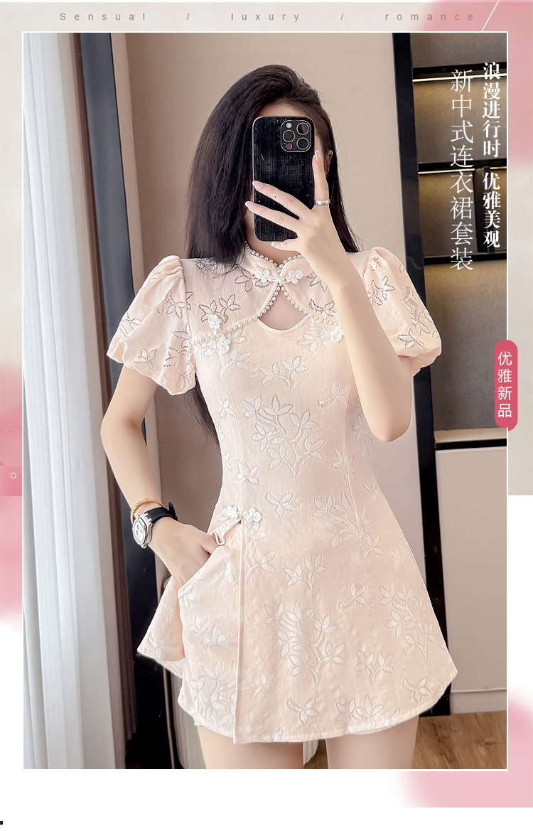 MY15481# 新款小个子高端国风新中式提花连衣裙改良旗袍套装两件套女裝...