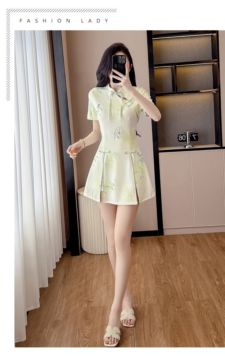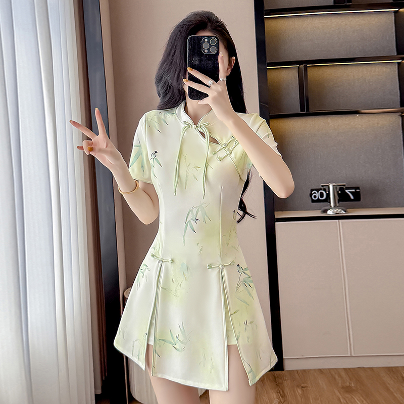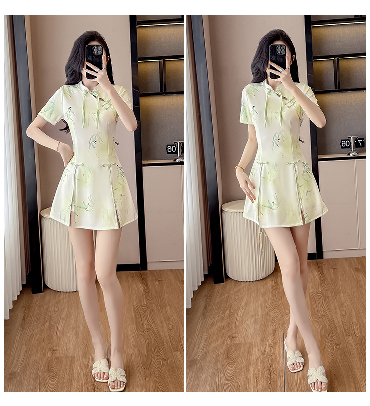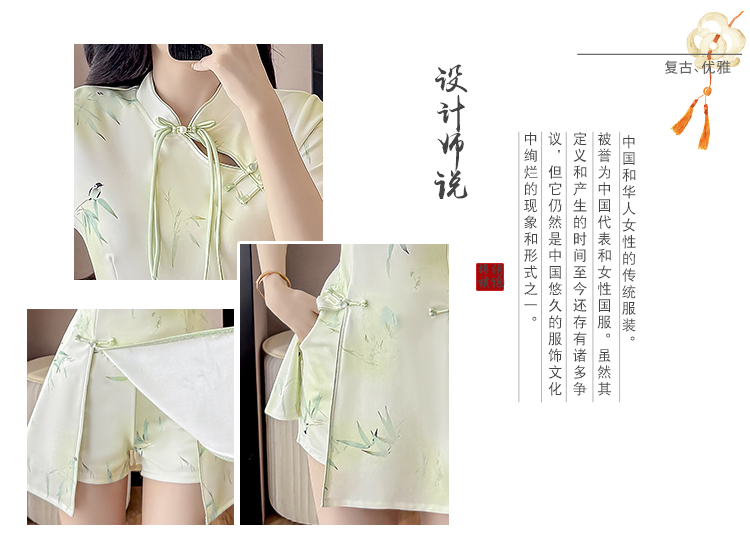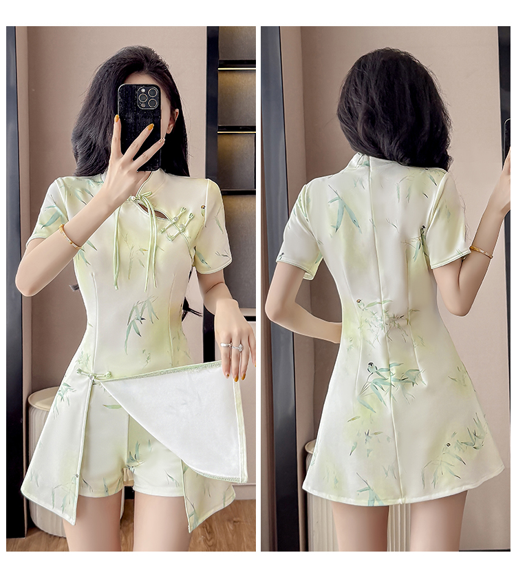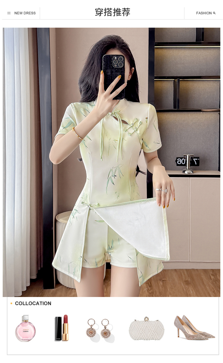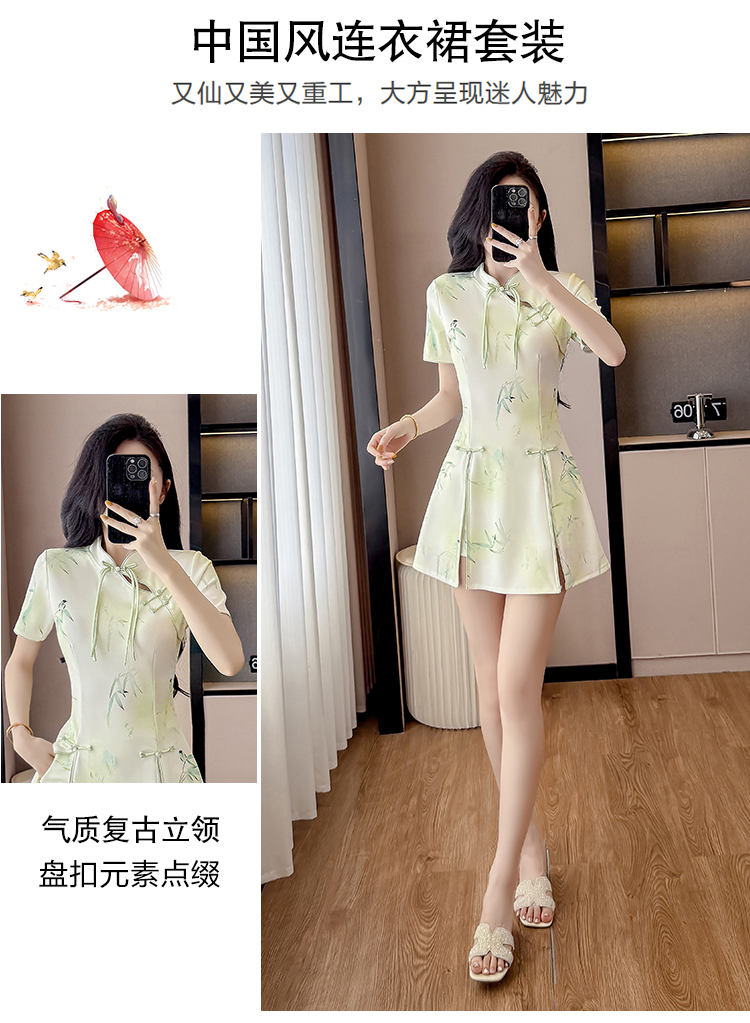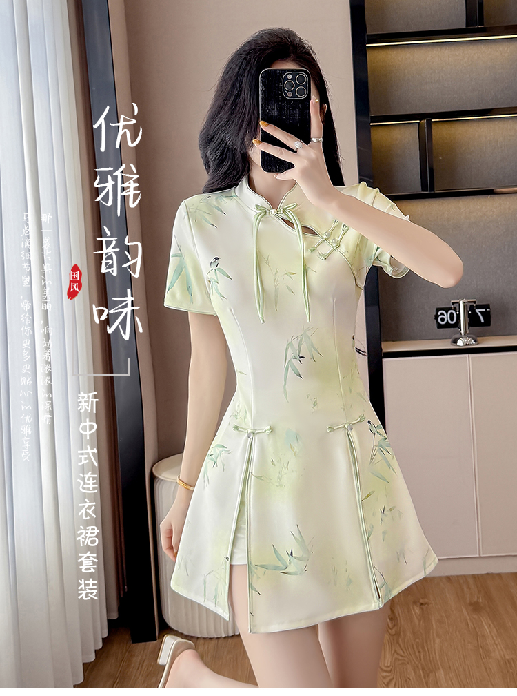 MY15486# 新款国风两件套新中式气质改良旗袍盘扣连衣裙短裤套装裙女裝貨源服裝批發