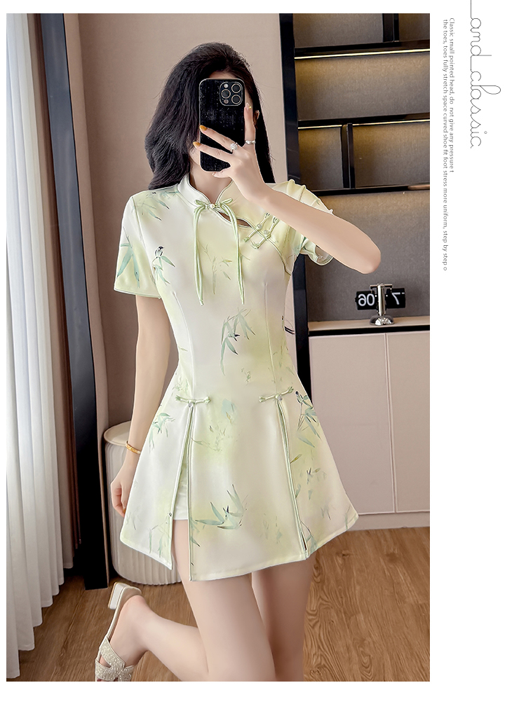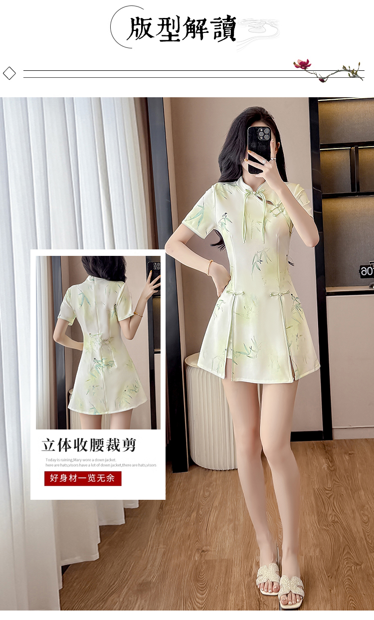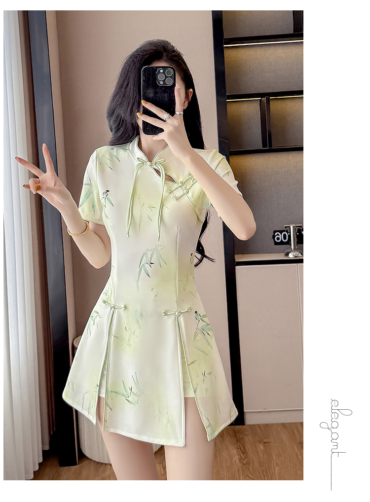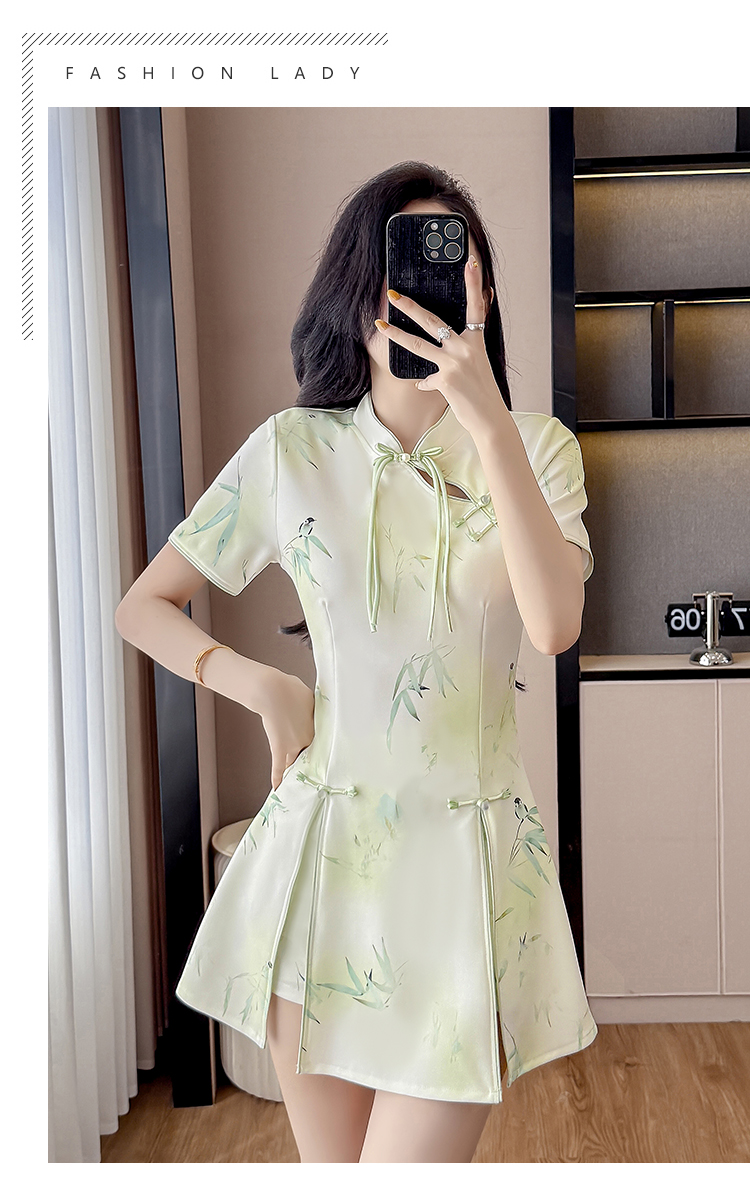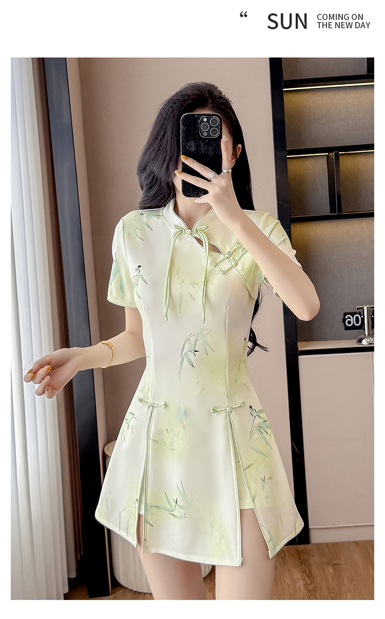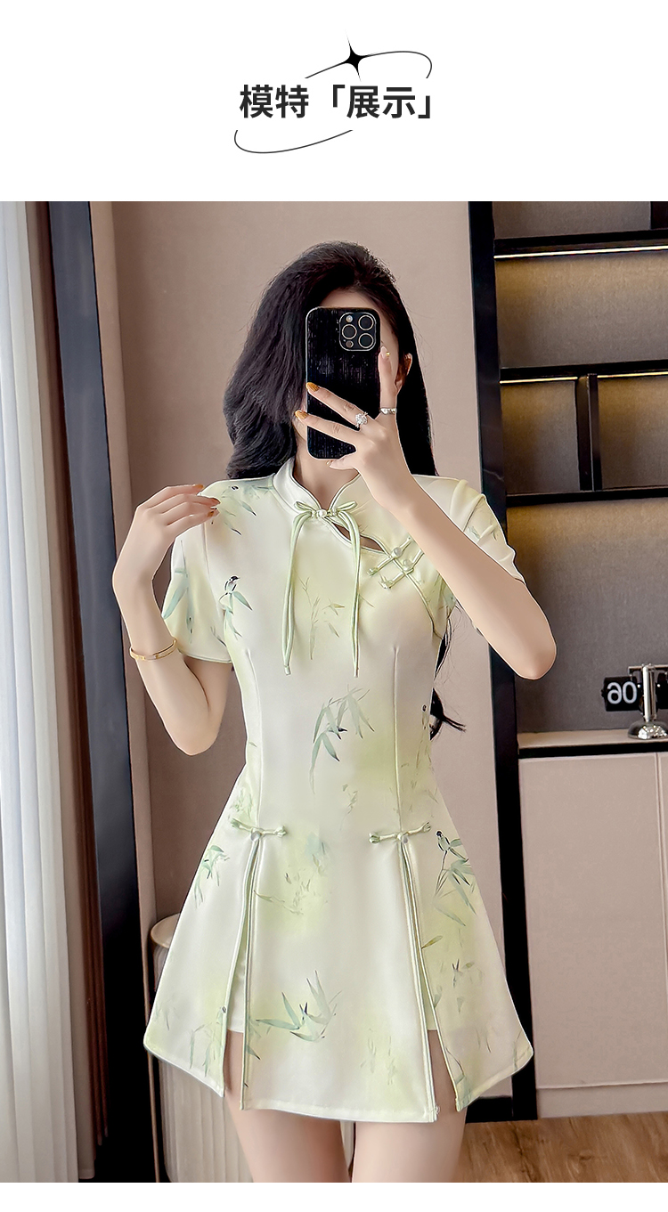 MY15486# 新款国风两件套新中式气质改良旗袍盘扣连衣裙短裤套装裙女裝貨源服裝批發