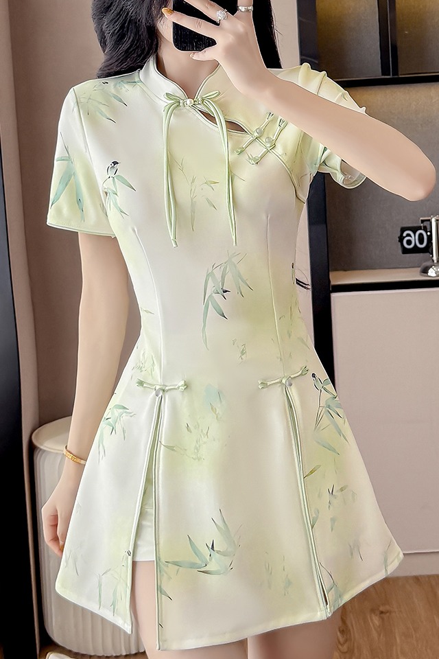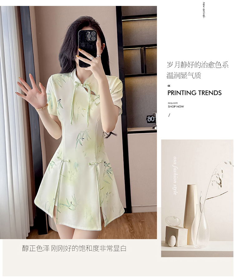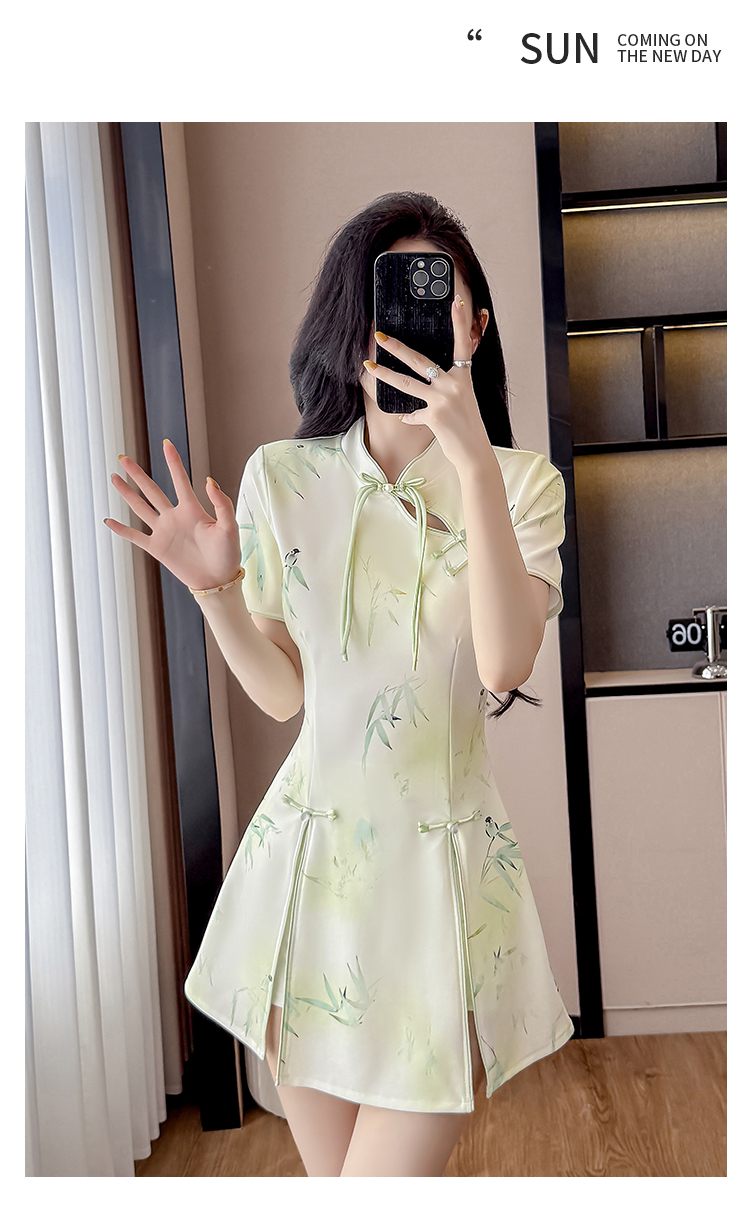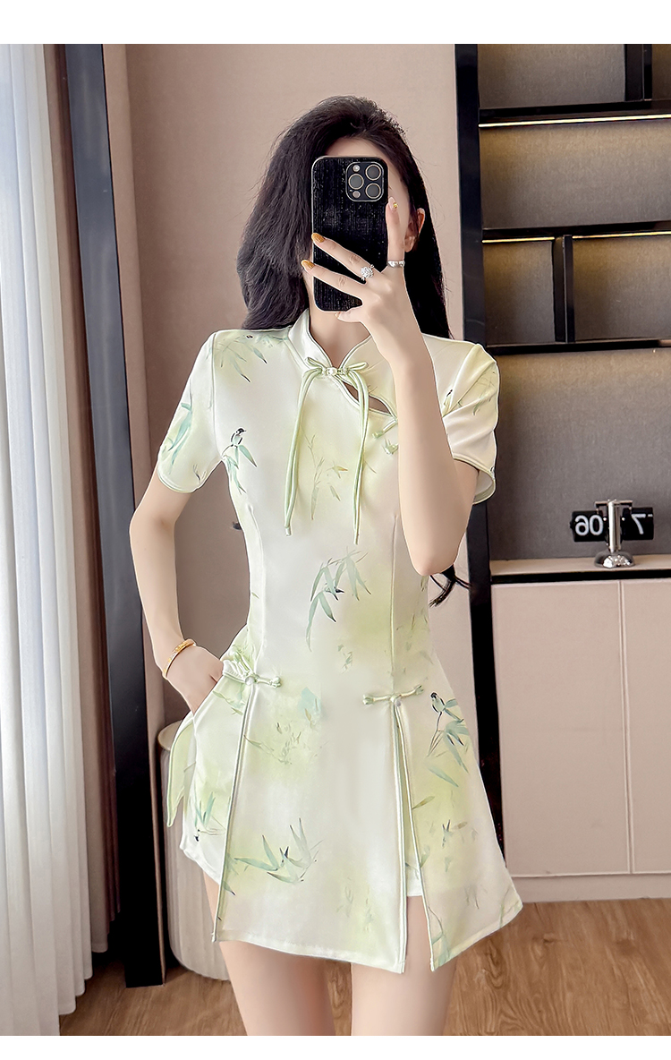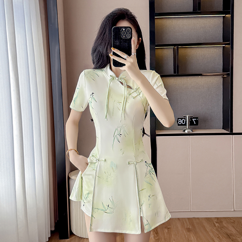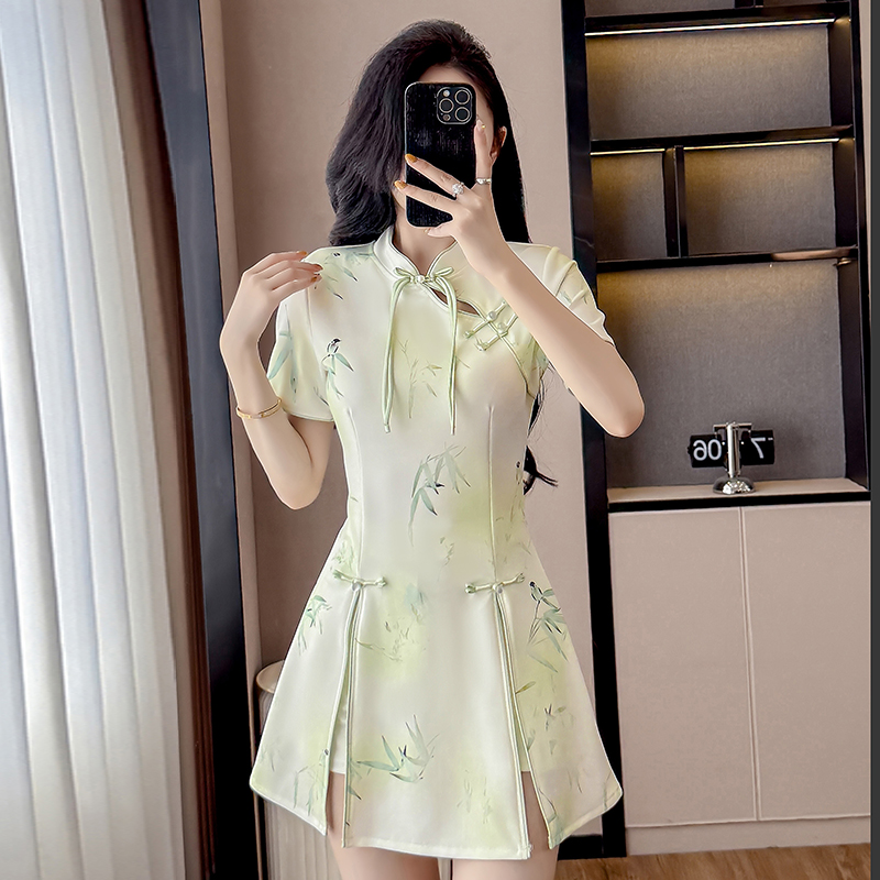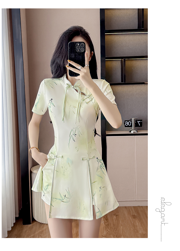 MY15486# 新款国风两件套新中式气质改良旗袍盘扣连衣裙短裤套装裙女裝貨源服裝批發