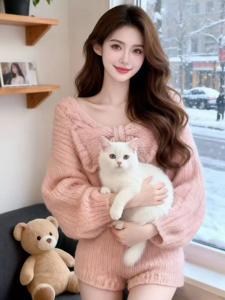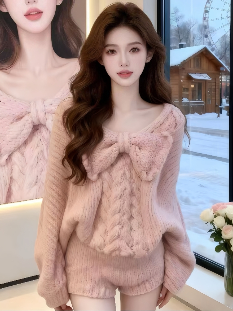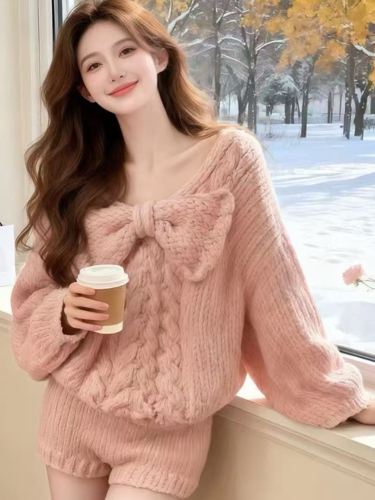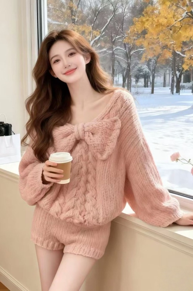 MY15490# 韩系一整套ootd穿搭新款温柔风巨好看麻花针织毛衣短裤两件套女裝貨源服裝批發