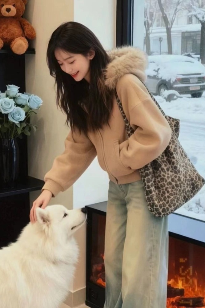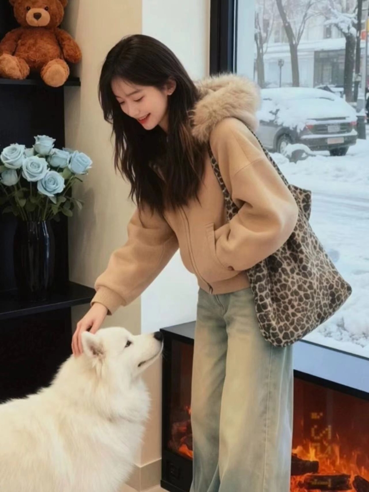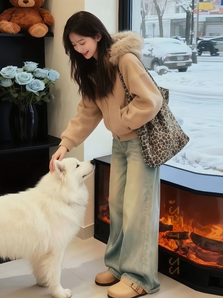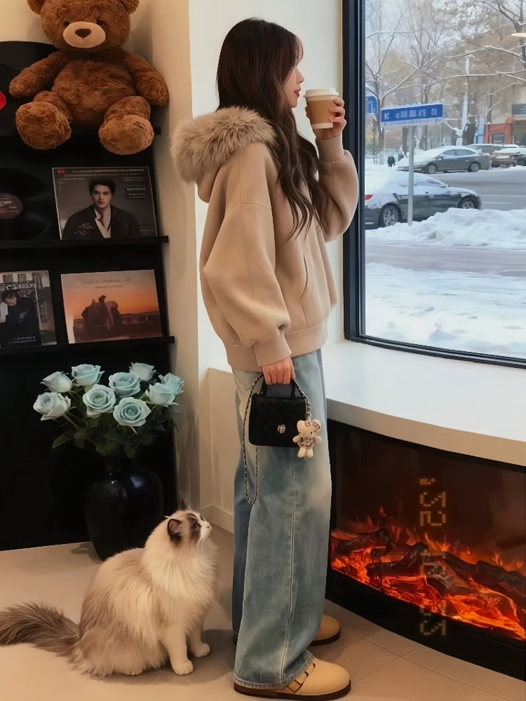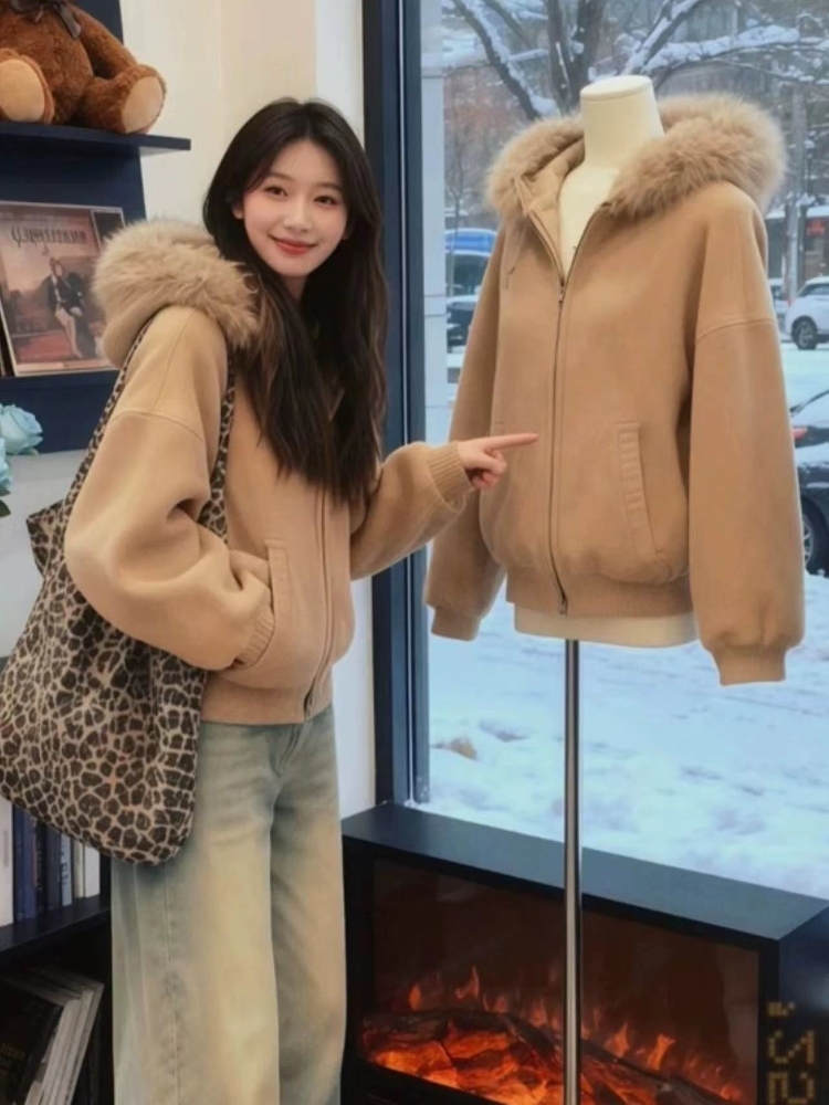 MY15492# 独特漂亮两件套慵懒风高级感巨好看卡其色毛领针织外套牛仔裤套装女裝貨源服裝批發