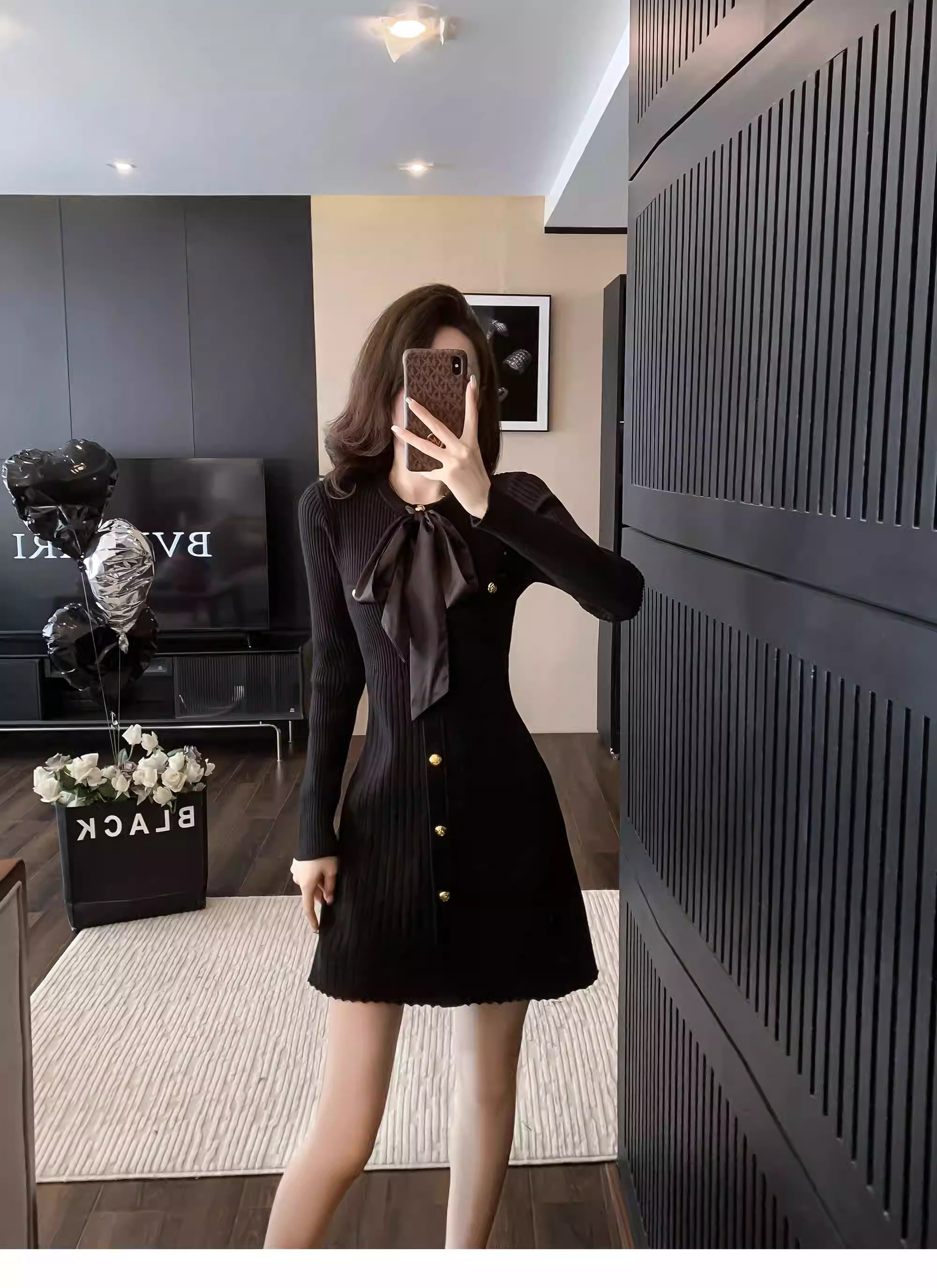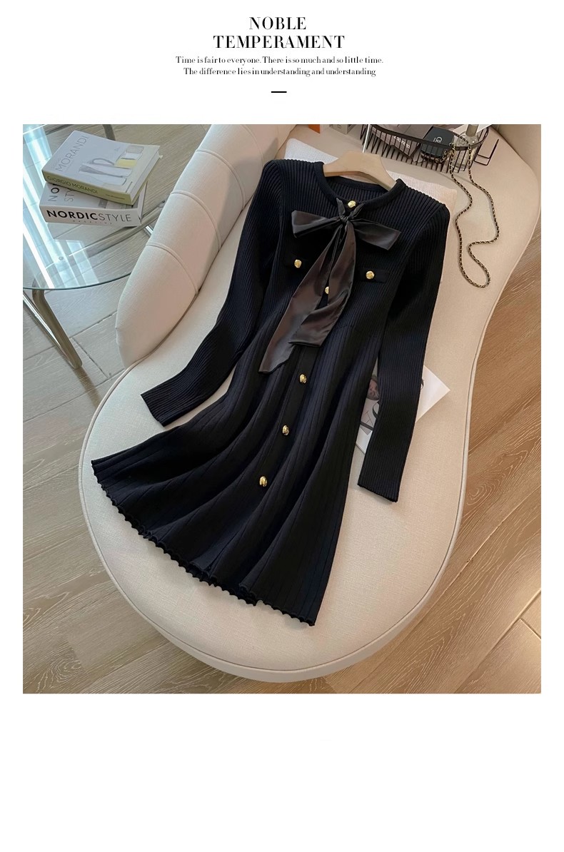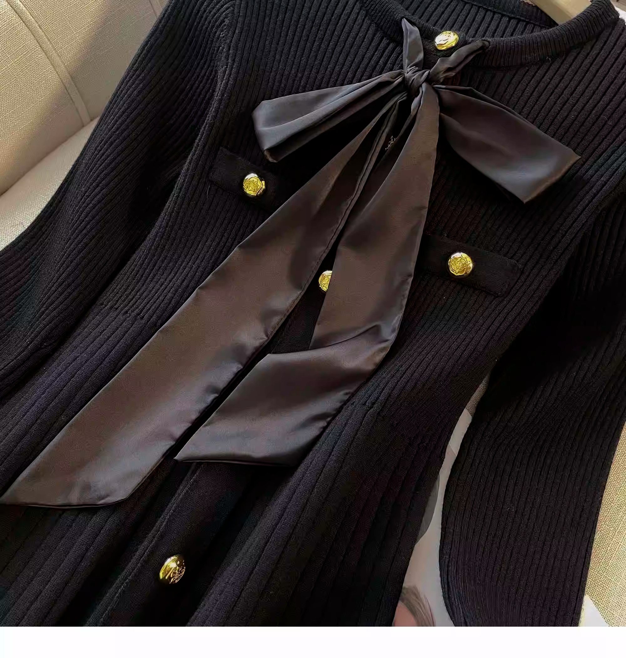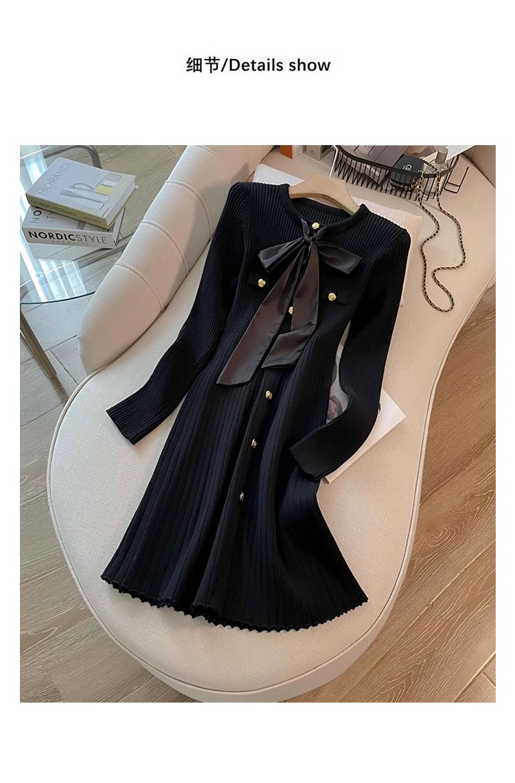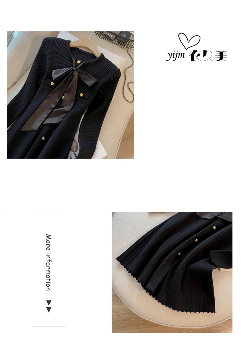 MY15946# 新款小香风甜美气质系带针织连衣裙收腰A字裙毛衣外穿打底裙女裝貨源服裝批發
