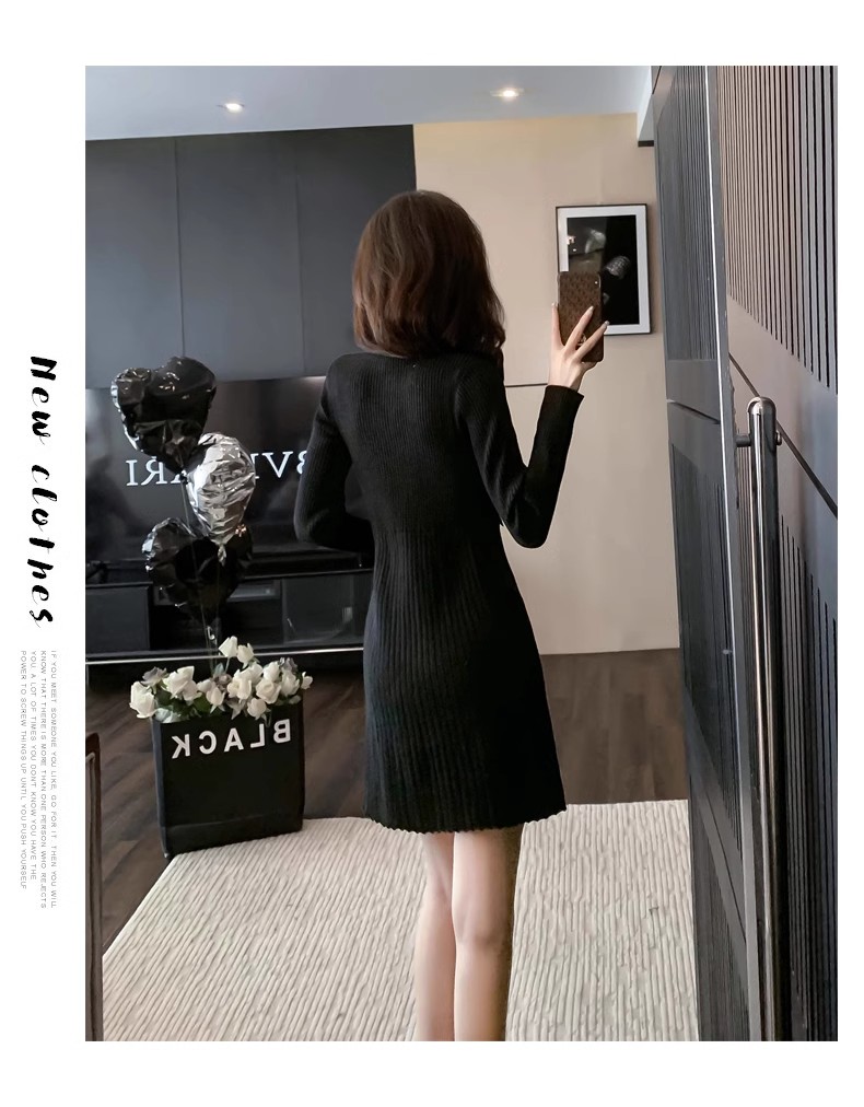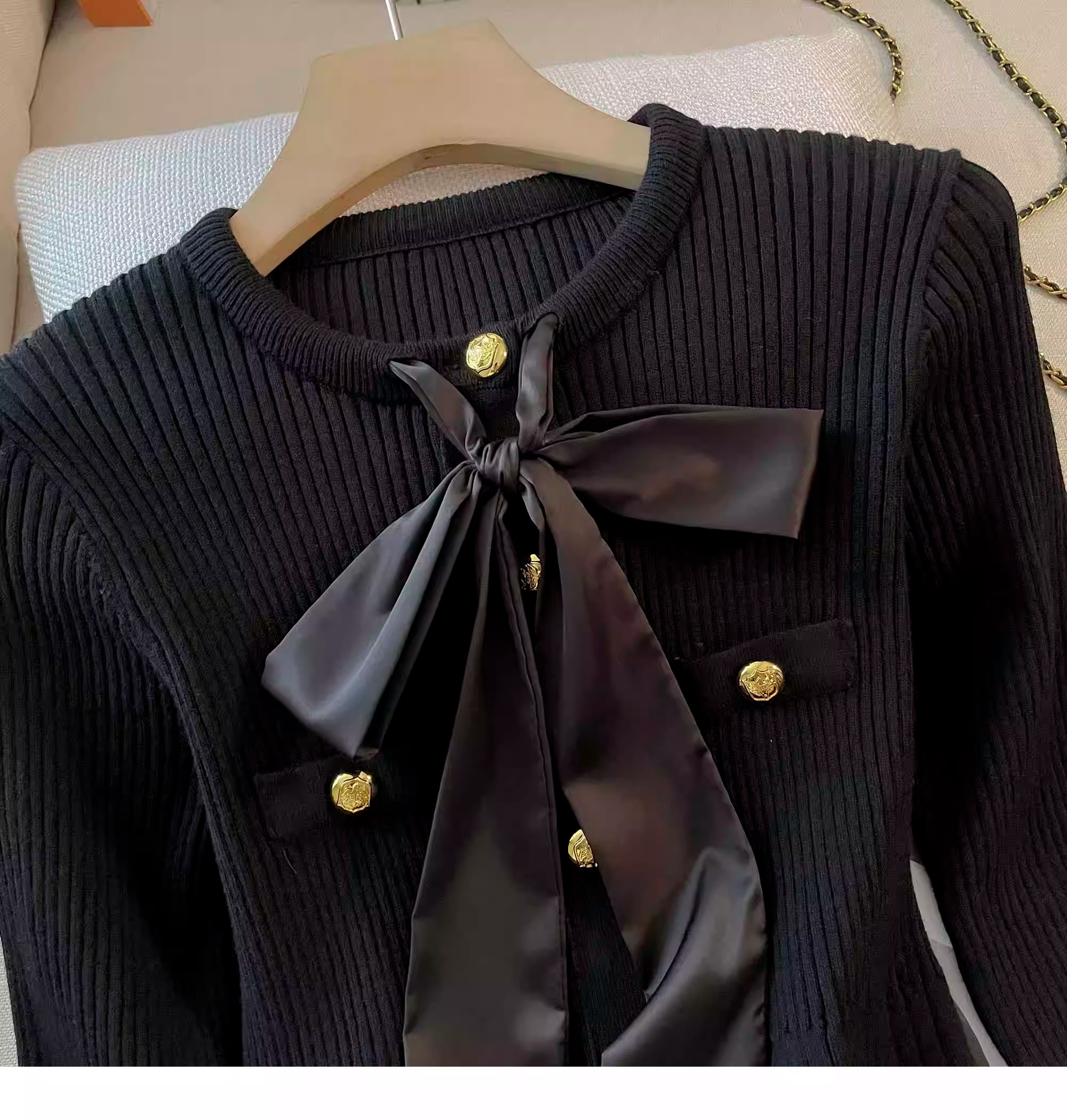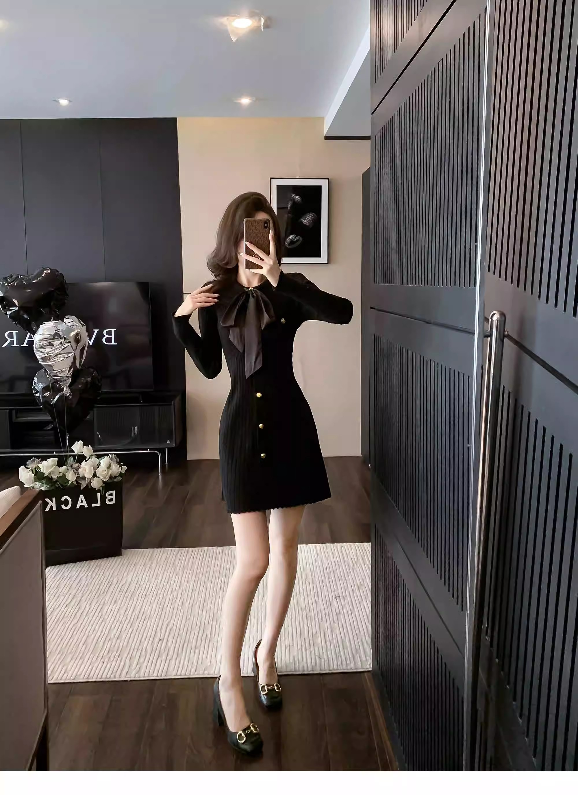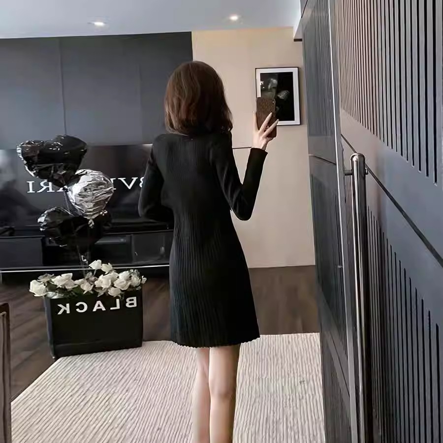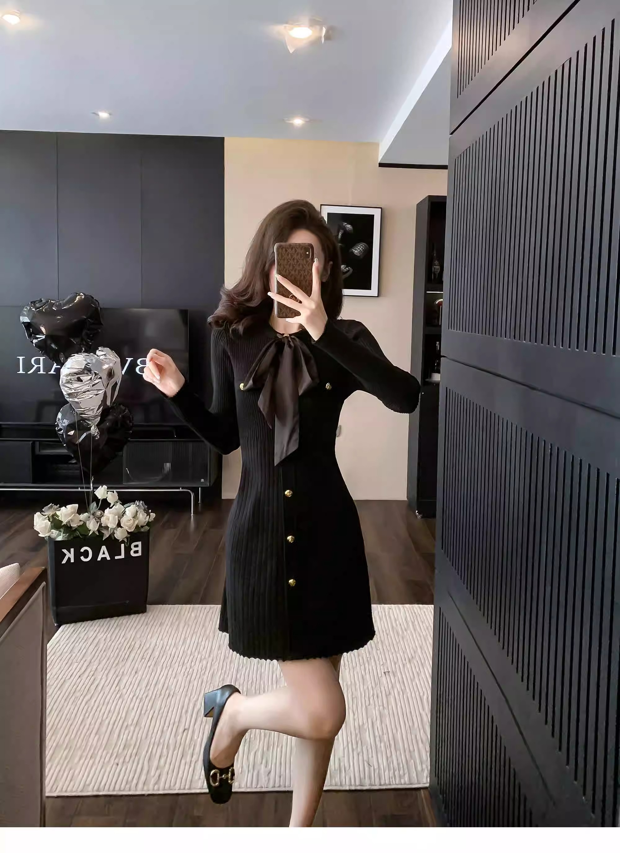 MY15946# 新款小香风甜美气质系带针织连衣裙收腰A字裙毛衣外穿打底裙女裝貨源服裝批發