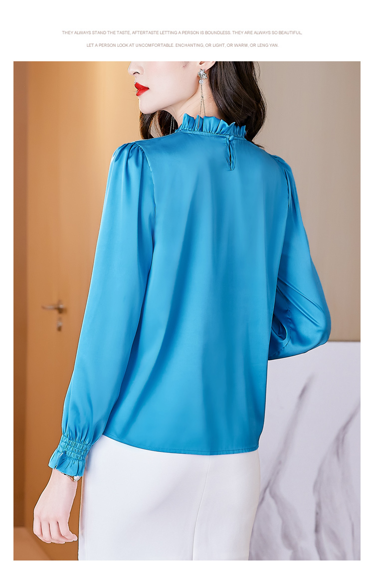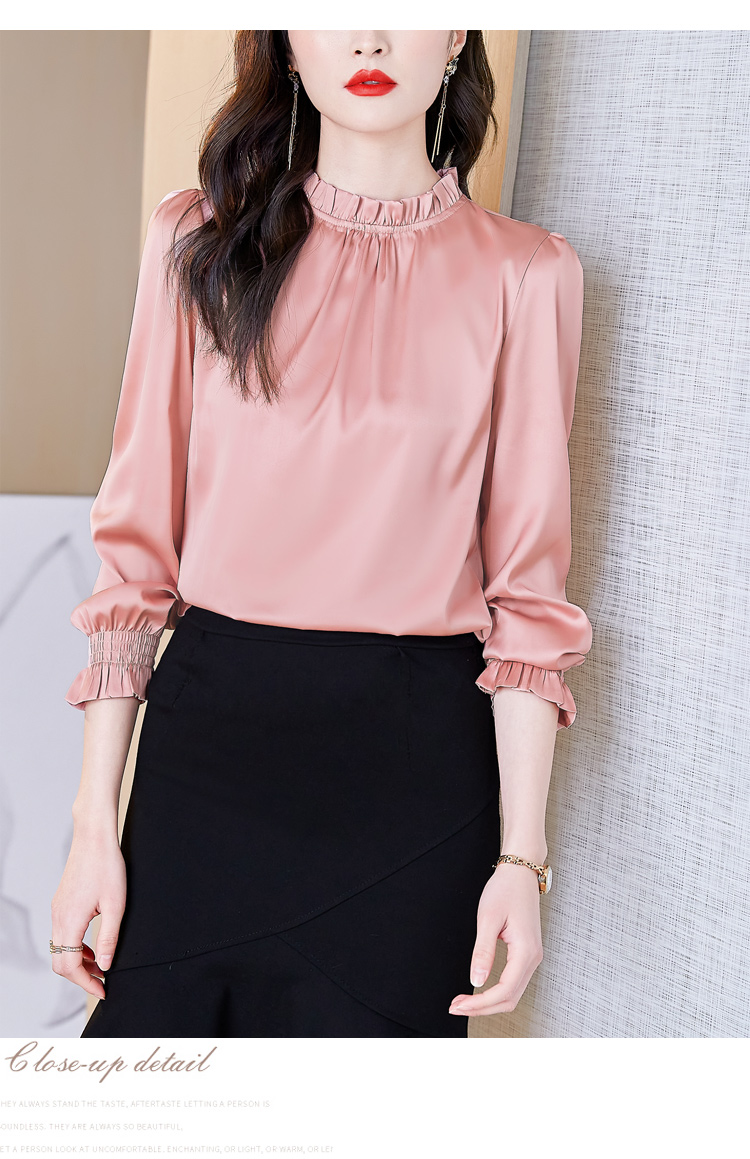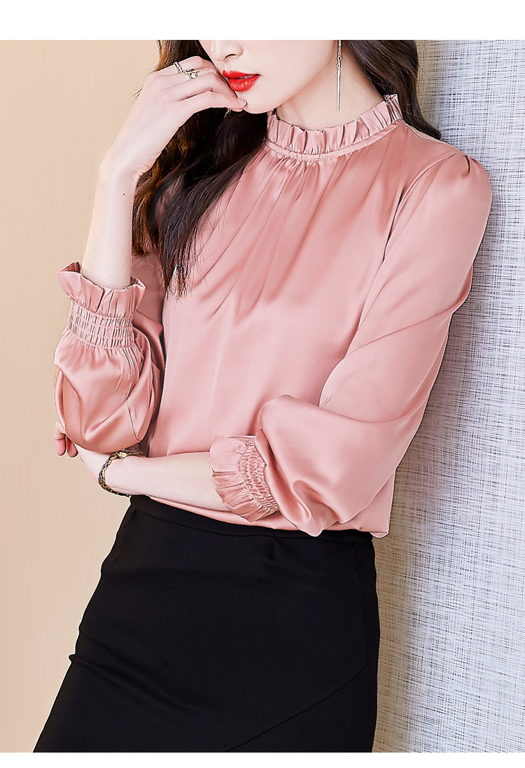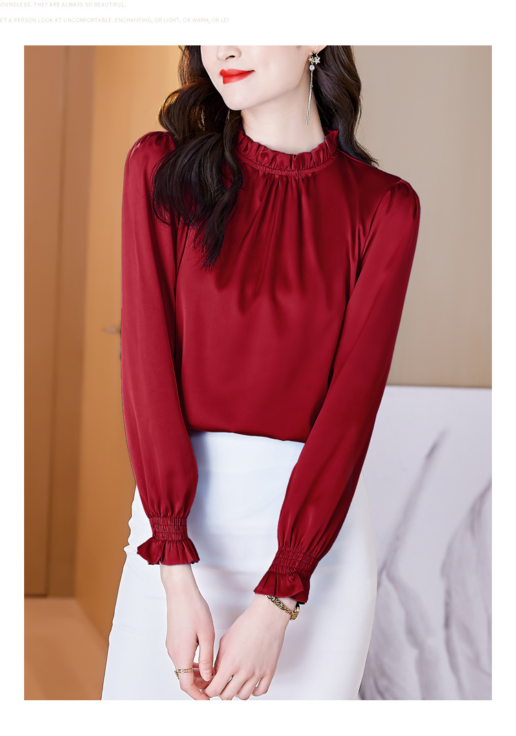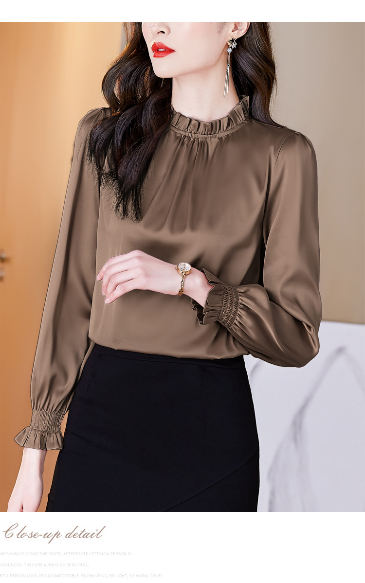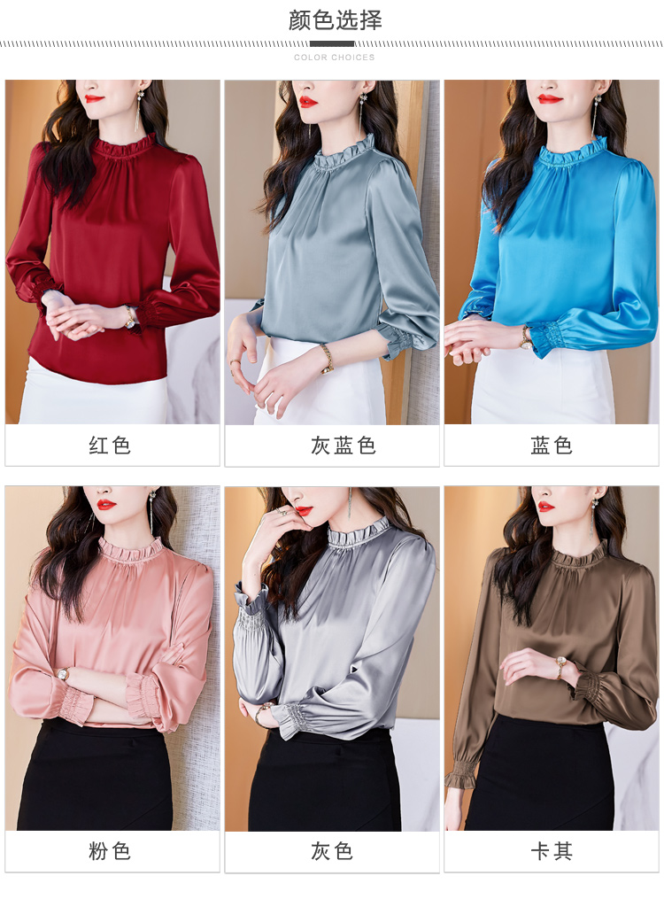 MY15957# 木耳边小衫洋气泡泡袖缎面桑蚕丝高端衬衣女气质真丝上衣女裝貨源服裝批發