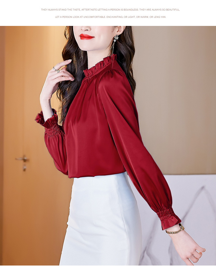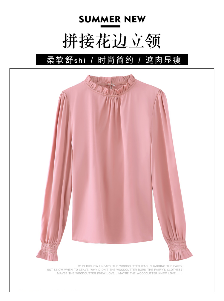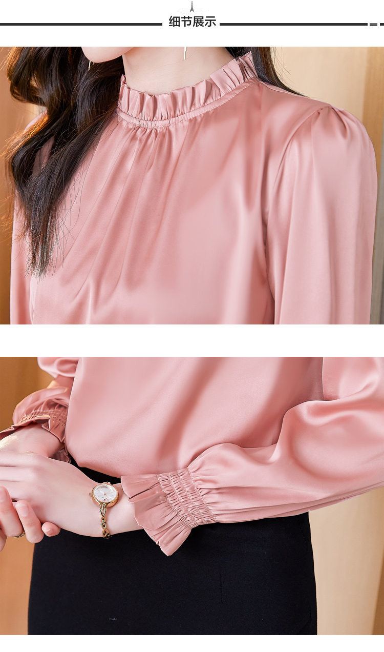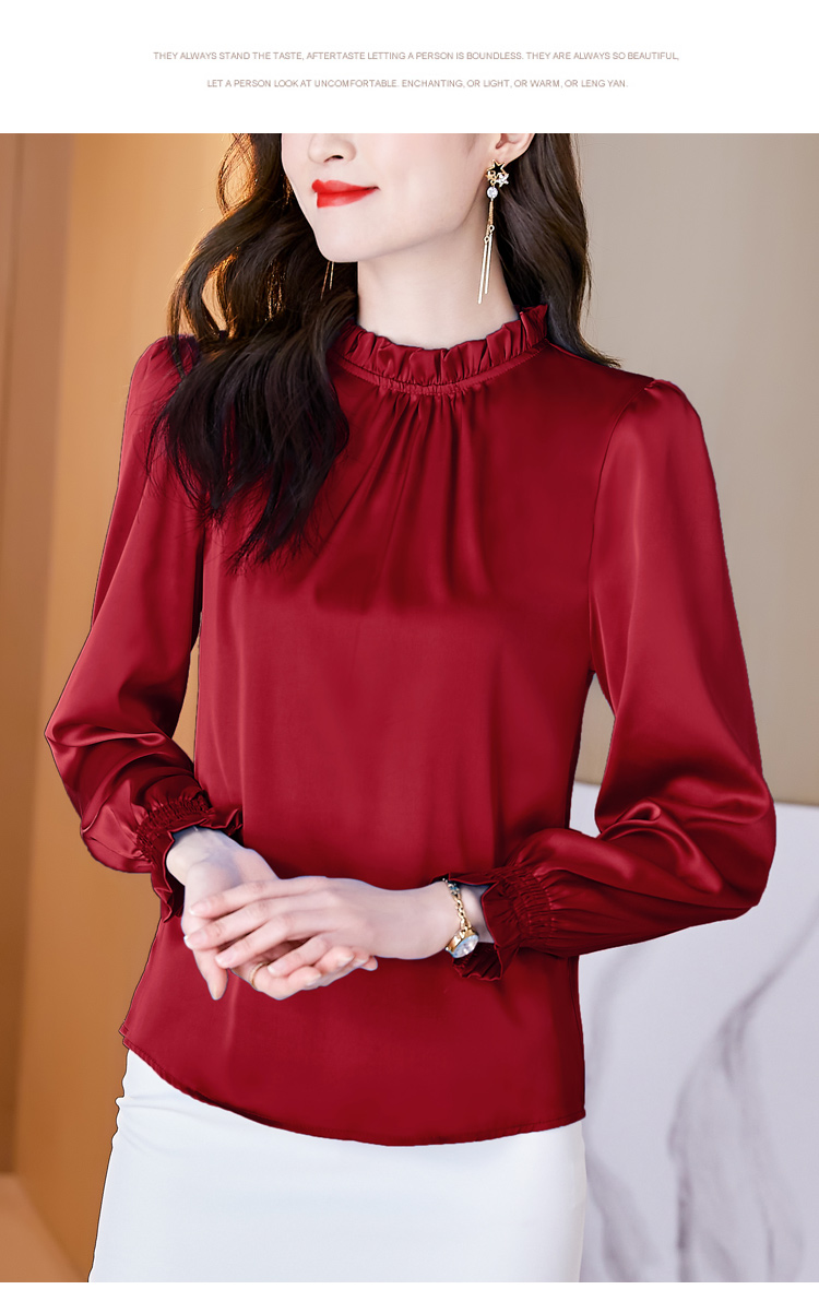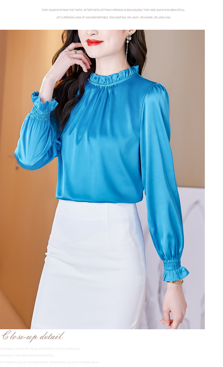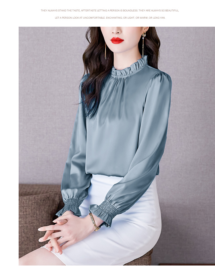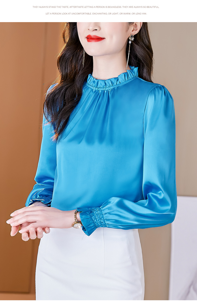 MY15957# 木耳边小衫洋气泡泡袖缎面桑蚕丝高端衬衣女气质真丝上衣女裝貨源服裝批發