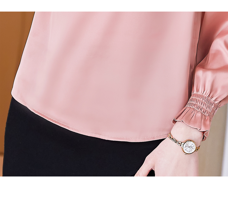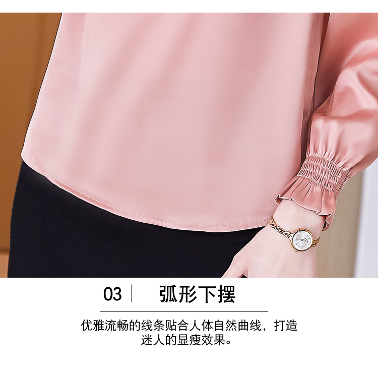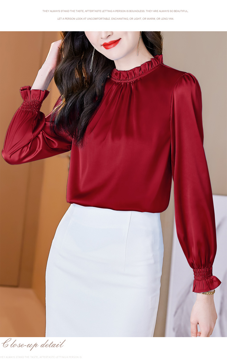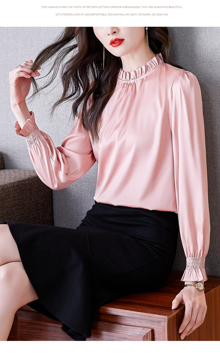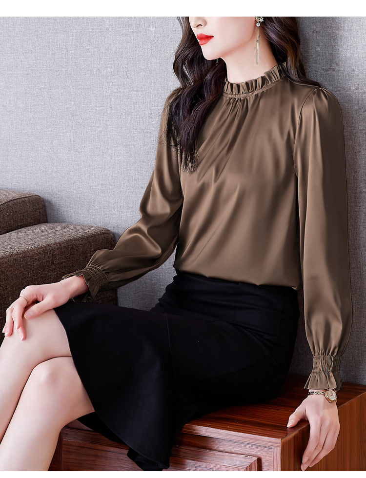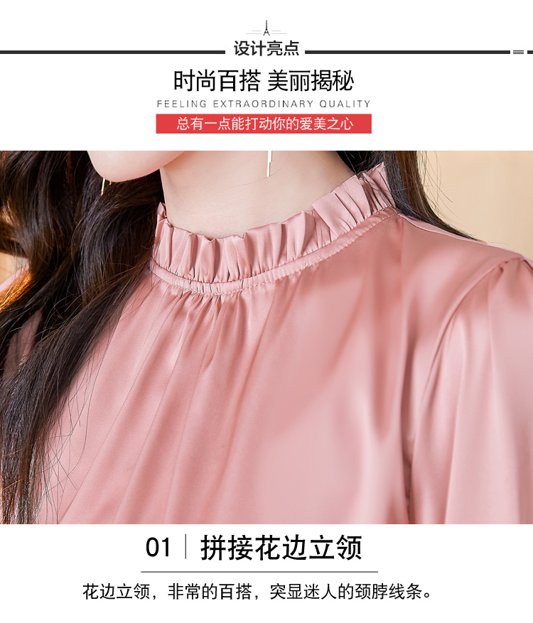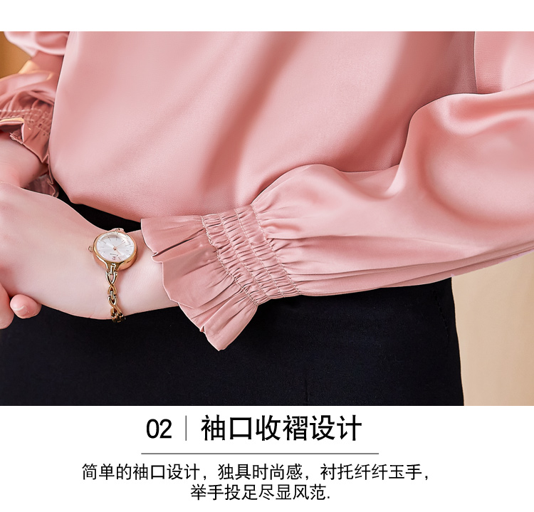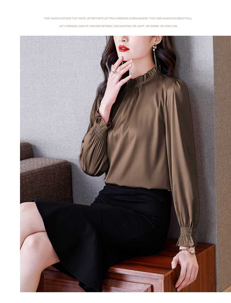 MY15957# 木耳边小衫洋气泡泡袖缎面桑蚕丝高端衬衣女气质真丝上衣女裝貨源服裝批發