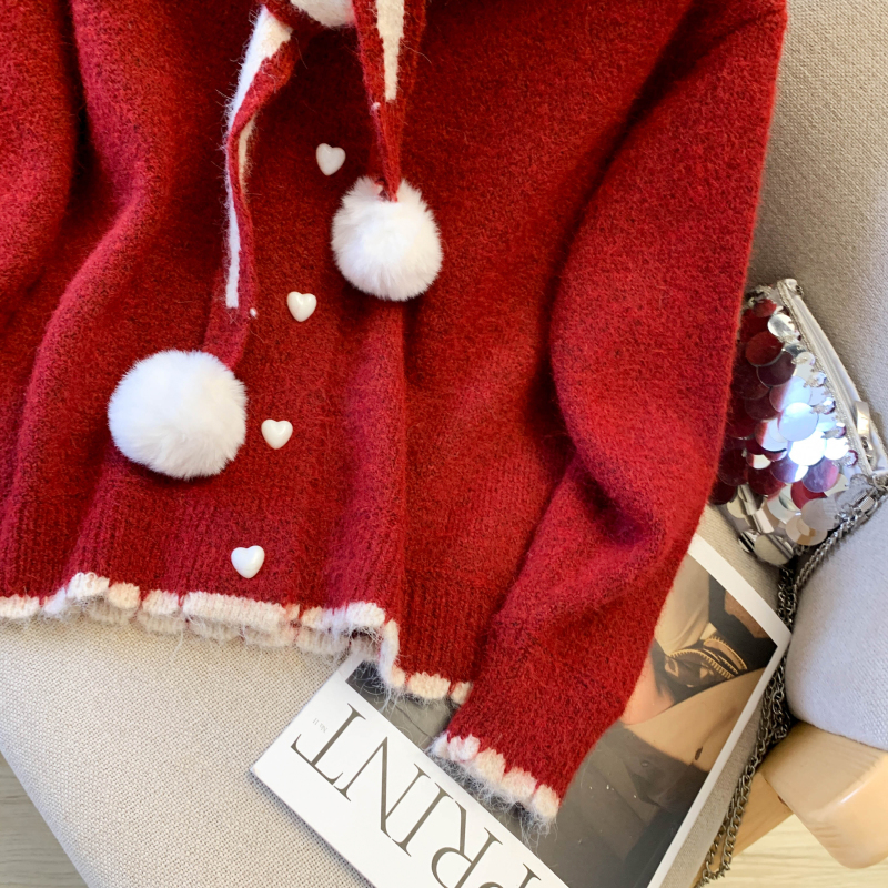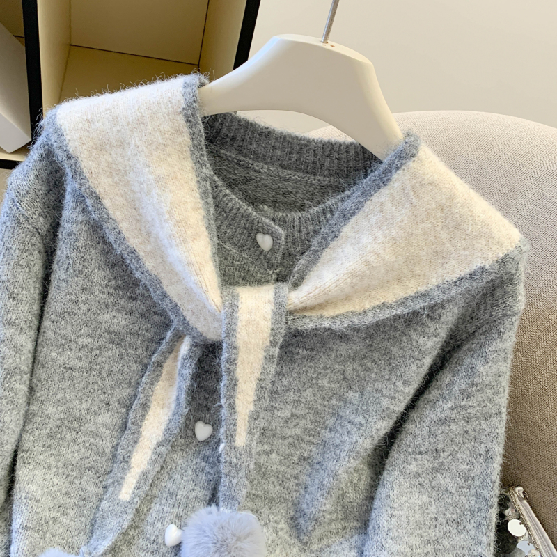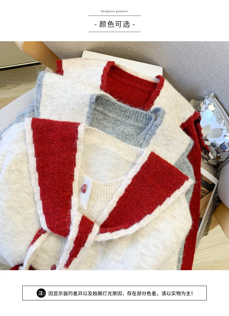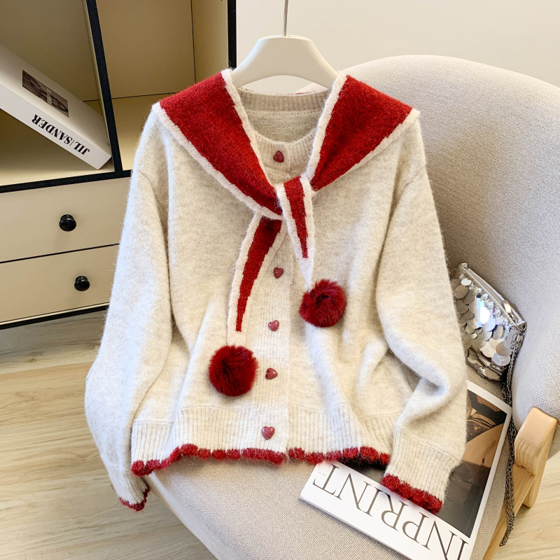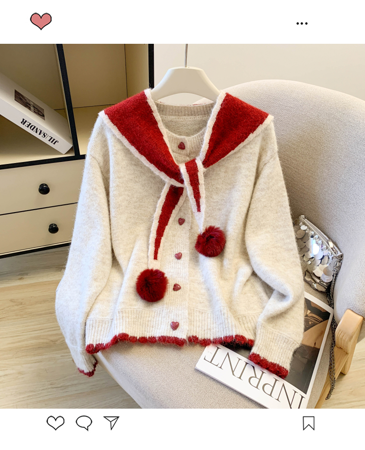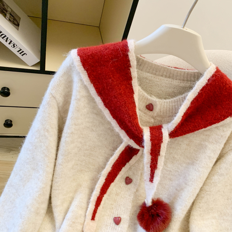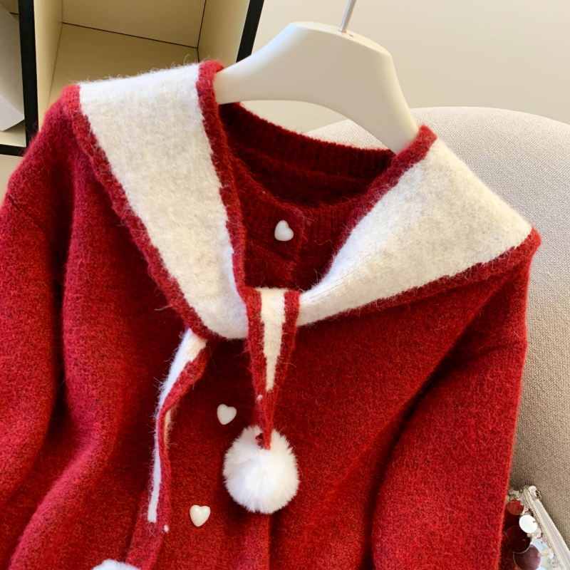 MY15958# 过年红洋气海军领毛球球两件套时尚百搭开衫针织衫上衣毛衣女裝貨源服裝批發