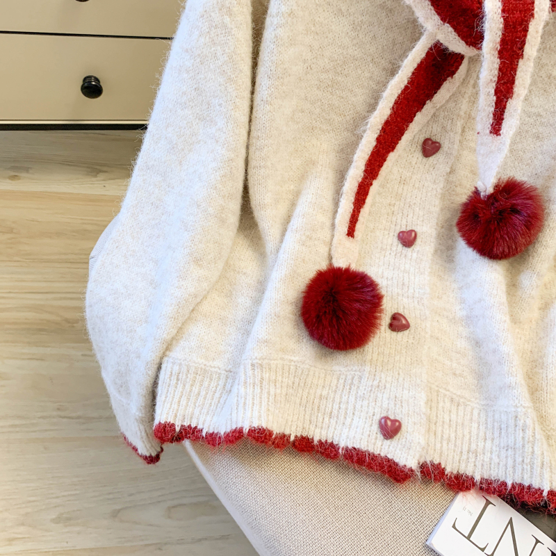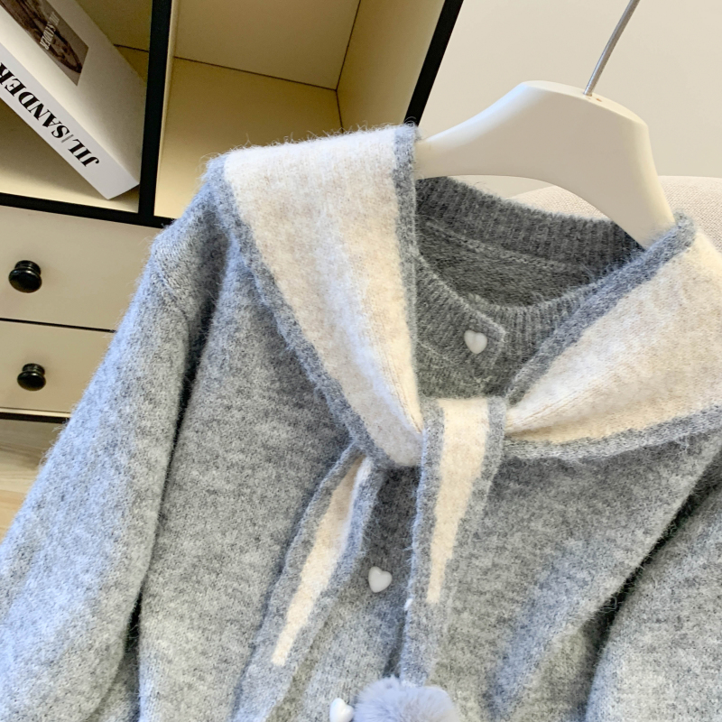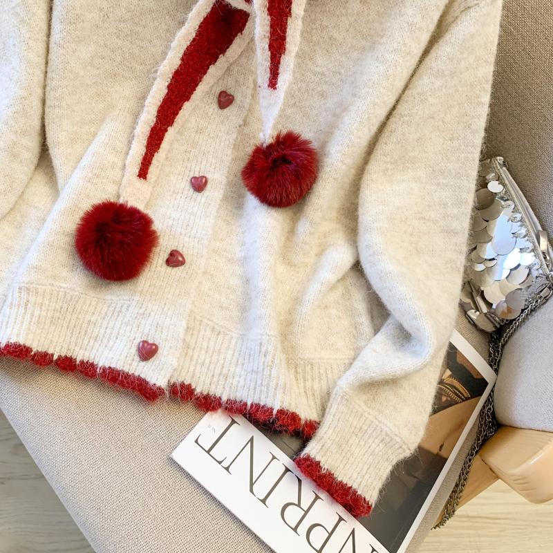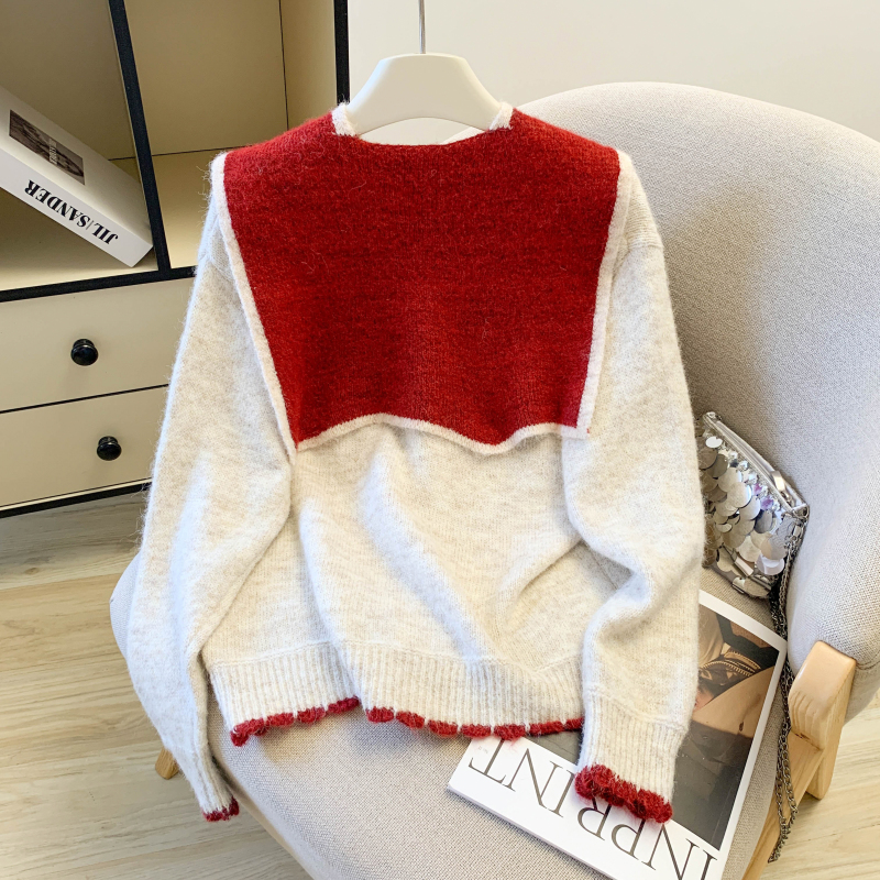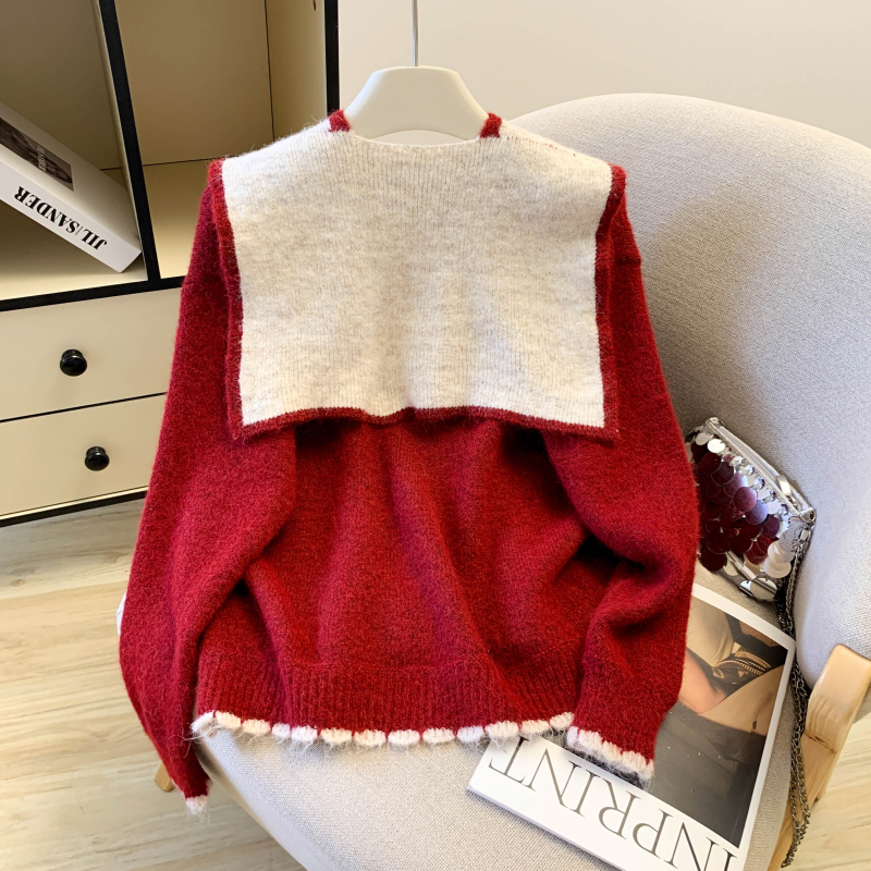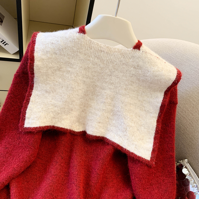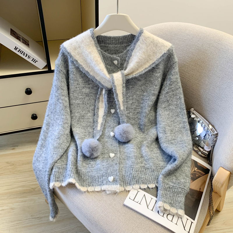 MY15958# 过年红洋气海军领毛球球两件套时尚百搭开衫针织衫上衣毛衣女裝貨源服裝批發