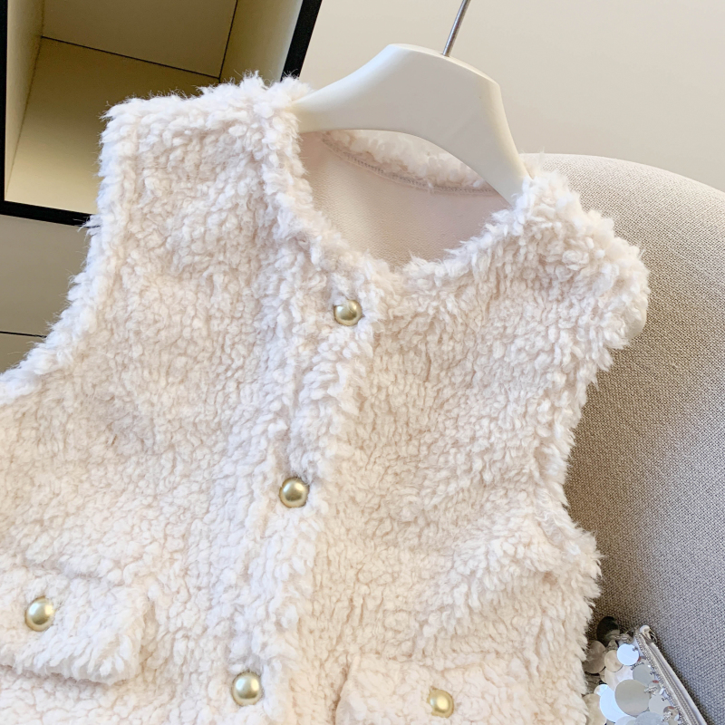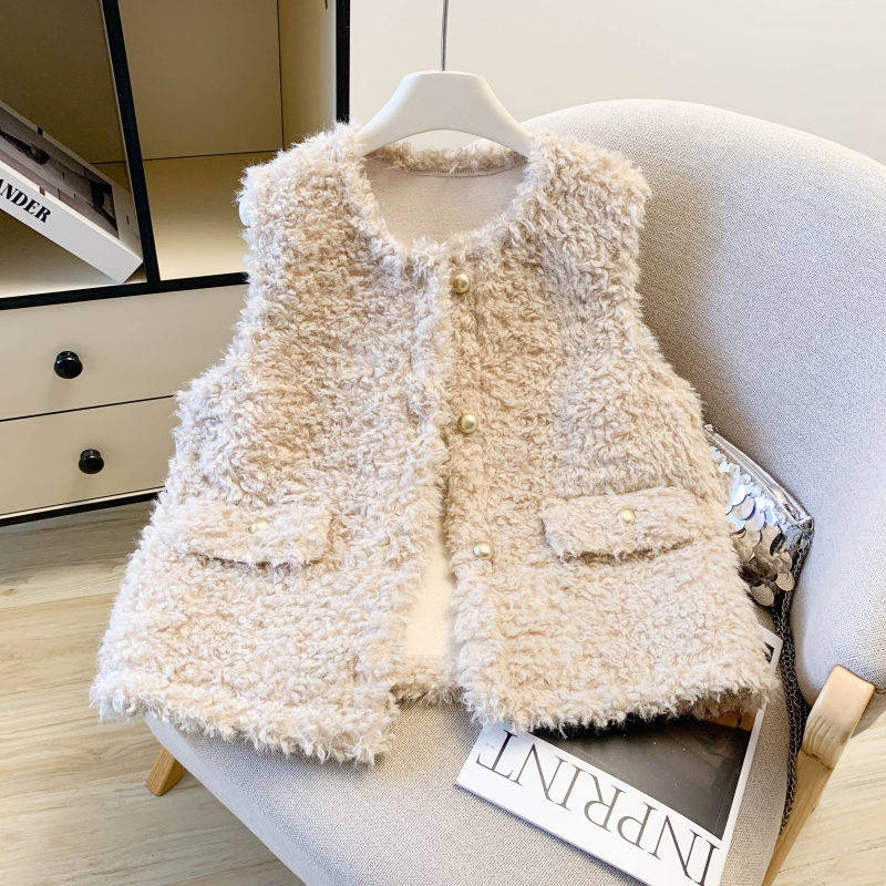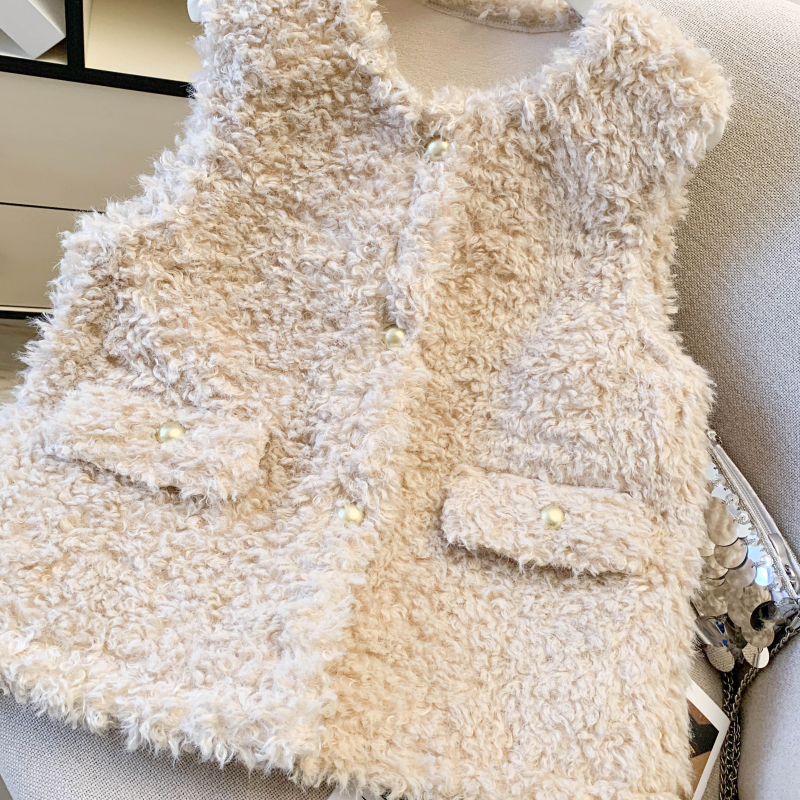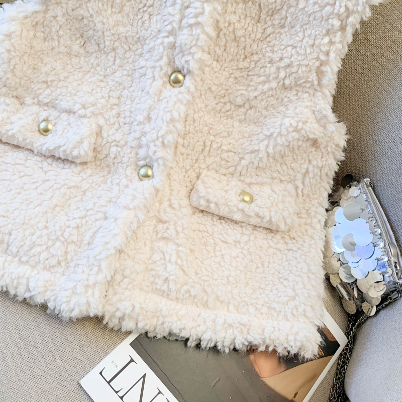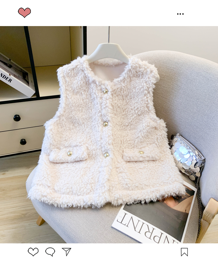 MY15959# 洋气时尚百搭单排扣简约羊羔毛加厚马甲女棉衣上衣外搭女裝貨源服裝批發