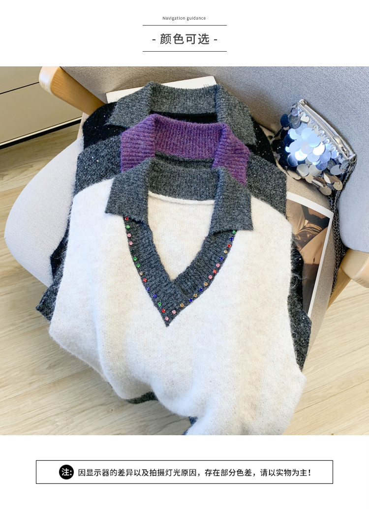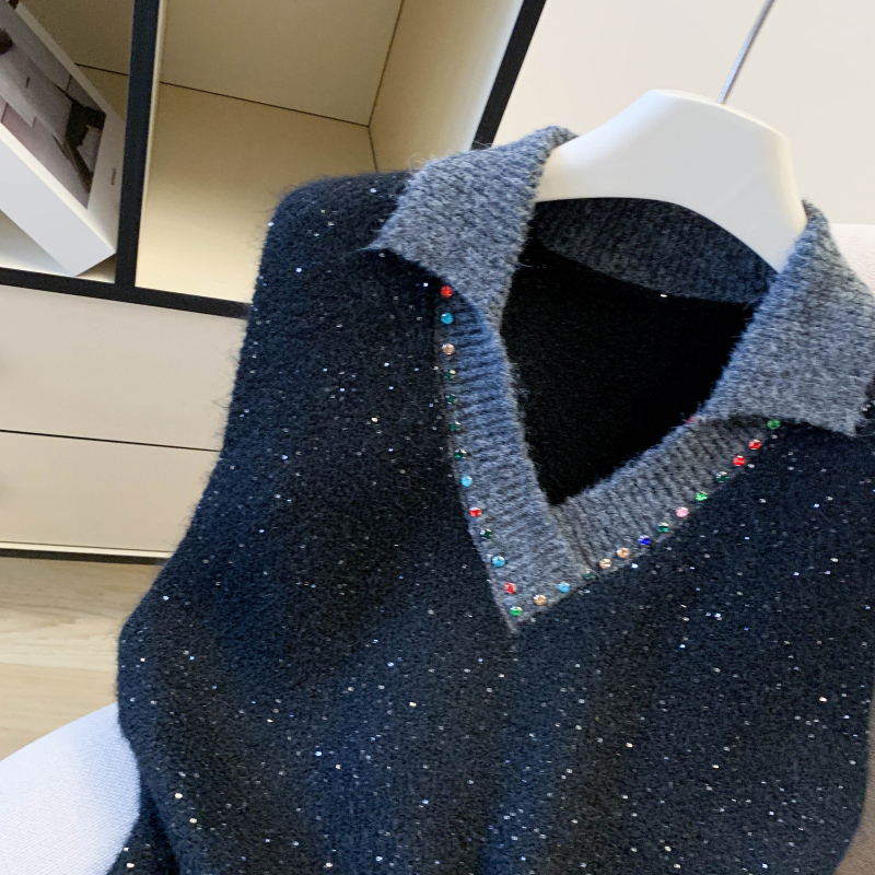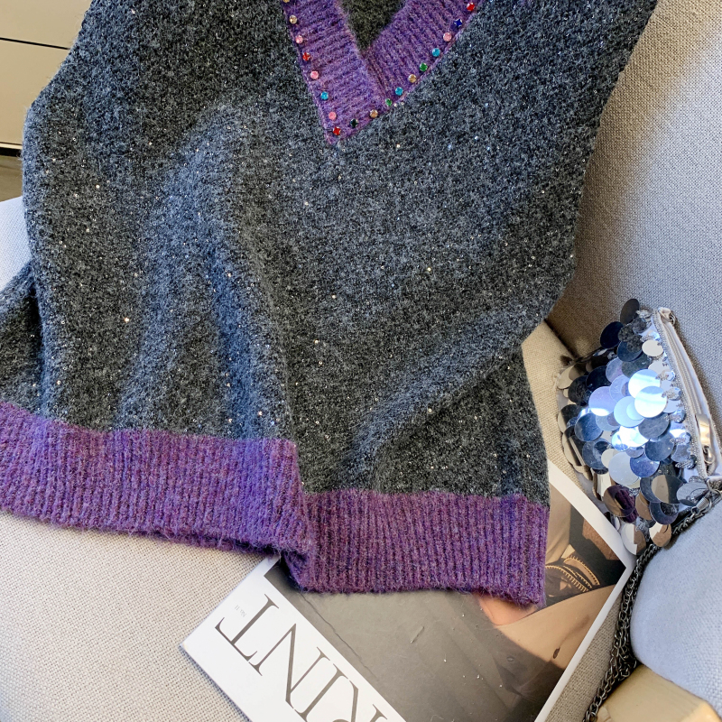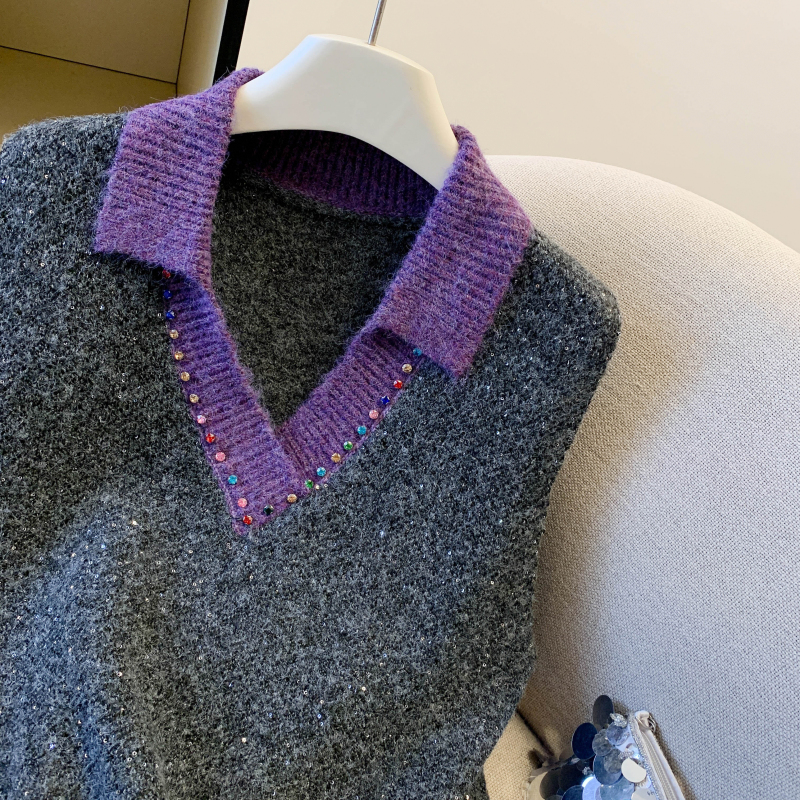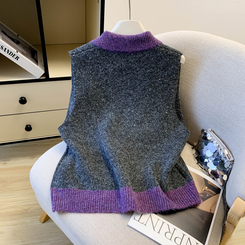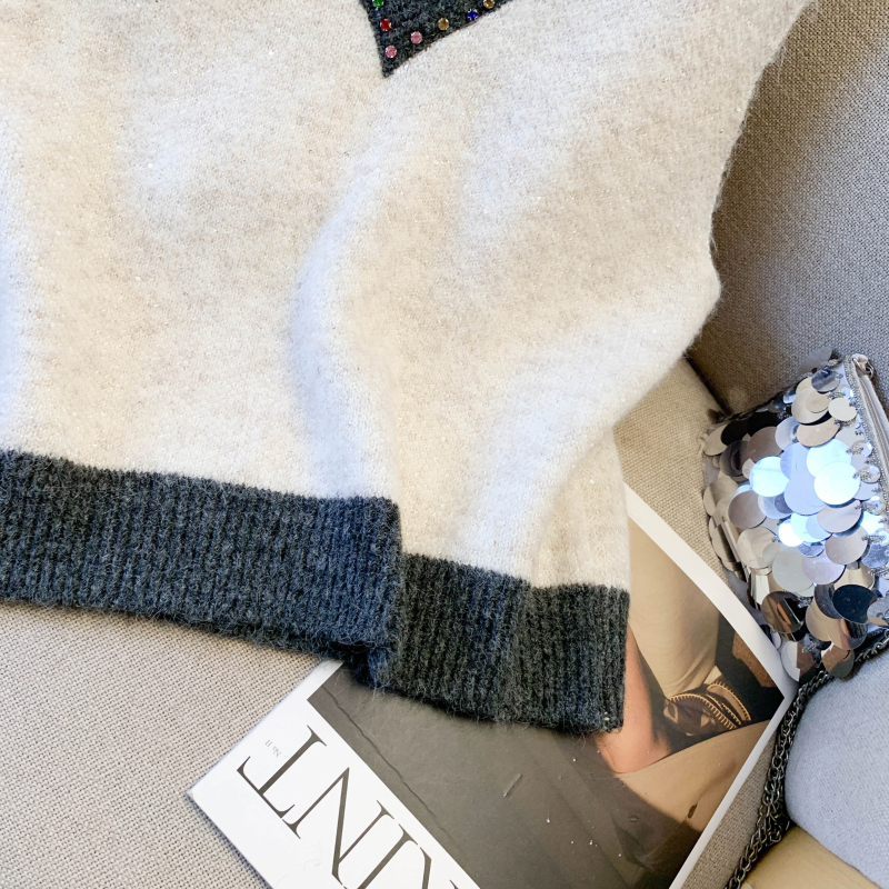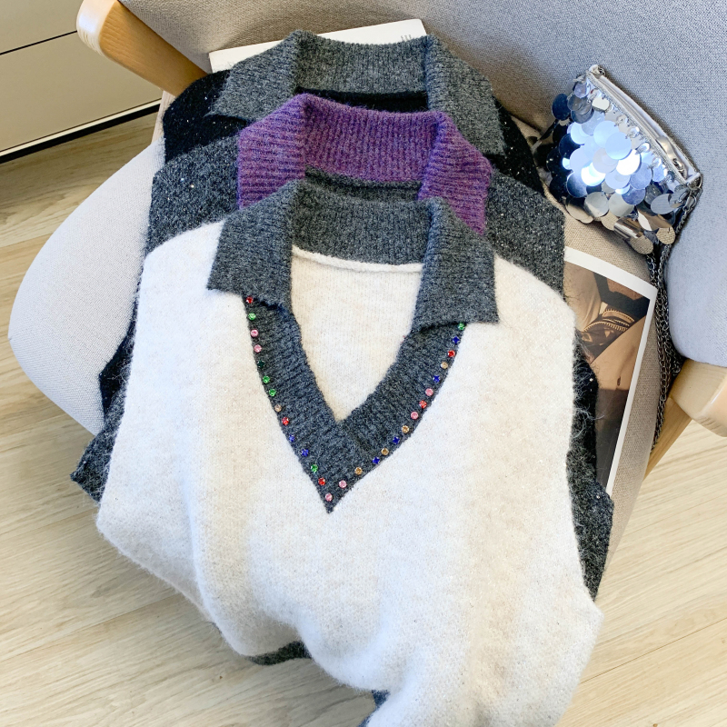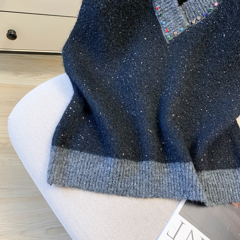 MY15960# 高级感撞色烫钻V领马甲外穿叠穿洋气时尚百搭女裝貨源服裝批發