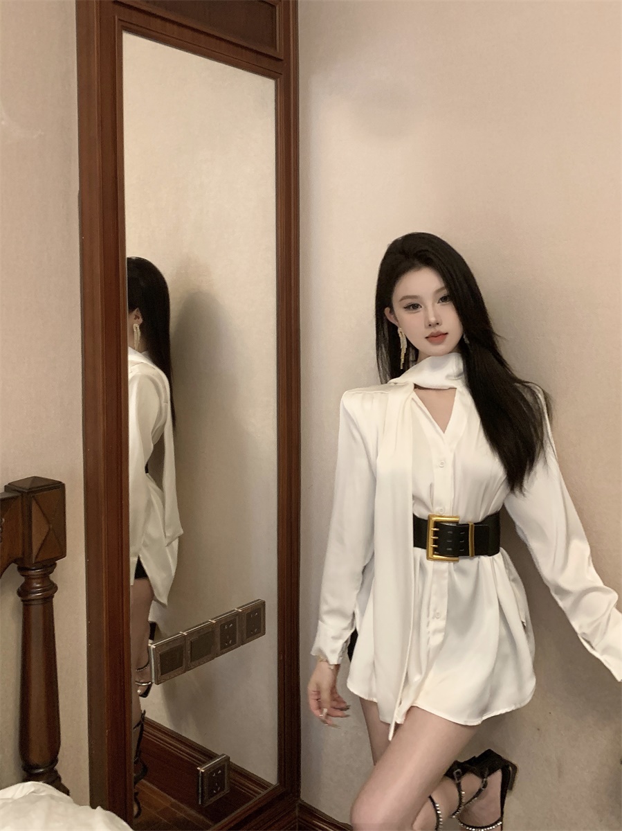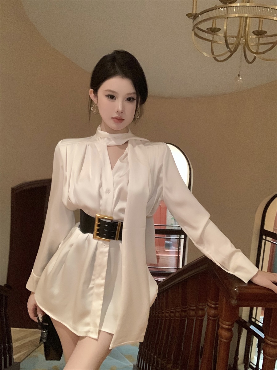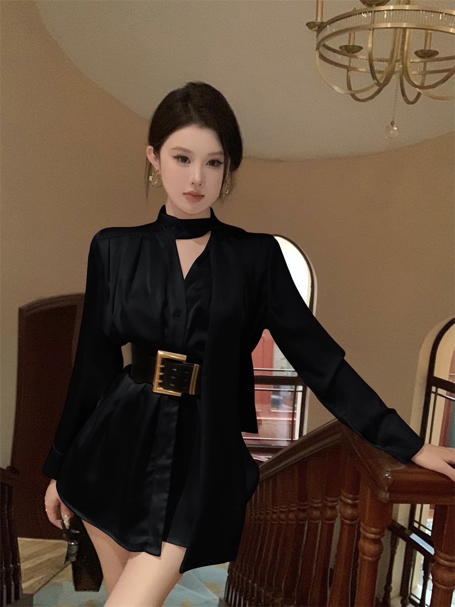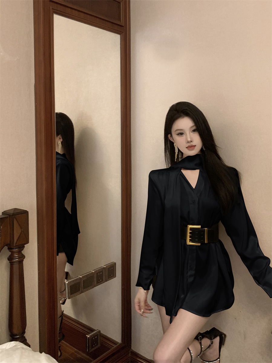 MY15968# 法式气质名媛高级感缎面衬衫连衣裙夏季不规则气质短裙女装女裝貨源服裝批發