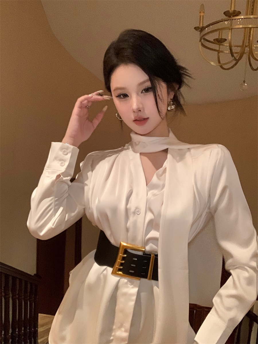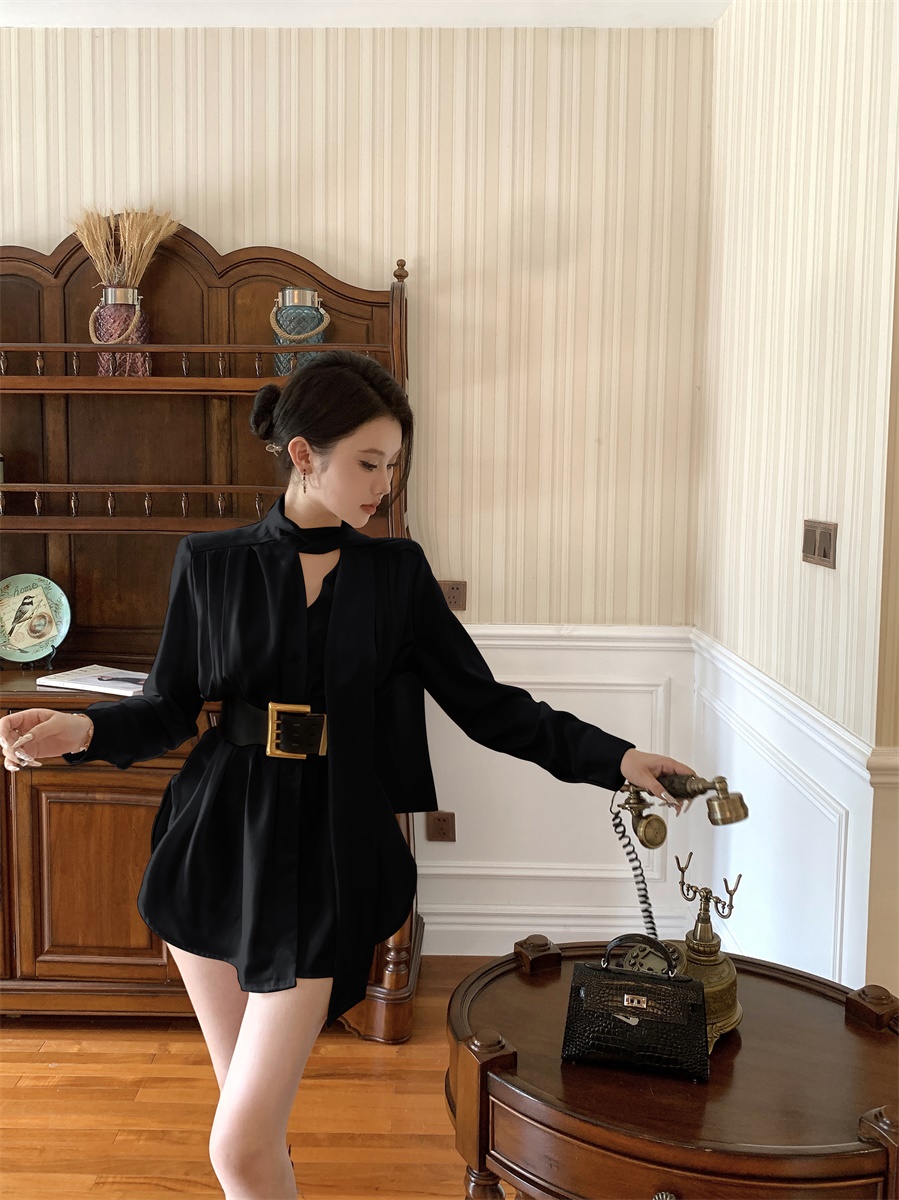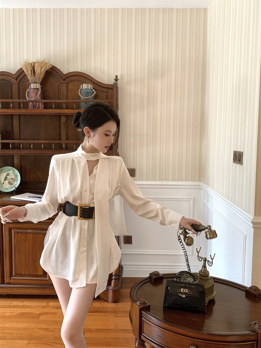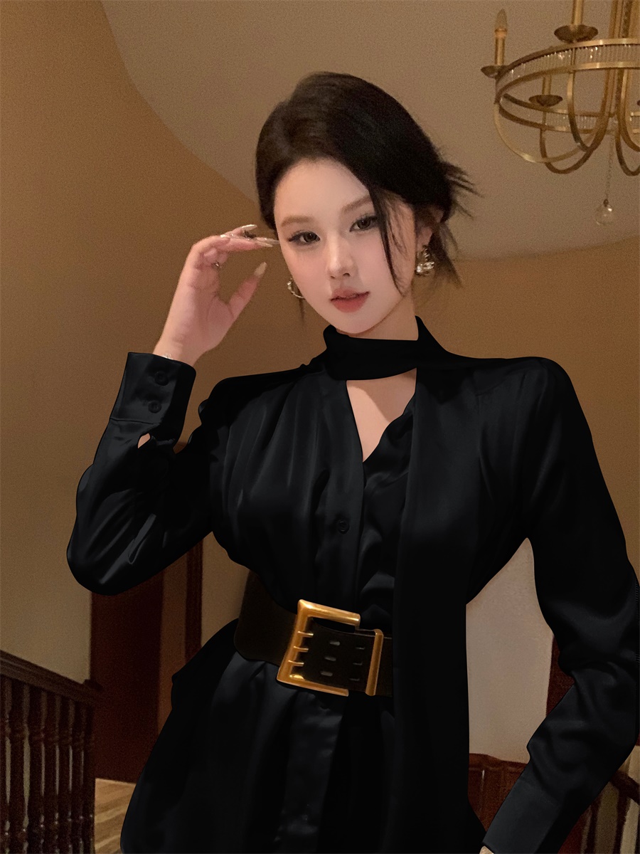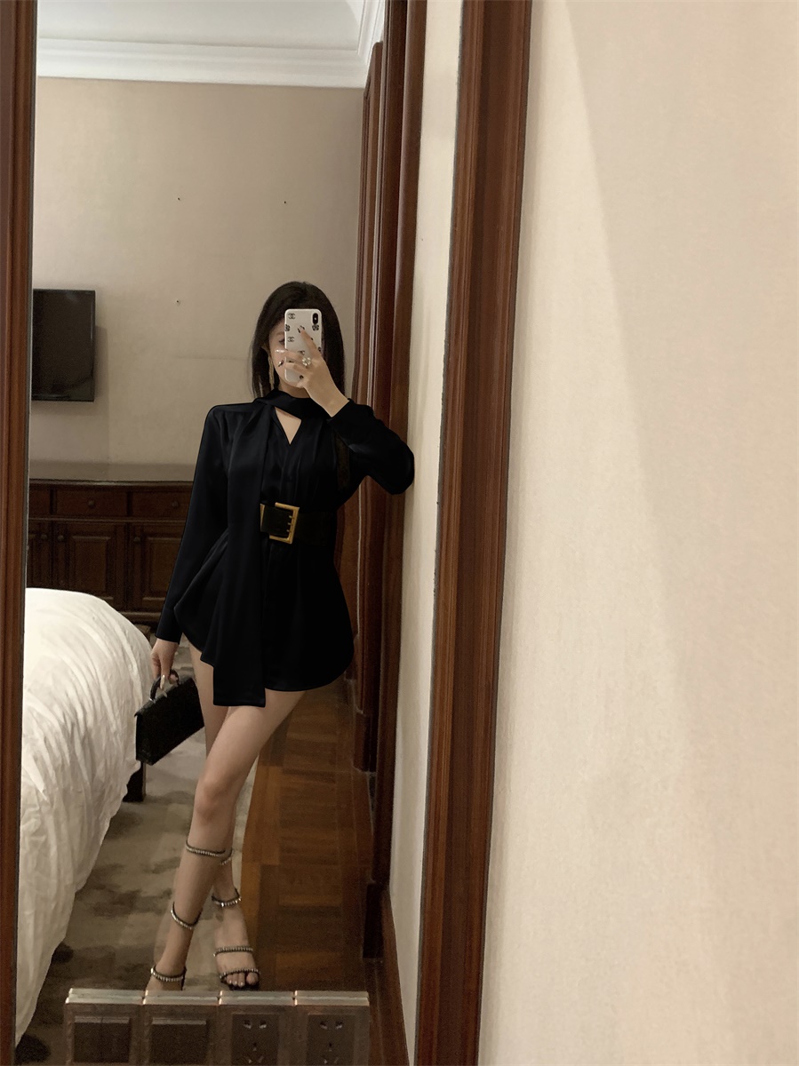 MY15968# 法式气质名媛高级感缎面衬衫连衣裙夏季不规则气质短裙女装女裝貨源服裝批發