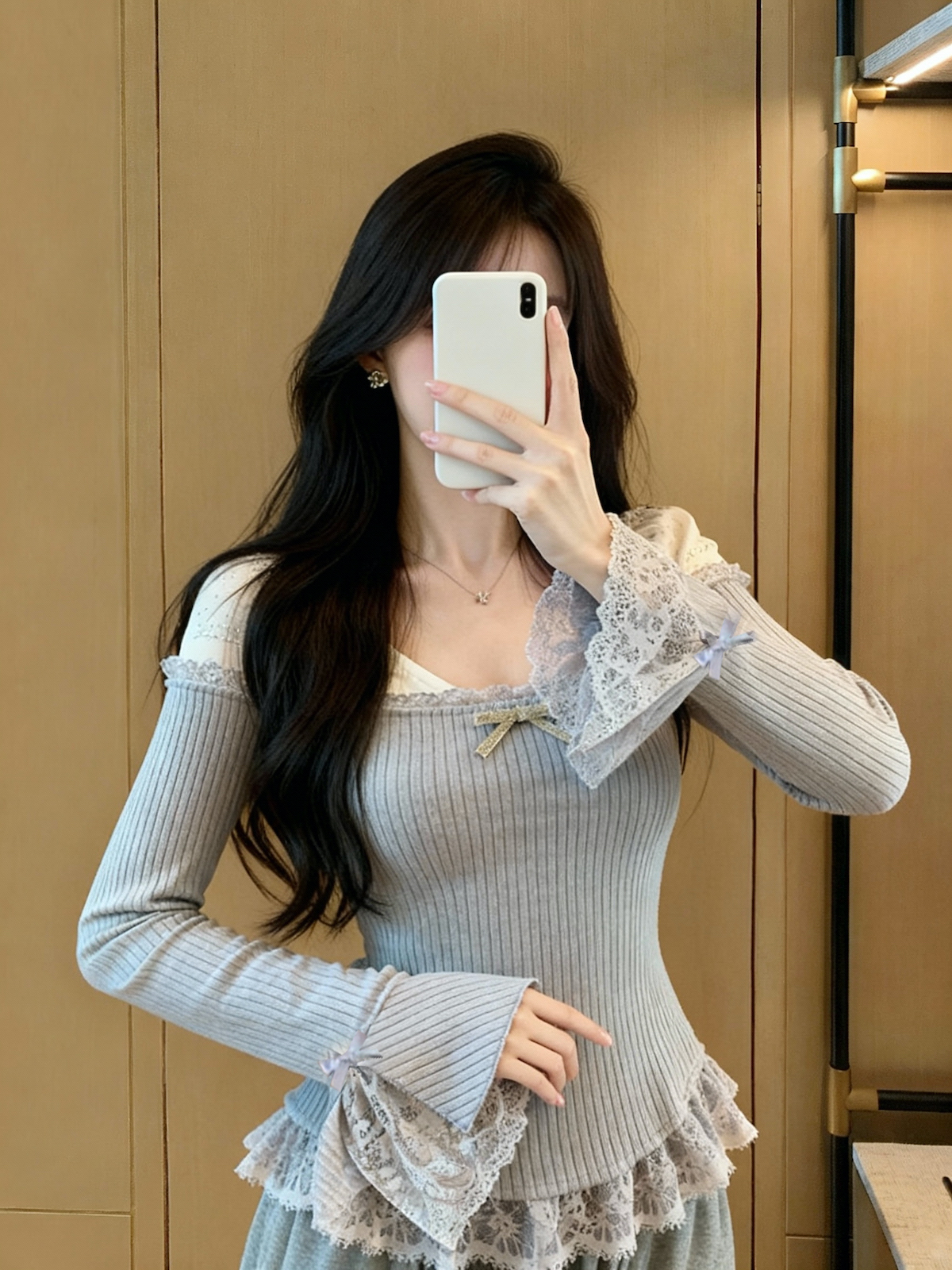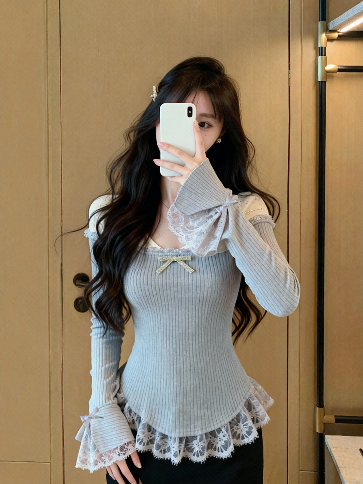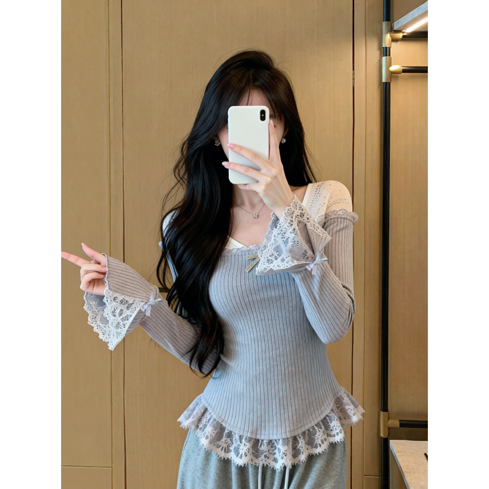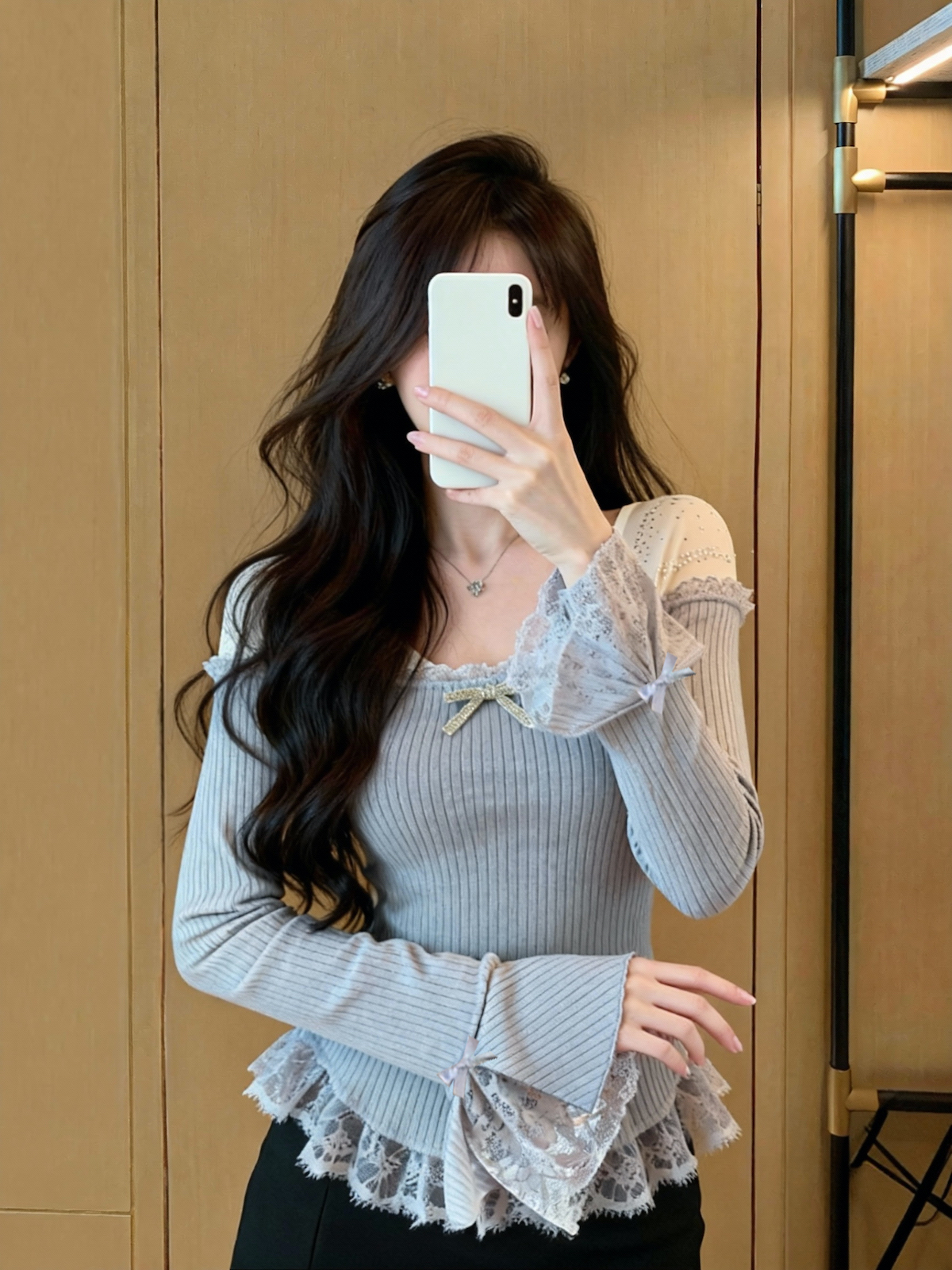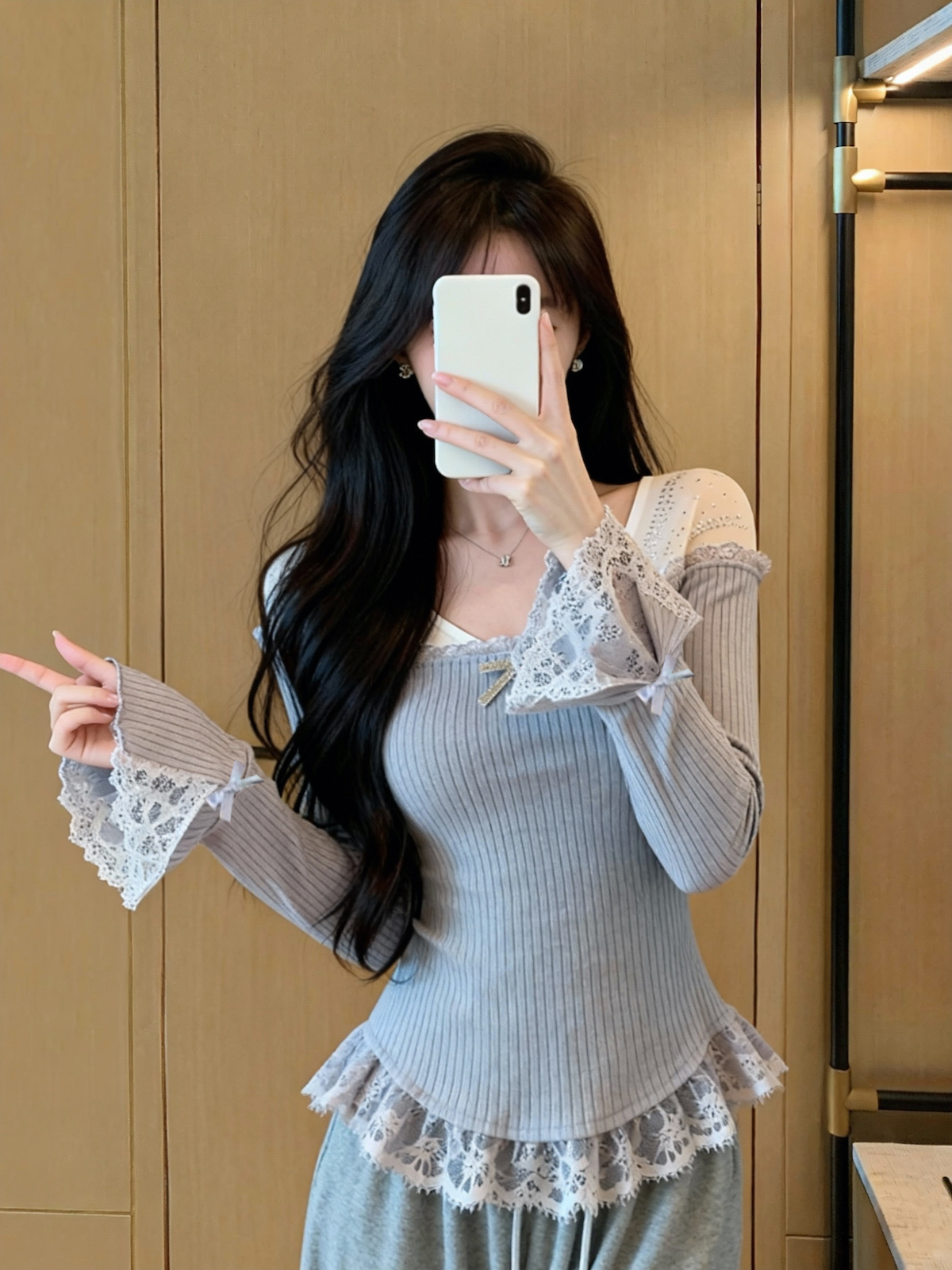 MY15973# 修身显瘦设计感纯欲风辣妹网纱拼接V领上衣女裝貨源服裝批發