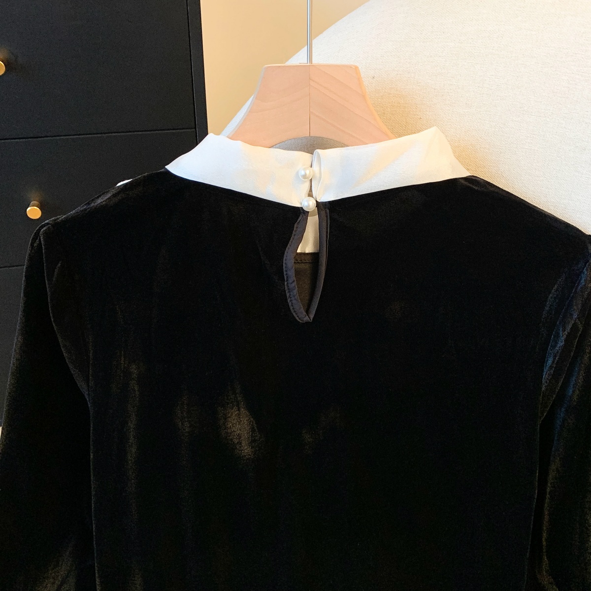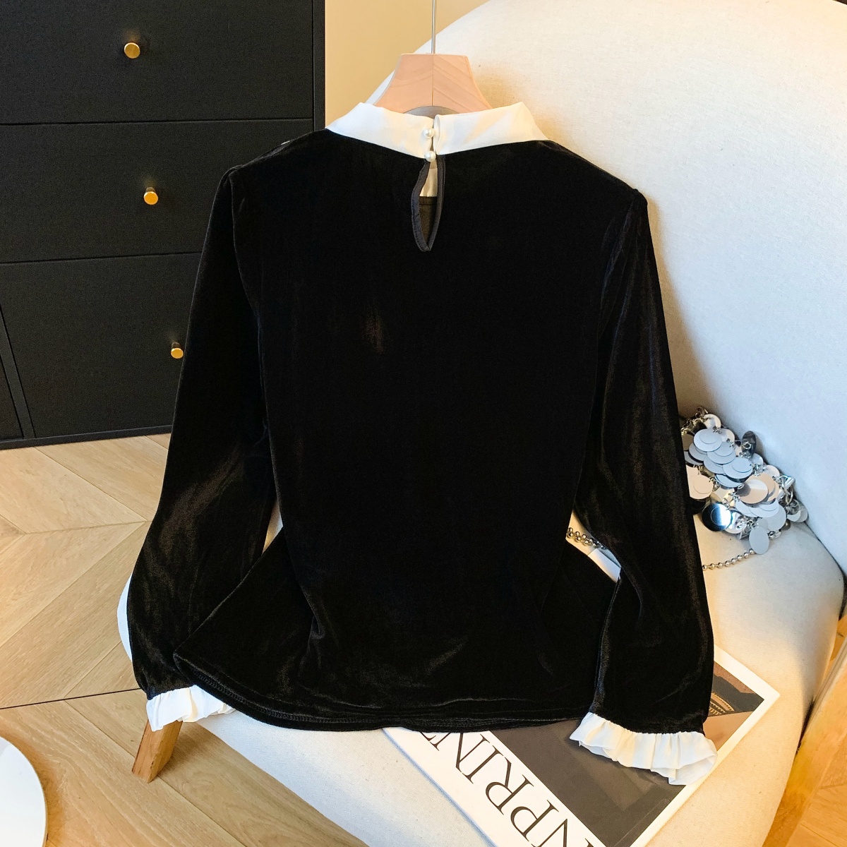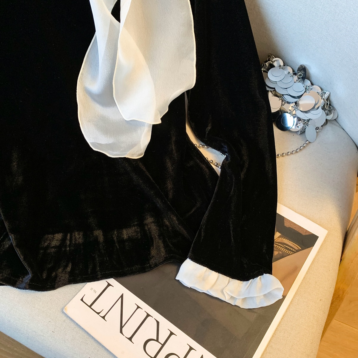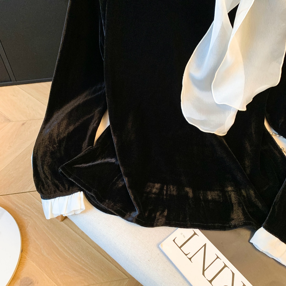 MY15987# 赫本风金丝绒蝴蝶结飘带衬衫女士内搭打底叠穿上衣女裝貨源服裝批發
