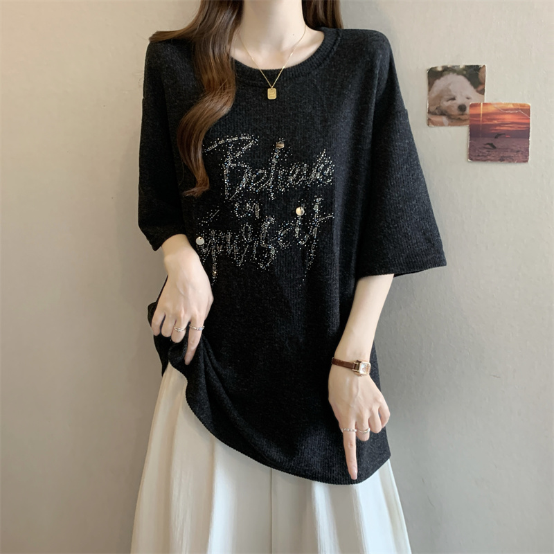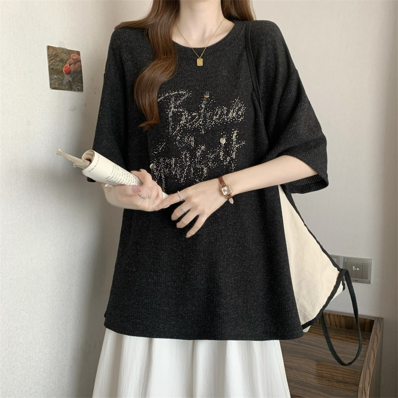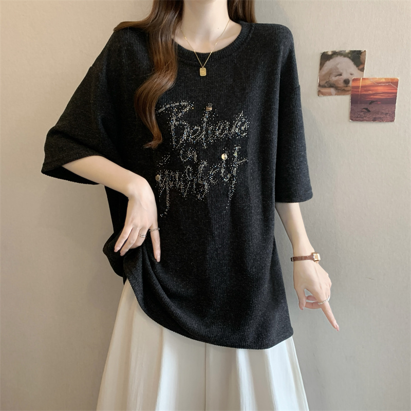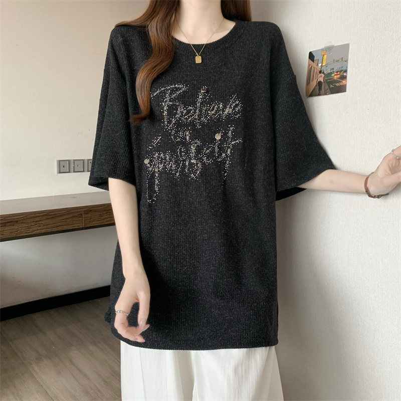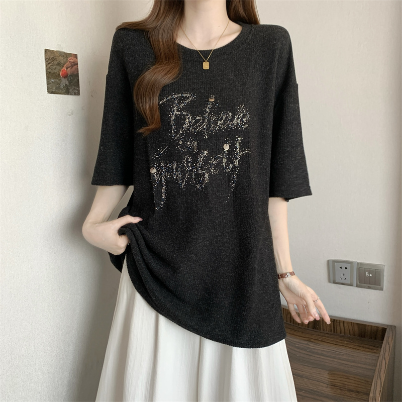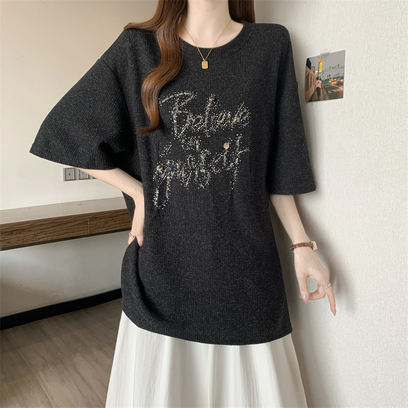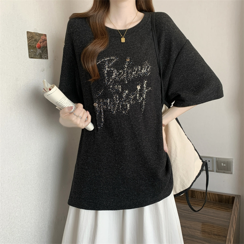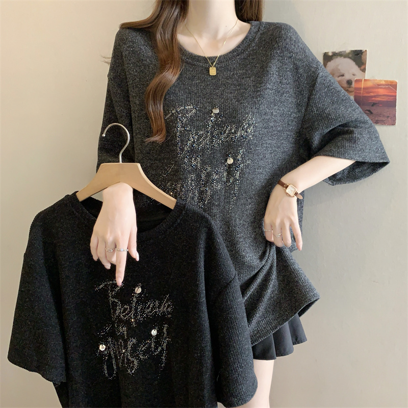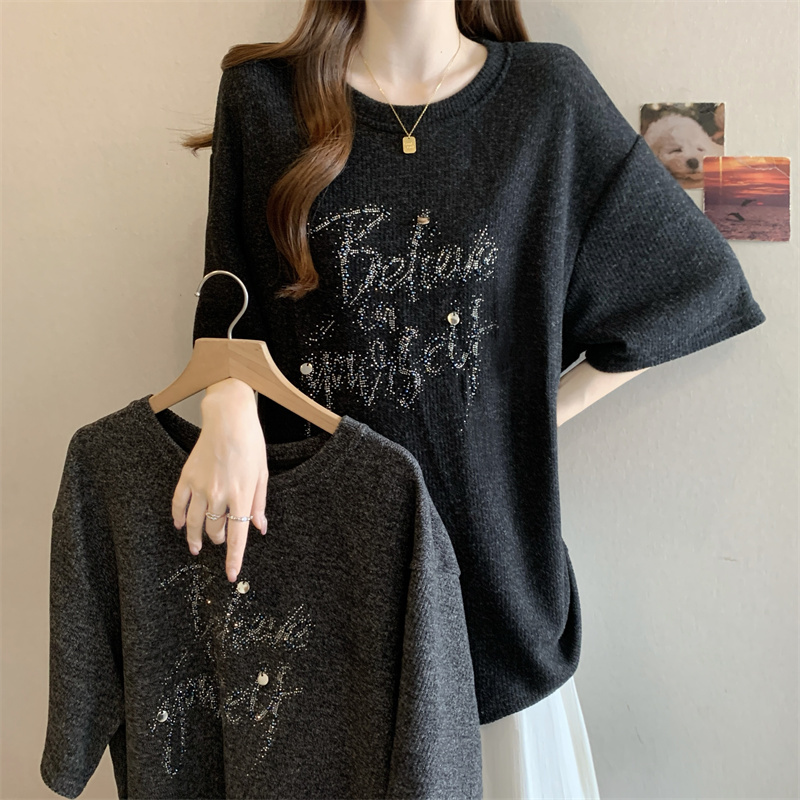 MY15991# 大码MM 设计感烫钻磨毛T恤打底内搭短袖上衣女裝貨源服裝批發