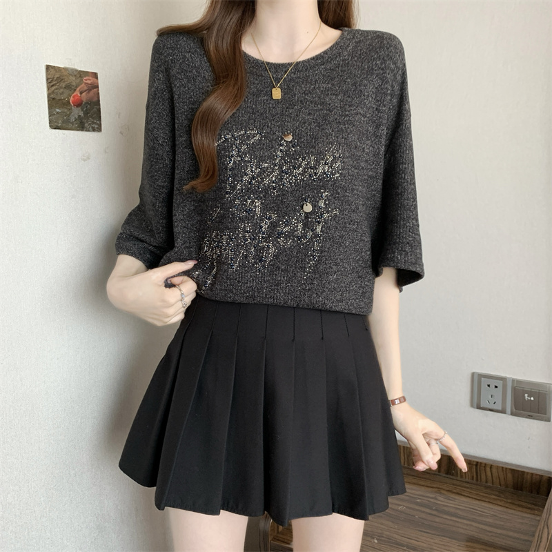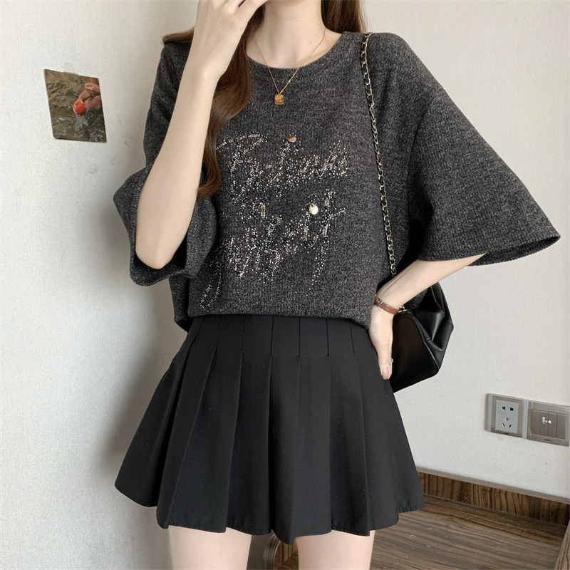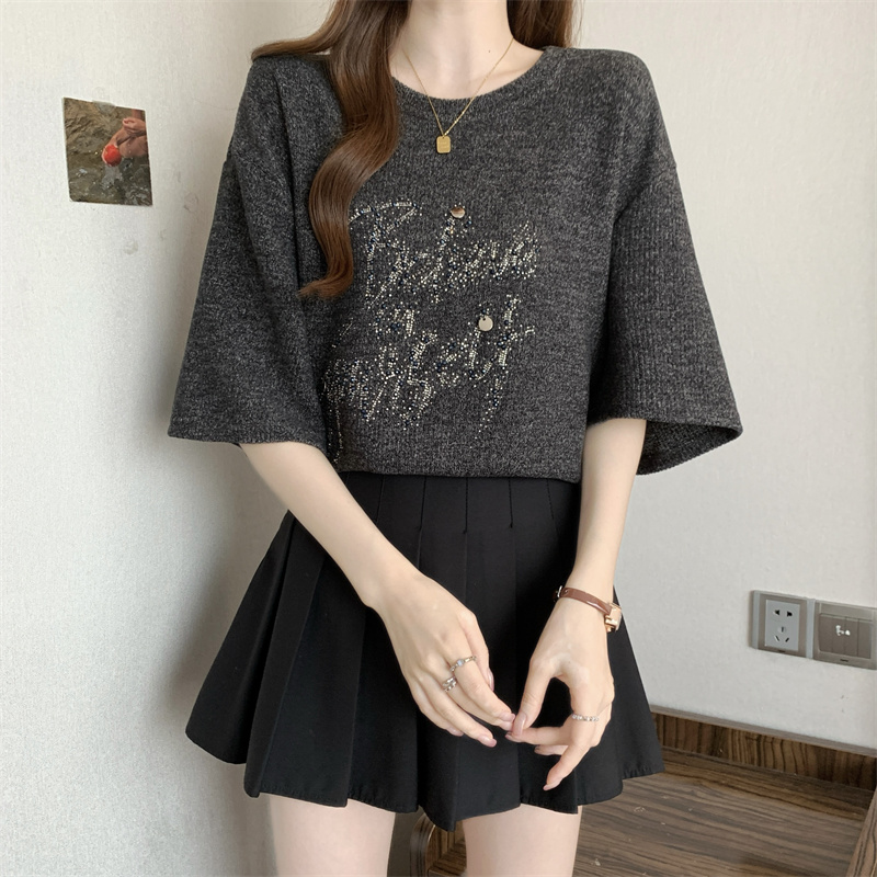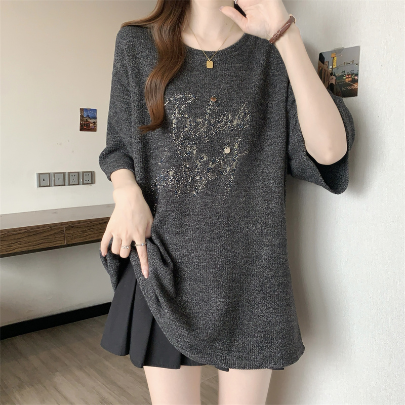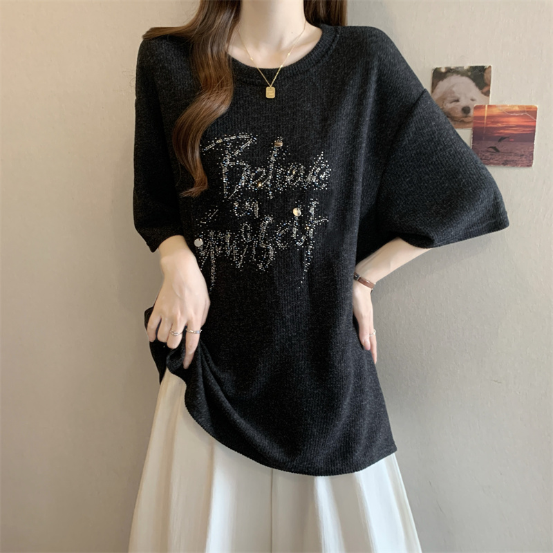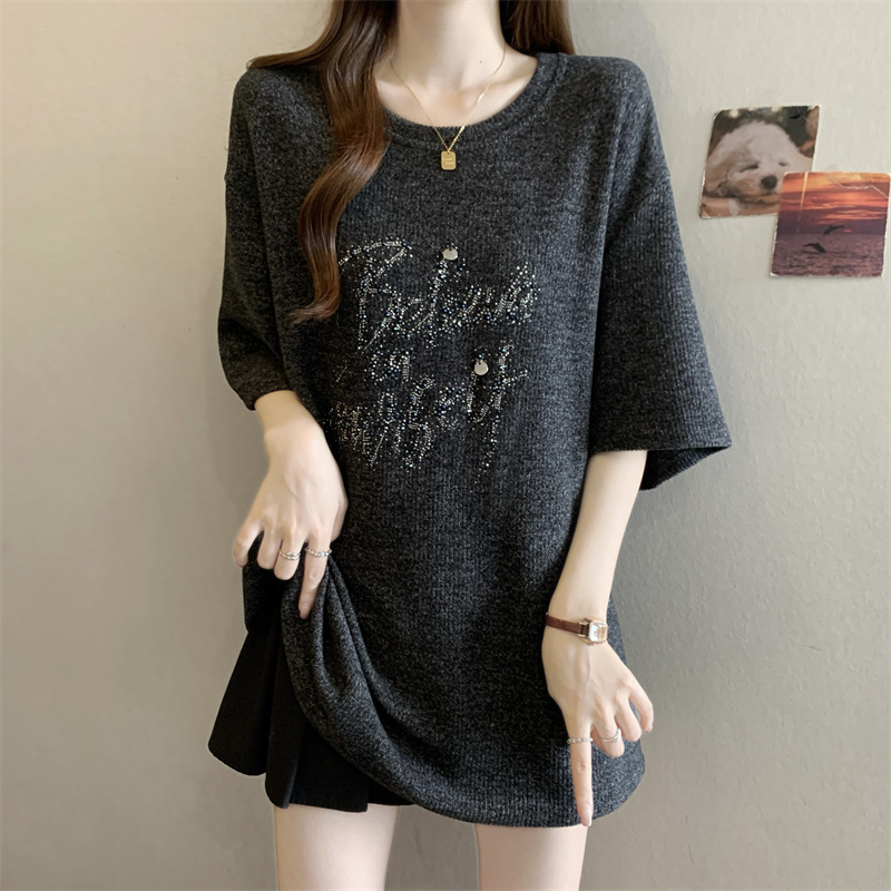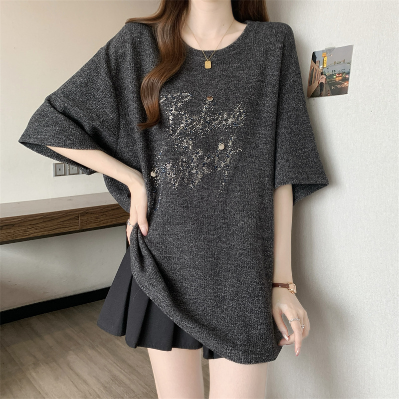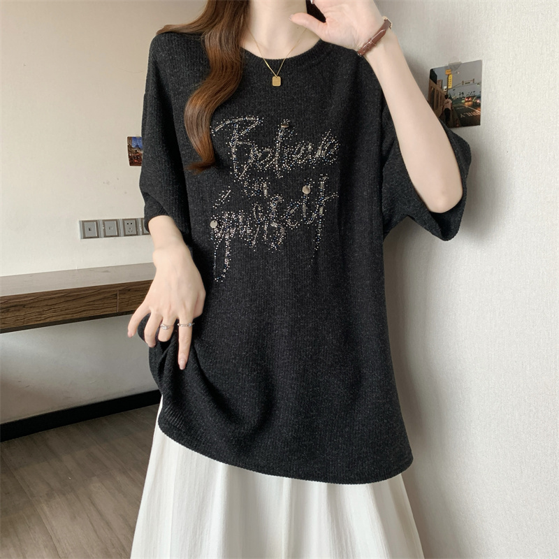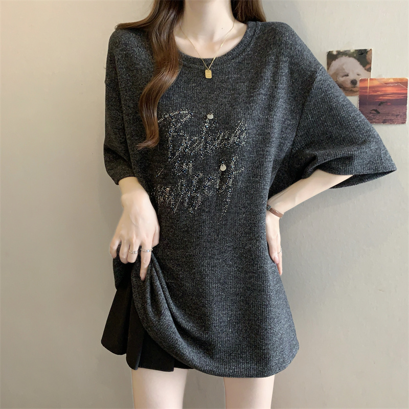 MY15991# 大码MM 设计感烫钻磨毛T恤打底内搭短袖上衣女裝貨源服裝批發