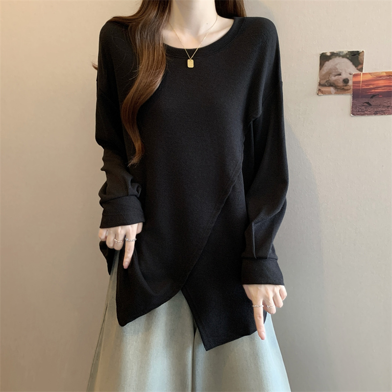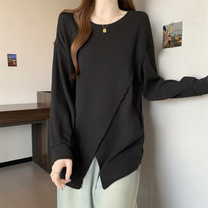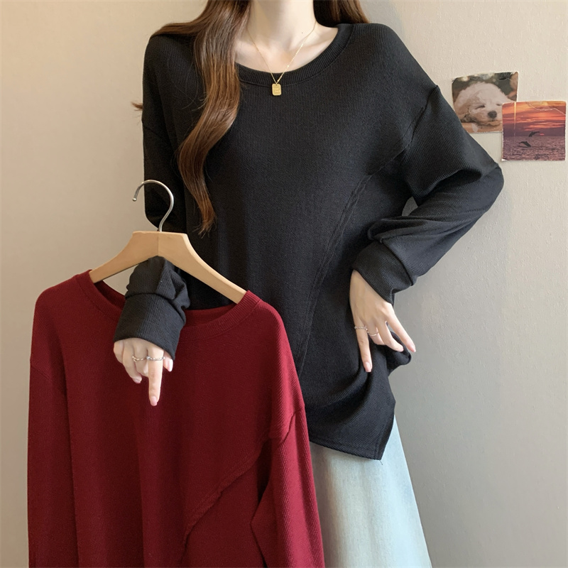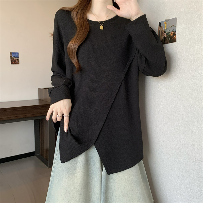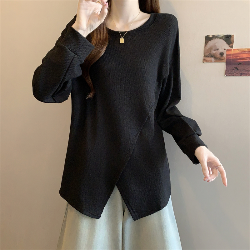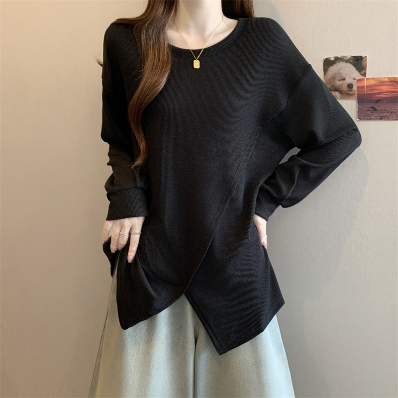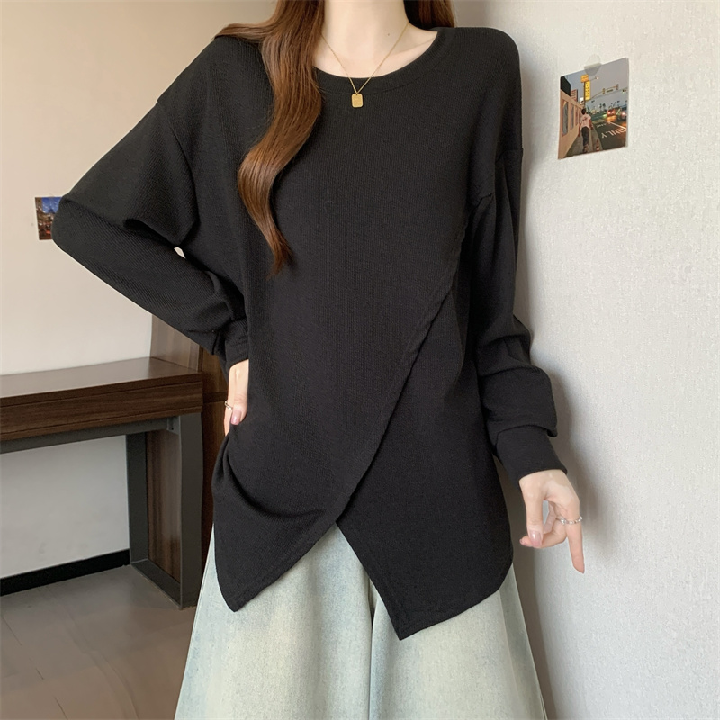 MY15992# 大码胖MM 设计感不规则长袖T恤洋气百搭遮肉上衣女裝貨源服裝批發
